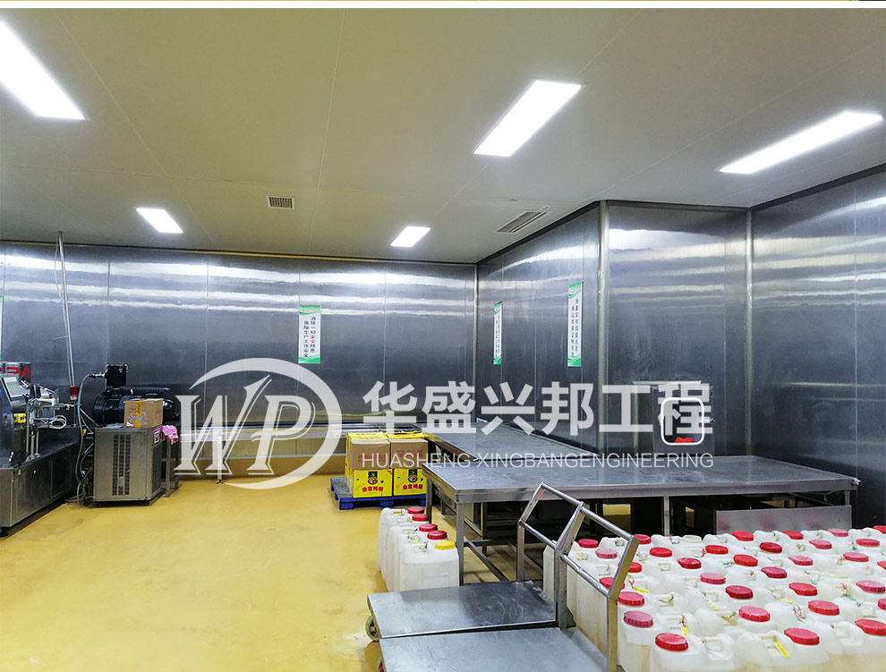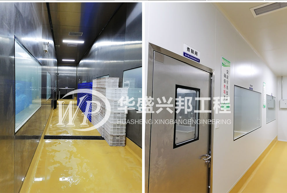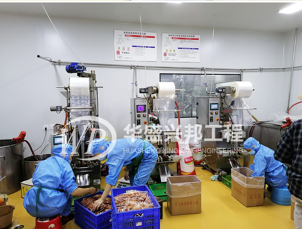 華盛興邦承接四川春之源食品有限公司,前期廠房設計裝修,企業咨詢服務。后期廠房擴建廠房設計,廠房裝修,生產許可證辦證等服務。車間共有四條生產線:半固態調味料、熱加工熟肉制品、速凍調制肉制品(熟制品)、食用調味油等生產加工。