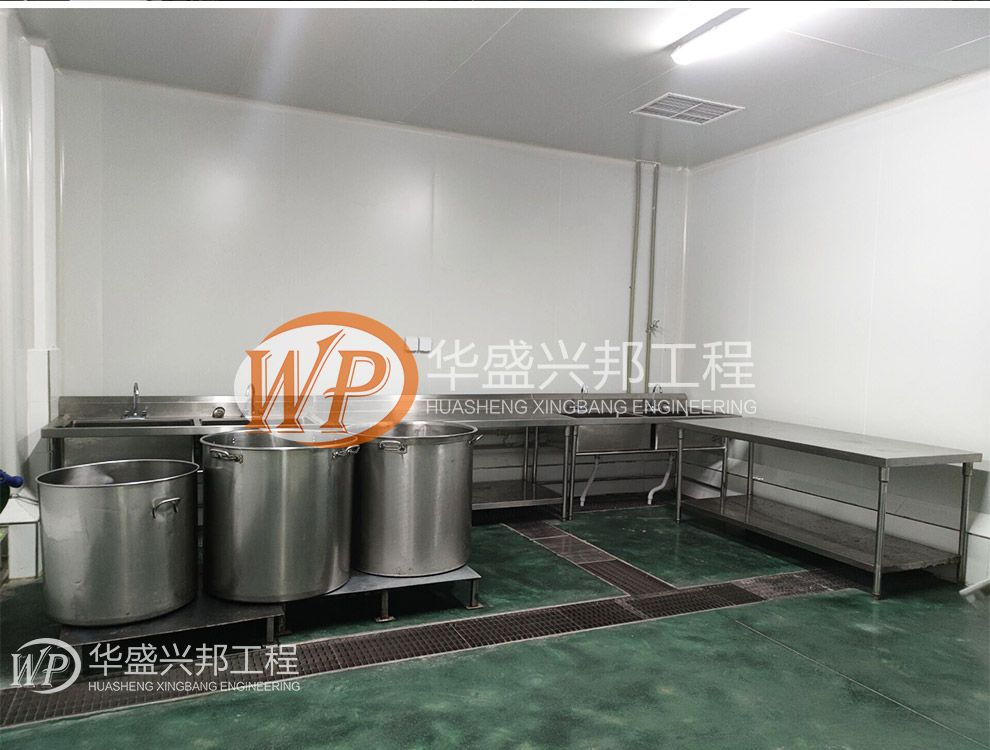 華盛興邦承接成都溫鴨子食品有限公司食品有限公司廠房設(shè)計,廠房裝修工程,該廠房為中央廚房修建,目前裝修竣工,生產(chǎn)許可證審核通過,目前正準(zhǔn)備投入生產(chǎn)。