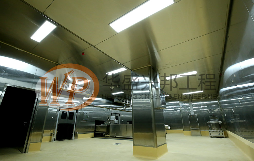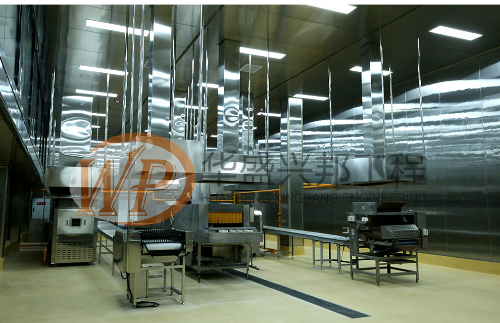 項目介紹:該中央廚房生產車間是雙面不銹鋼中控玻鎂板,地面為聚氨酯砂漿地坪