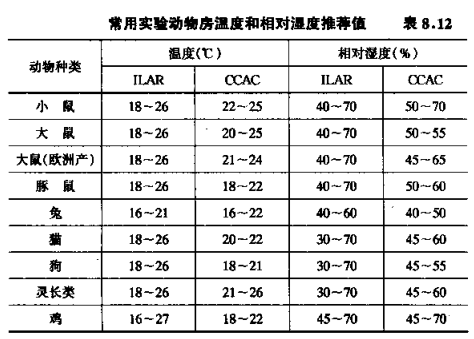 上面還可以看出:我國(guó)實(shí)驗(yàn)動(dòng)物房的溫、濕度標(biāo)準(zhǔn)與其他國(guó)家的標(biāo)準(zhǔn)不很一致。我國(guó)標(biāo)準(zhǔn)中規(guī)定的溫、濕度允許變化范圍較大。我國(guó)標(biāo)準(zhǔn)制定是在滿足動(dòng)物正常生理需要的前提下,考慮盡量降低能耗的因素。所以,我國(guó)實(shí)驗(yàn)動(dòng)物房的溫、濕度標(biāo)準(zhǔn)還建議冬季宜取下限值,夏季宜取上限值。但對(duì)于懷孕動(dòng)物的房間,冬季溫度的取值宜高于下限值。國(guó)內(nèi)大量工程實(shí)踐表明:我國(guó)實(shí)驗(yàn)動(dòng)物房的溫、濕度標(biāo)準(zhǔn)及其取值方法是能滿足實(shí)驗(yàn)動(dòng)物正常生理活動(dòng)需要的。