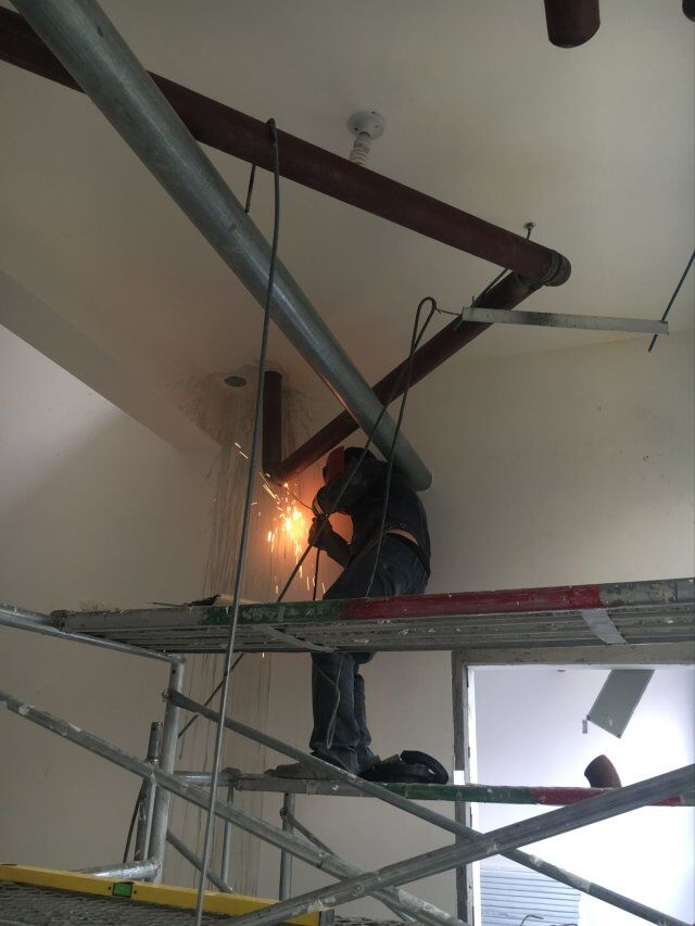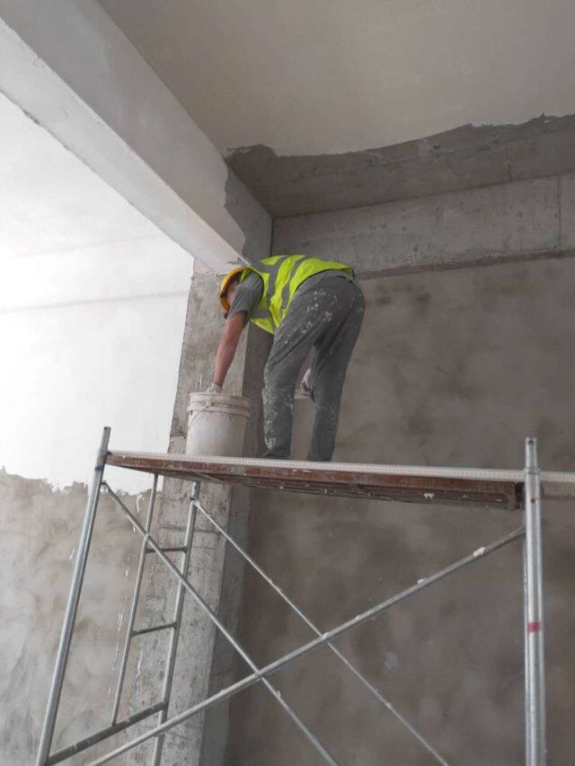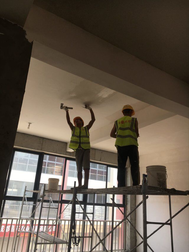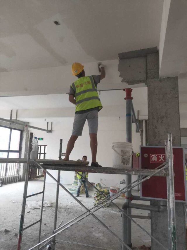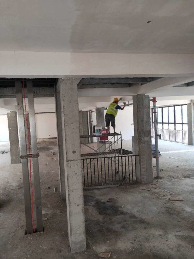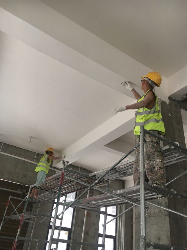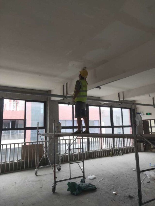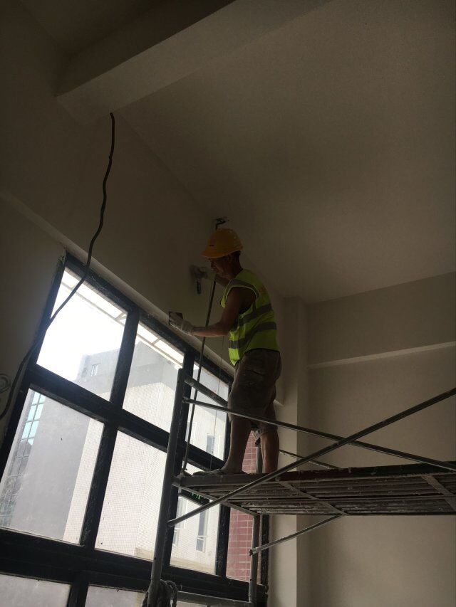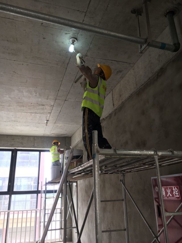 開關(guān)、插座并線,風(fēng)口安裝,打膠條,撕膜,地坪打磨,環(huán)氧底漆施工