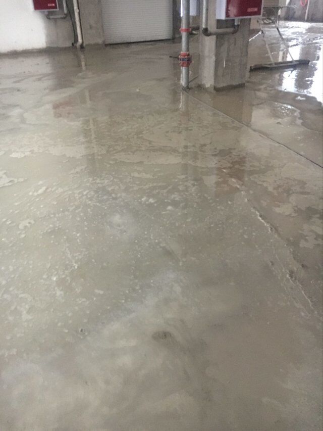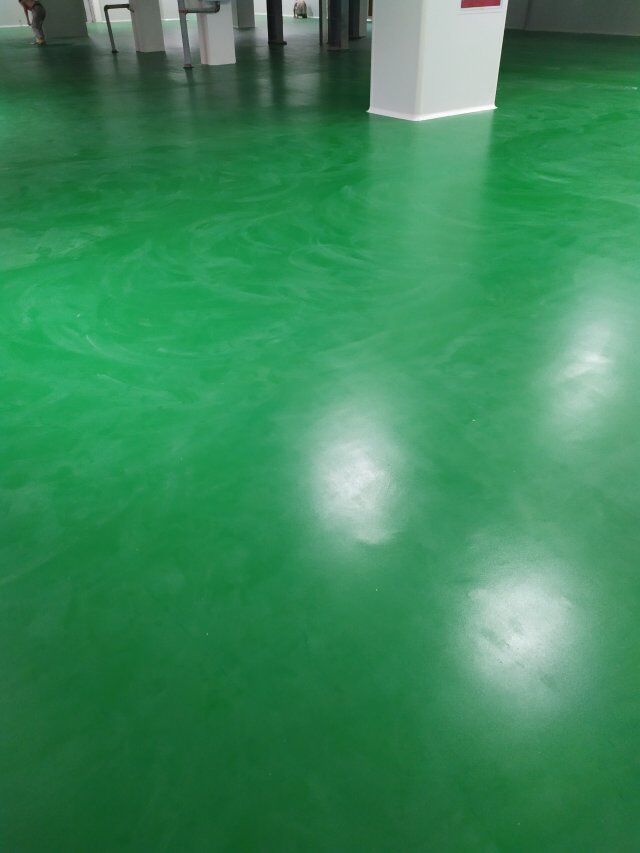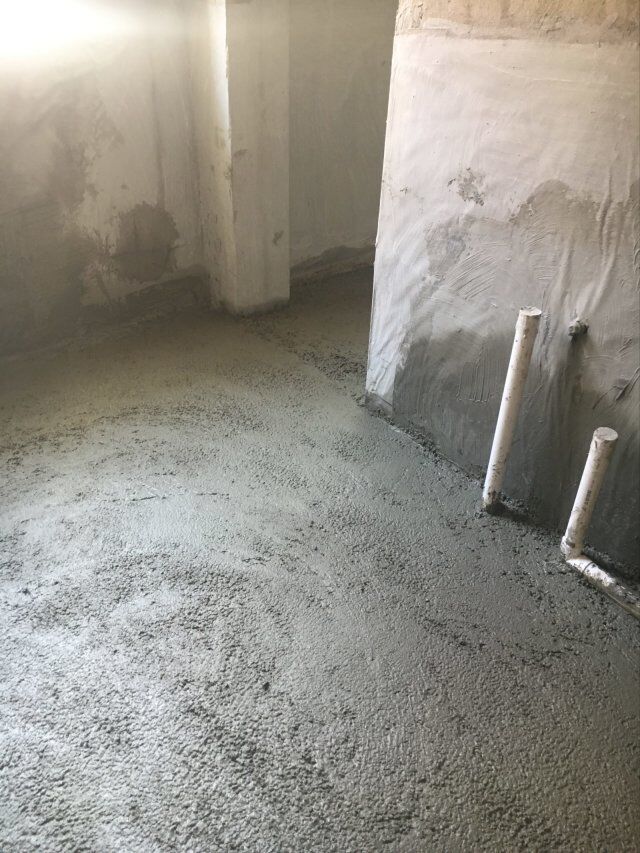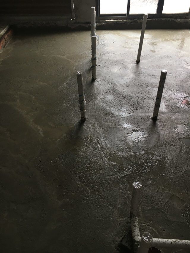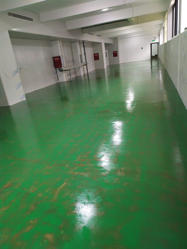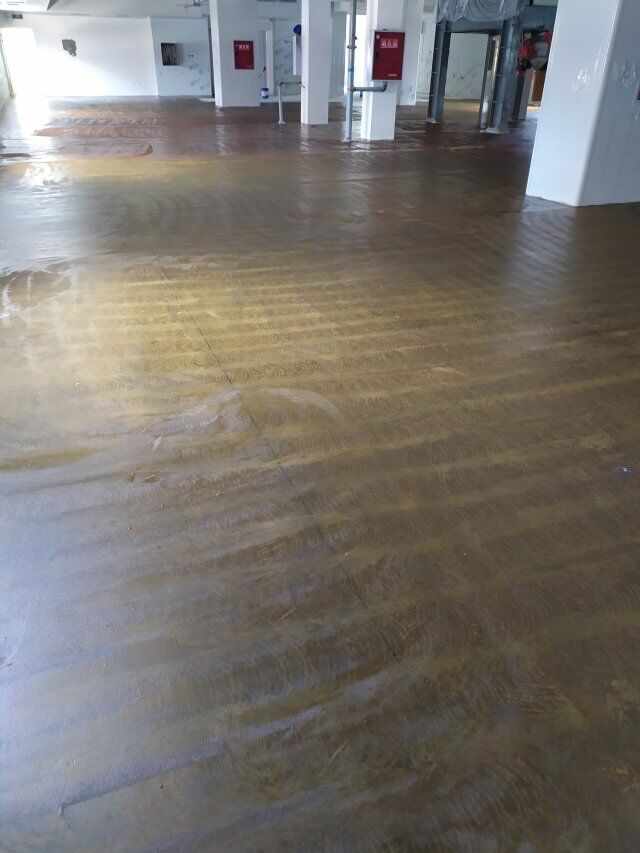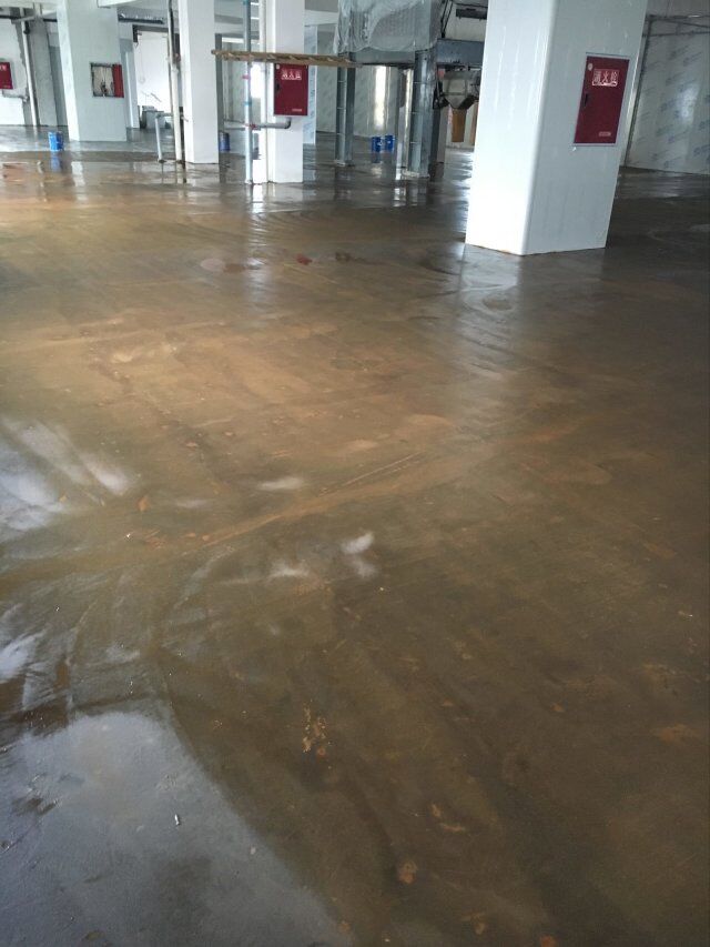 四川美料美味食品科技有限公司廠房裝修現(xiàn)場(chǎng),地坪施工中