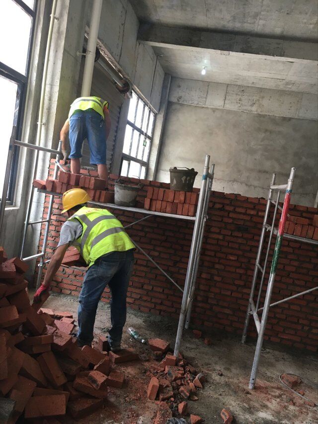 現(xiàn)場(chǎng)地坪施工,辦公室貼磚