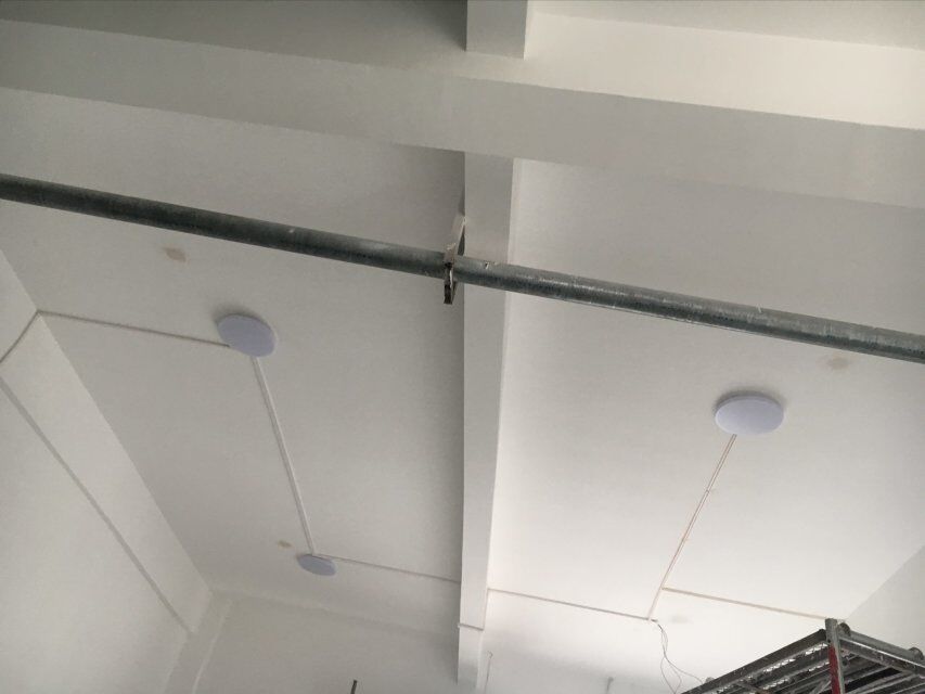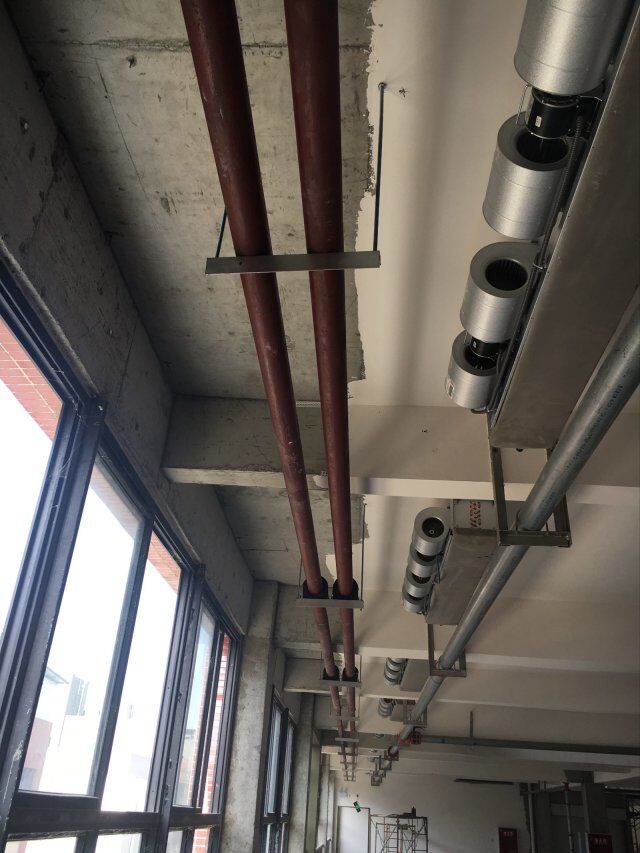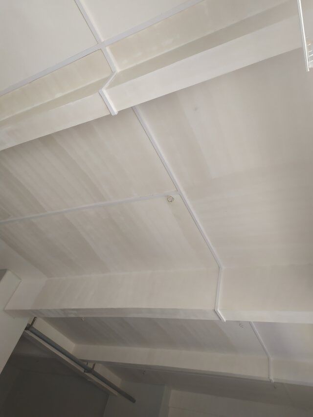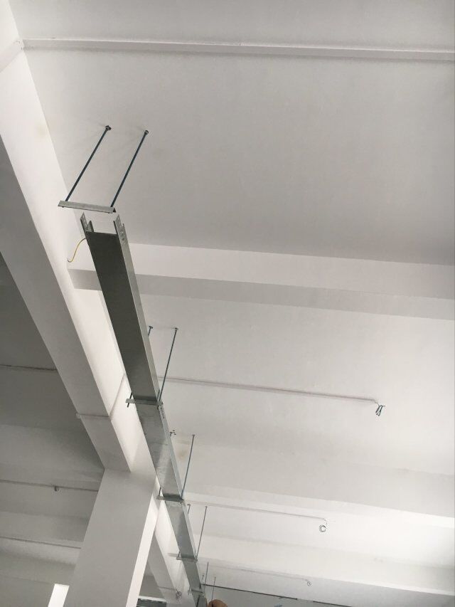 四川美料美味食品科技有限公司廠房施工現(xiàn)場(chǎng),紫外燈安裝完成,二層地面施工