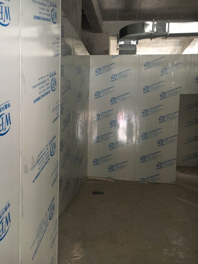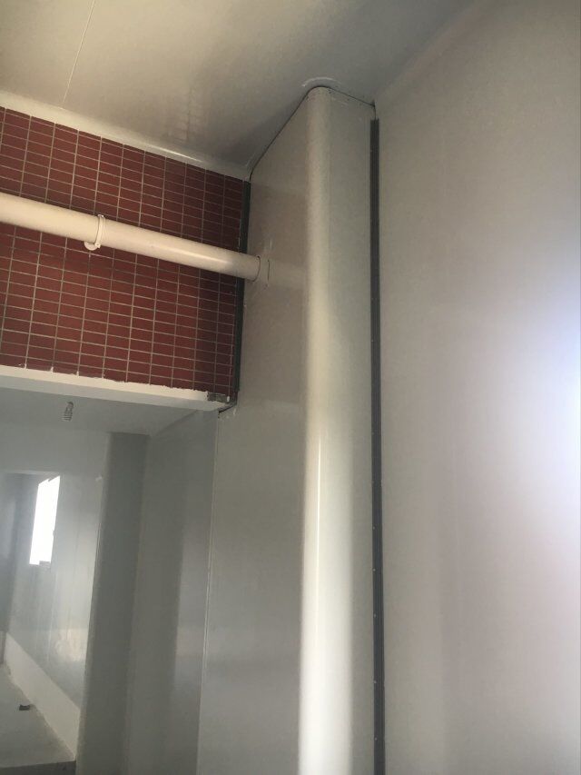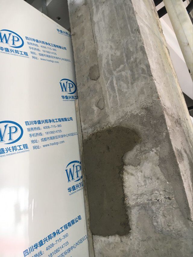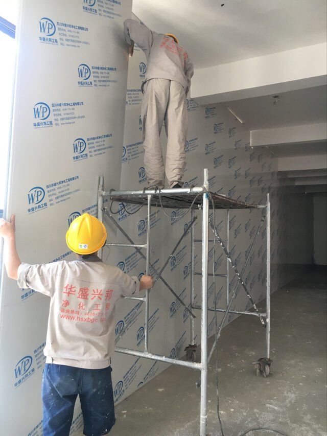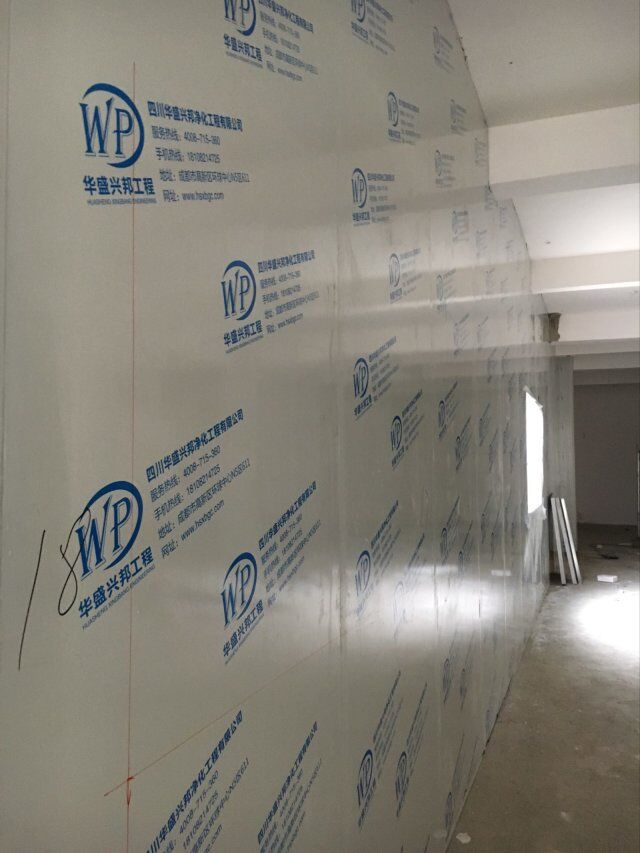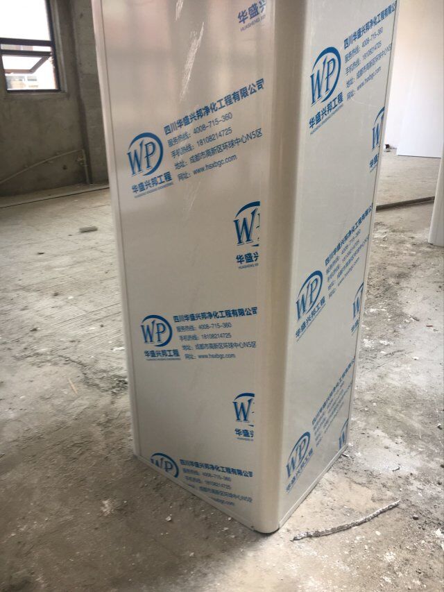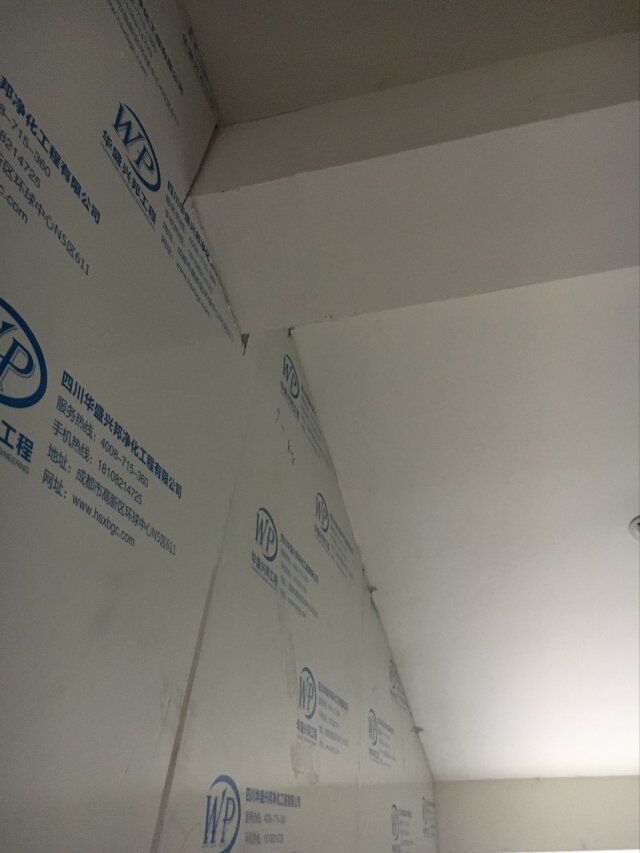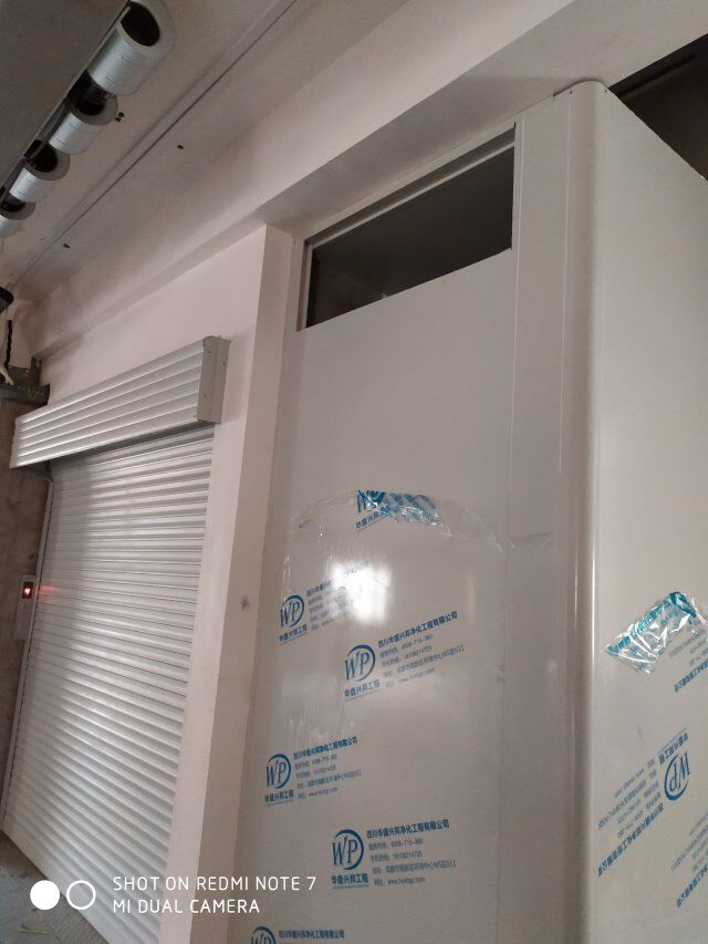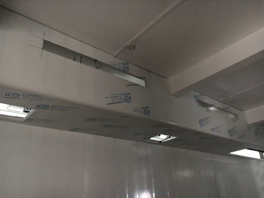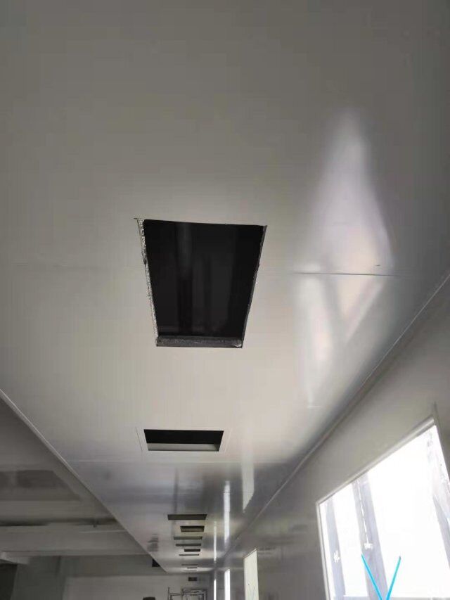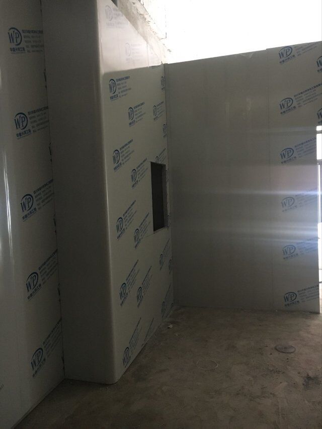 四川美料美味食品科技有限公司廠房裝修現(xiàn)場(chǎng),風(fēng)淋室調(diào)試安裝完成,板材包邊完成