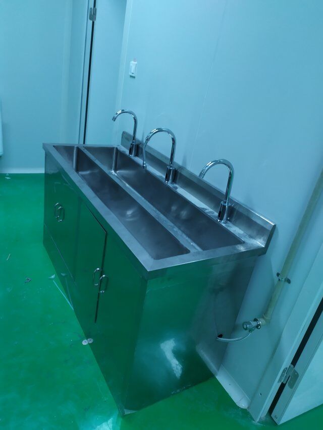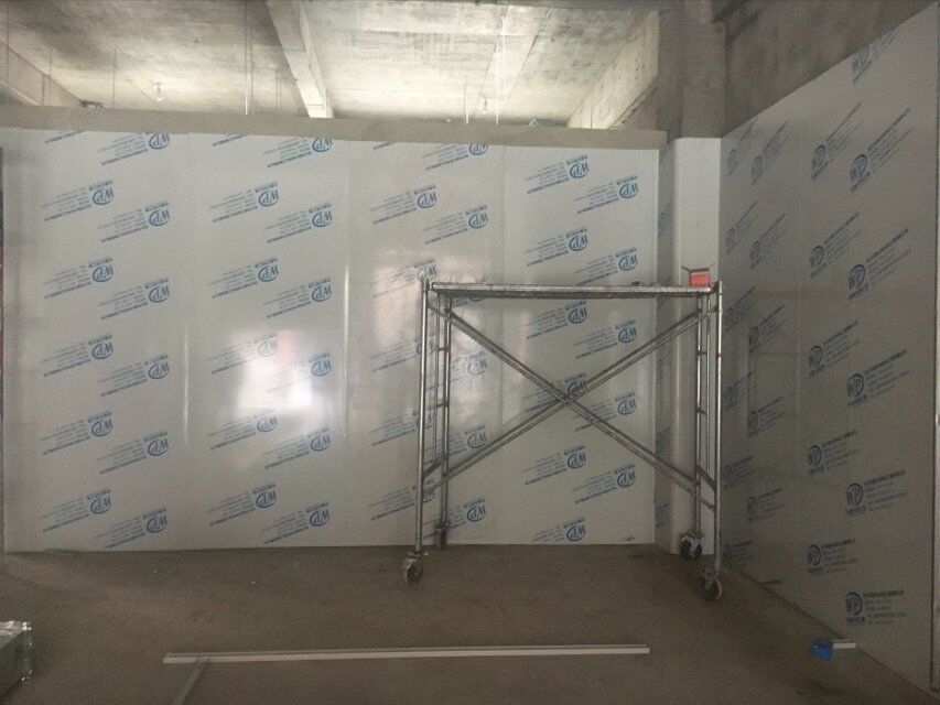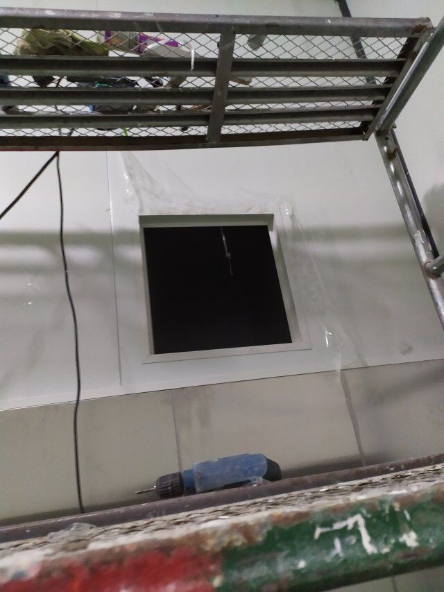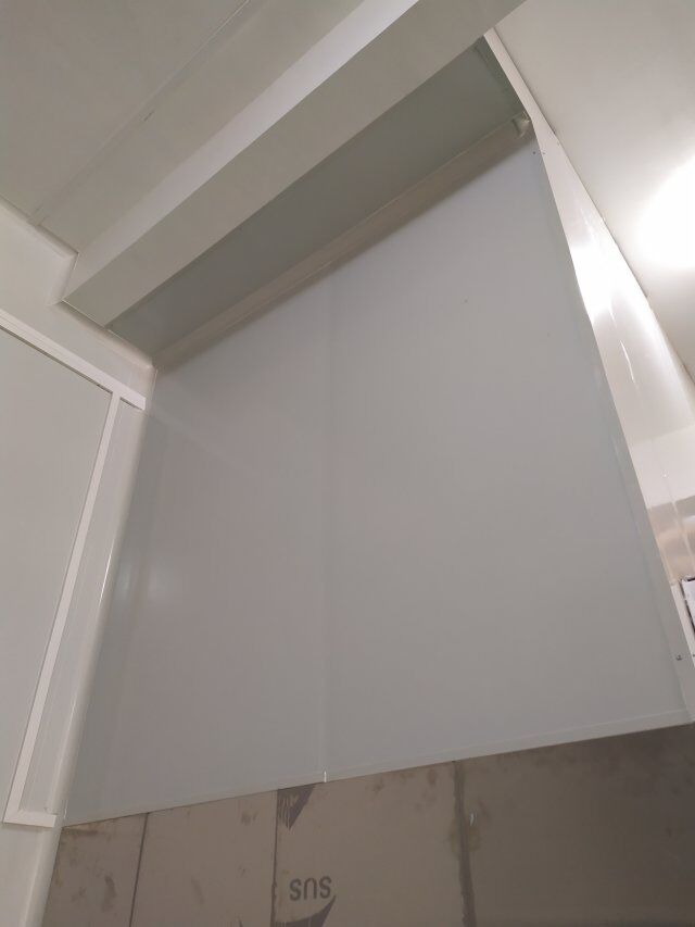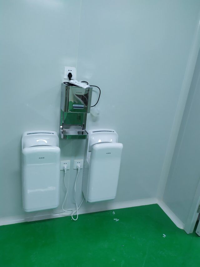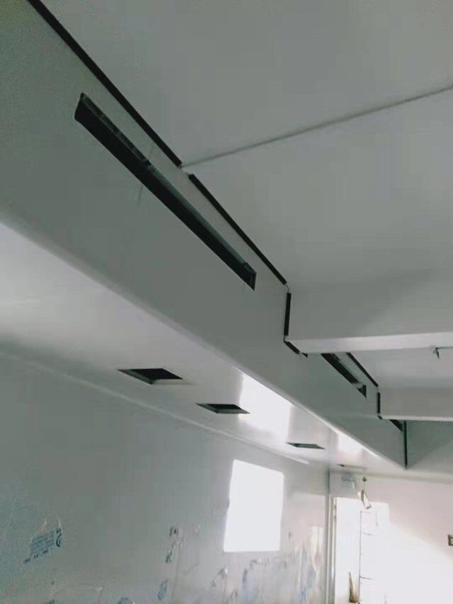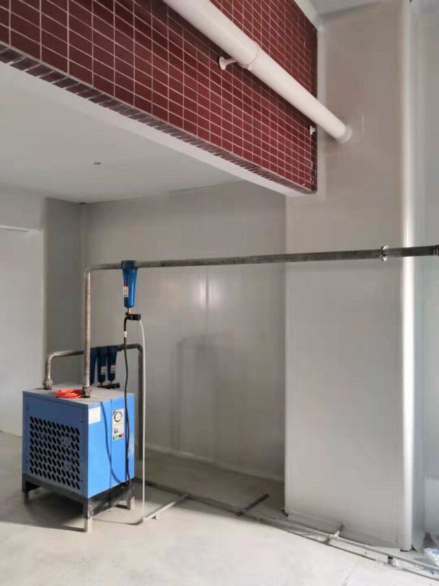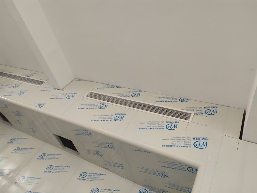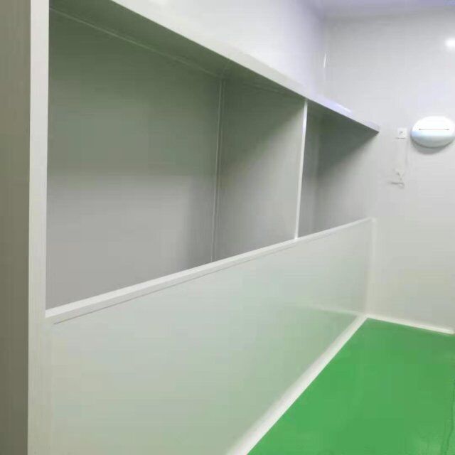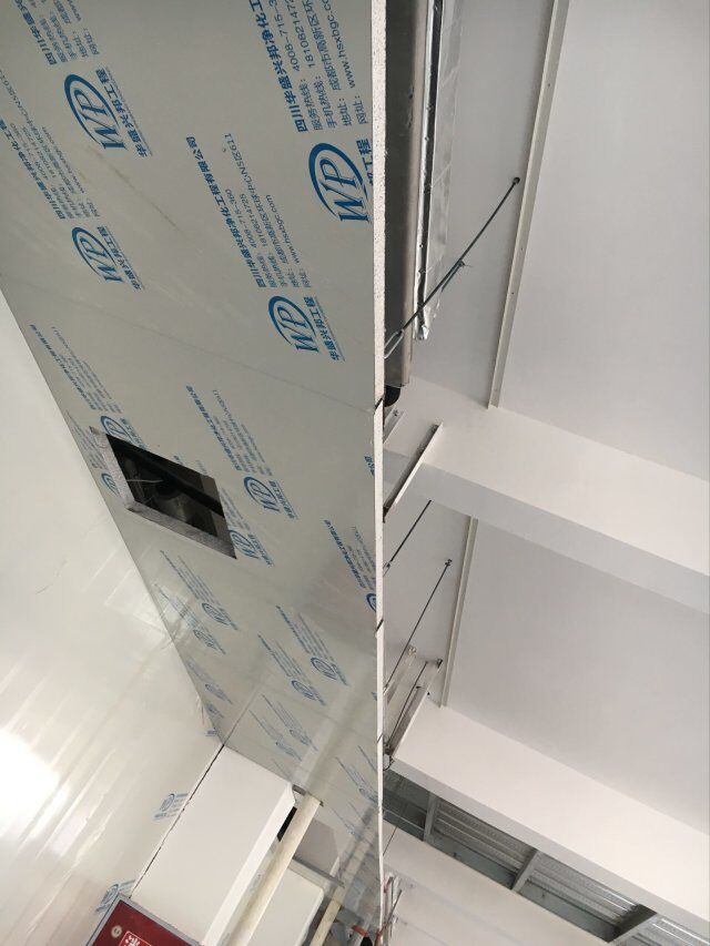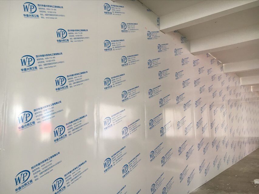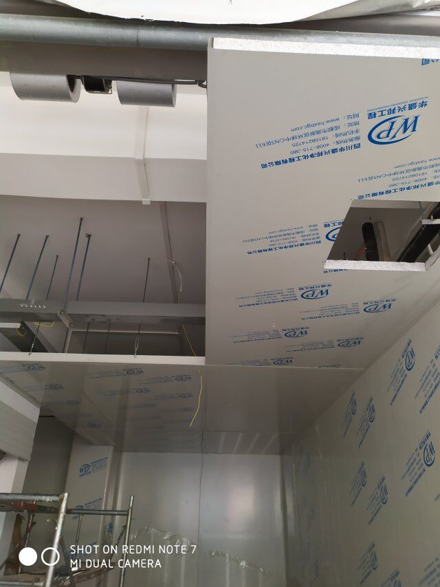 四川美料美味食品科技有限公司廠房裝修現(xiàn)場(chǎng),風(fēng)淋室調(diào)試安裝完成,板材包邊完成