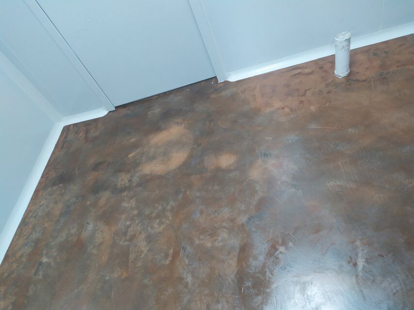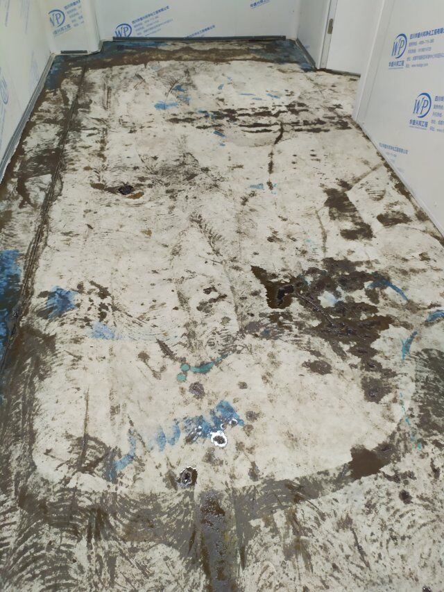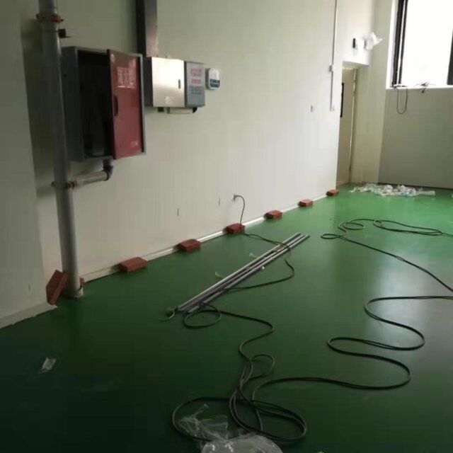 四川美料美味食品科技有限公司廠施工現(xiàn)場(chǎng),地坪施工完成,衛(wèi)生間裝修完成