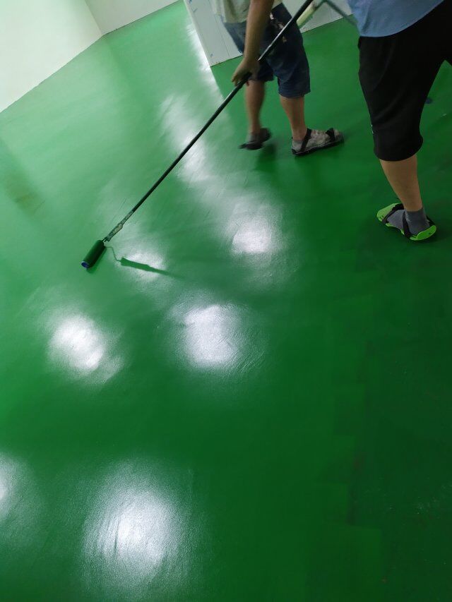 四川美料美味食品科技有限公司廠房裝修現(xiàn)場(chǎng),環(huán)氧地坪漆施工,打膠條