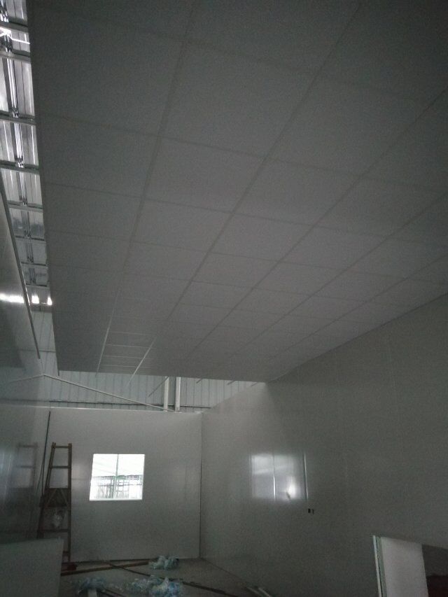 什邡昊陽農業發展有限公司廠房裝修現場,吊頂施工中