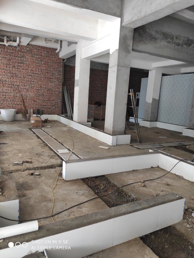 四川王臻王牛肉有限公司廠房裝修現(xiàn)場,吊頂施工,圓弧按照