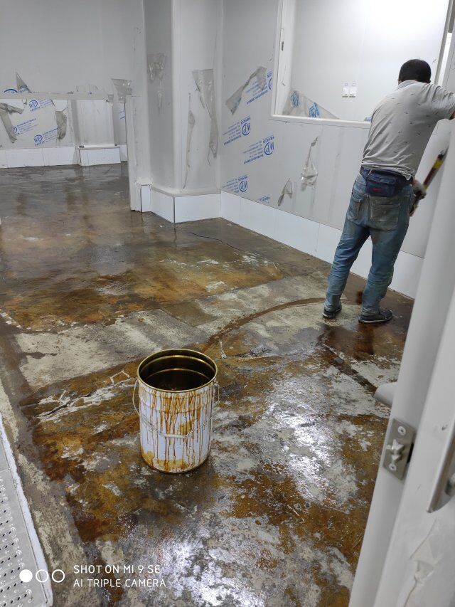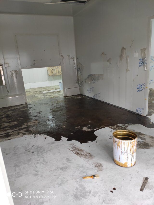 四川王臻王牛肉有限公司廠房裝修現(xiàn)場,包柱子,現(xiàn)場吊頂板