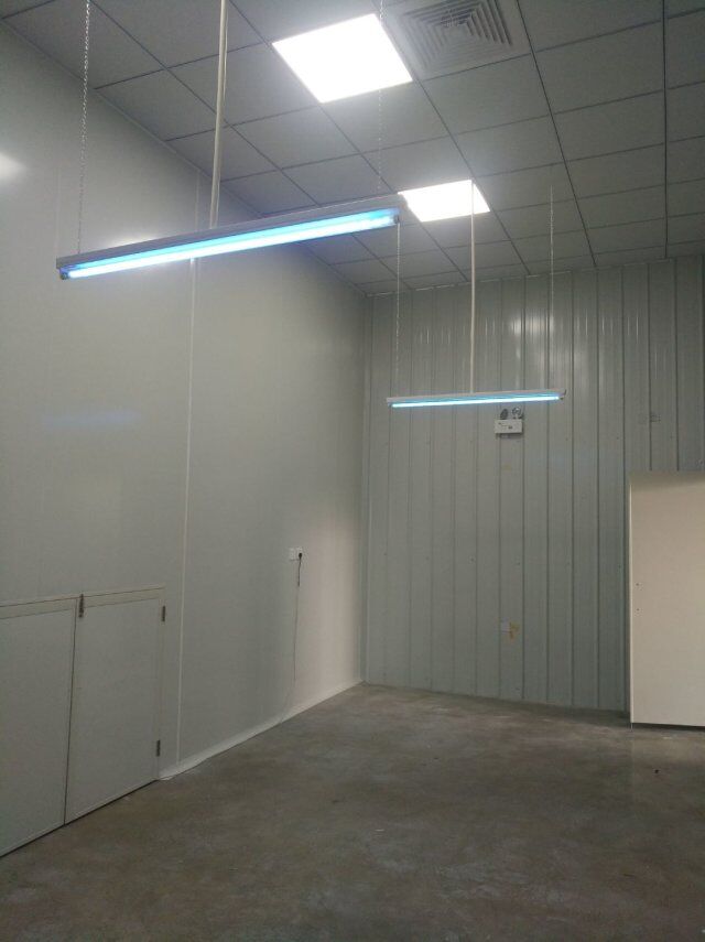 紫外燈安裝完成,車間擋鼠板安裝完成,現場清理干凈