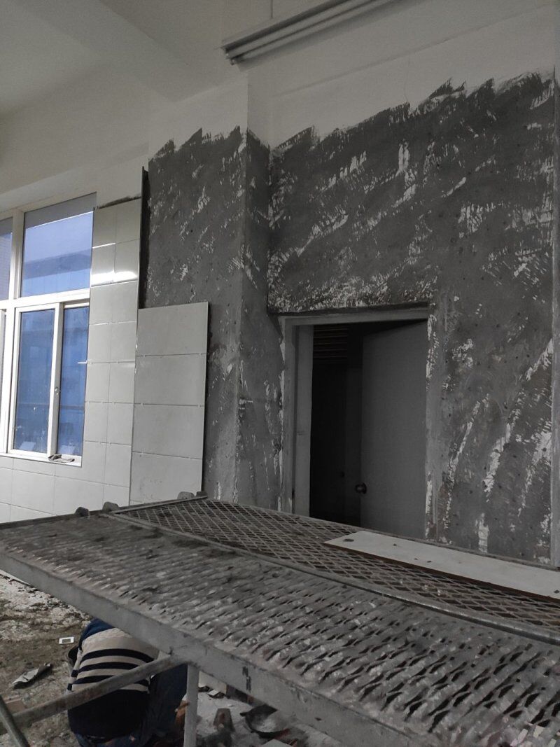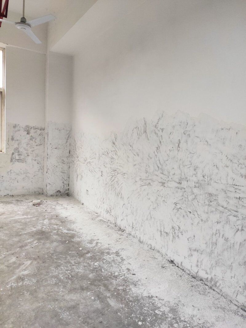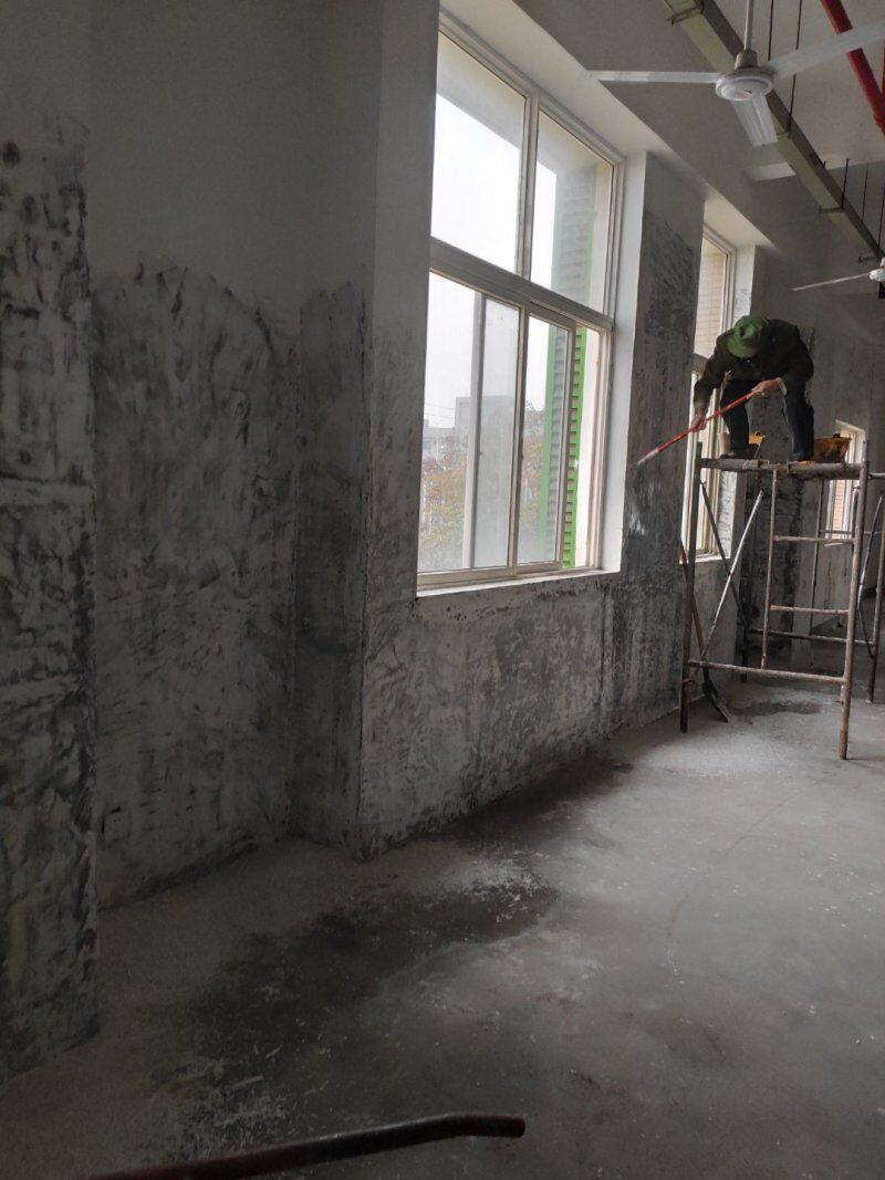 車間入場(chǎng)裝修,墻面刮灰