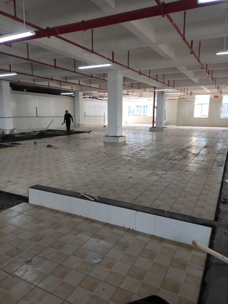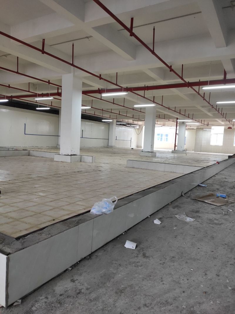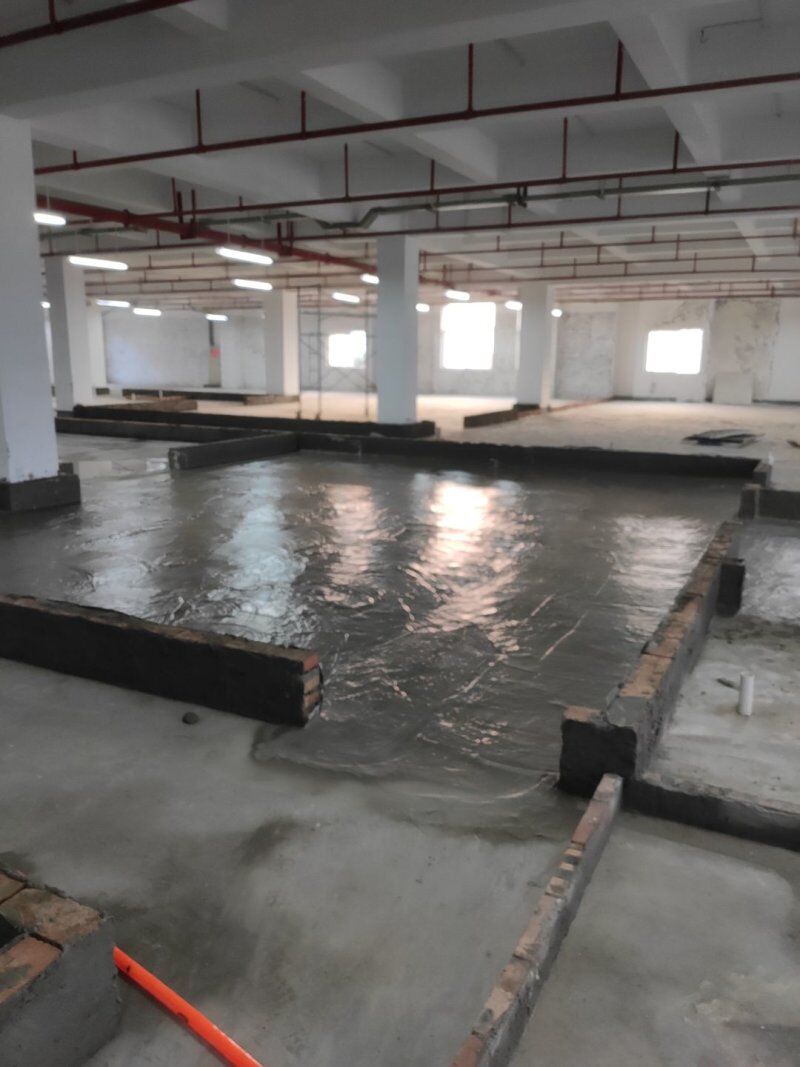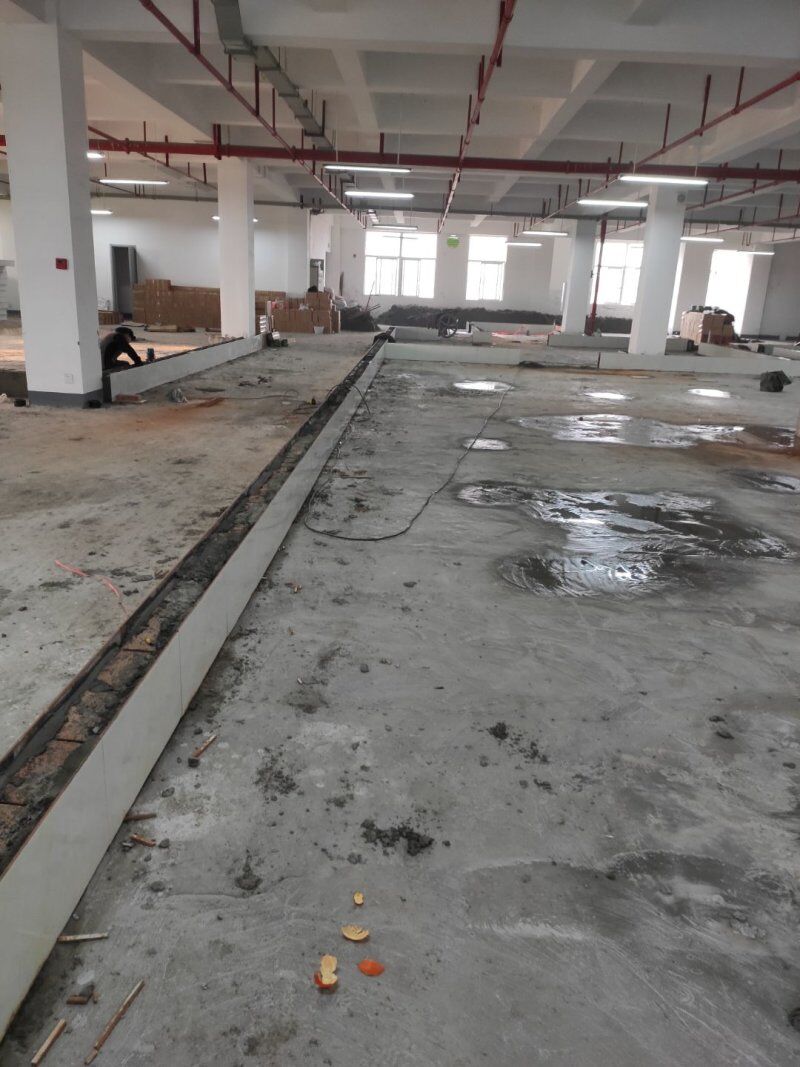 車間風(fēng)扇拆除完成,防水地坪施工