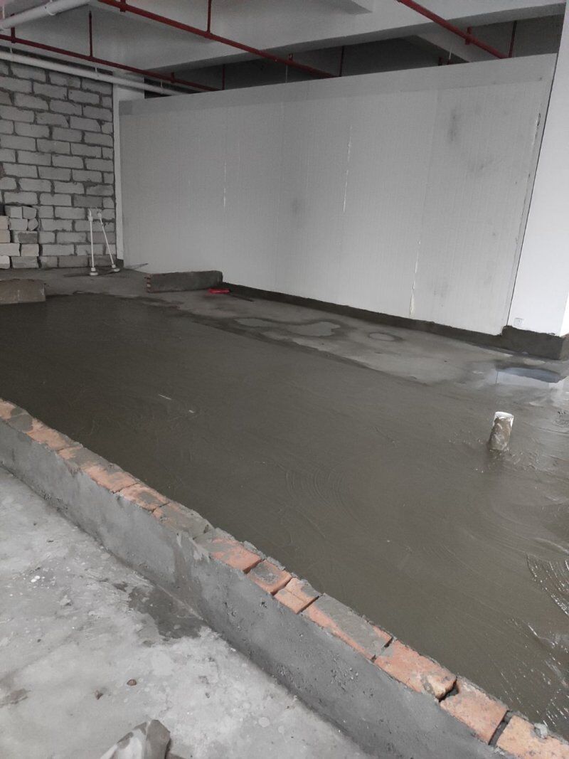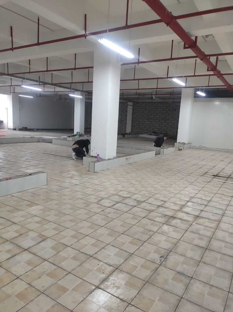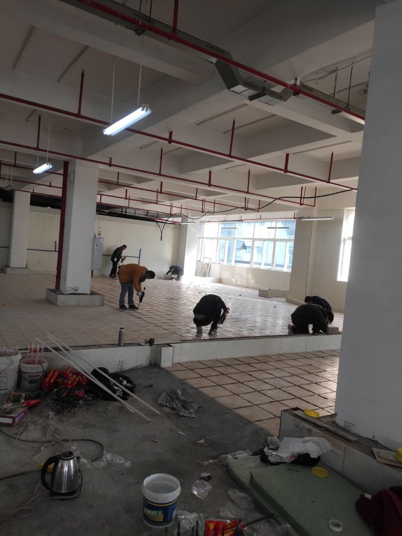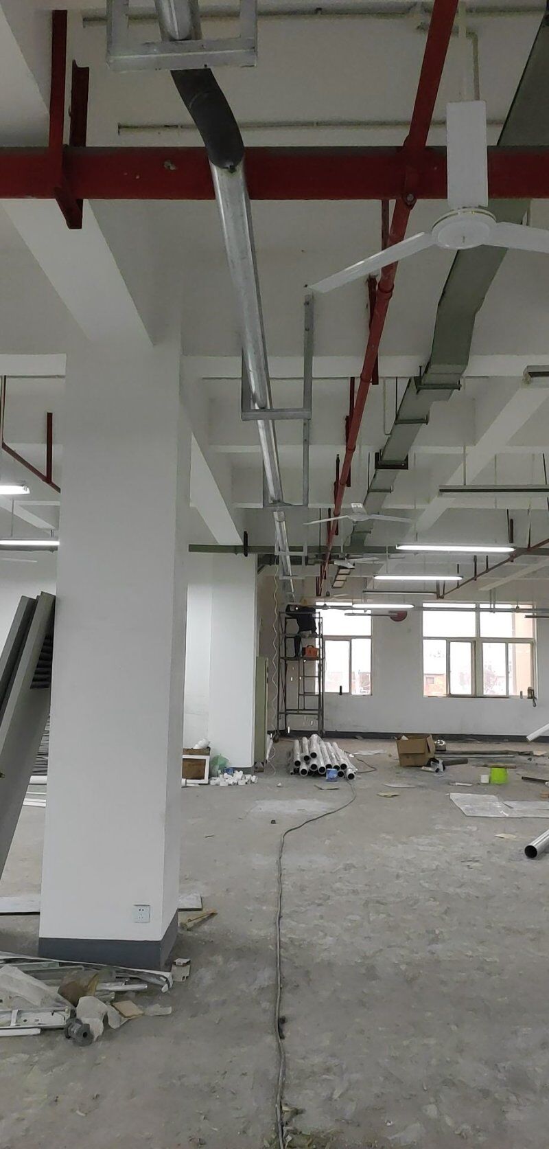車間風(fēng)扇拆除完成,防水地坪施工