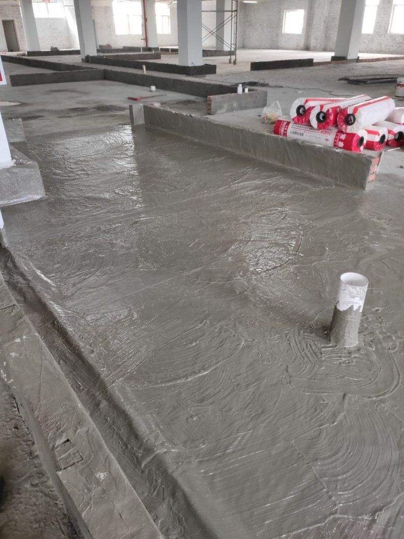 地坪清掃干凈,地面開始做防水
