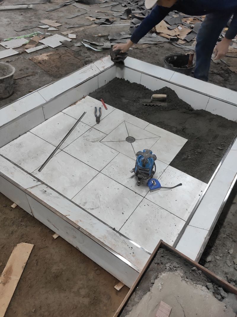 腳踏池安裝,地磚貼完,衛(wèi)生清理