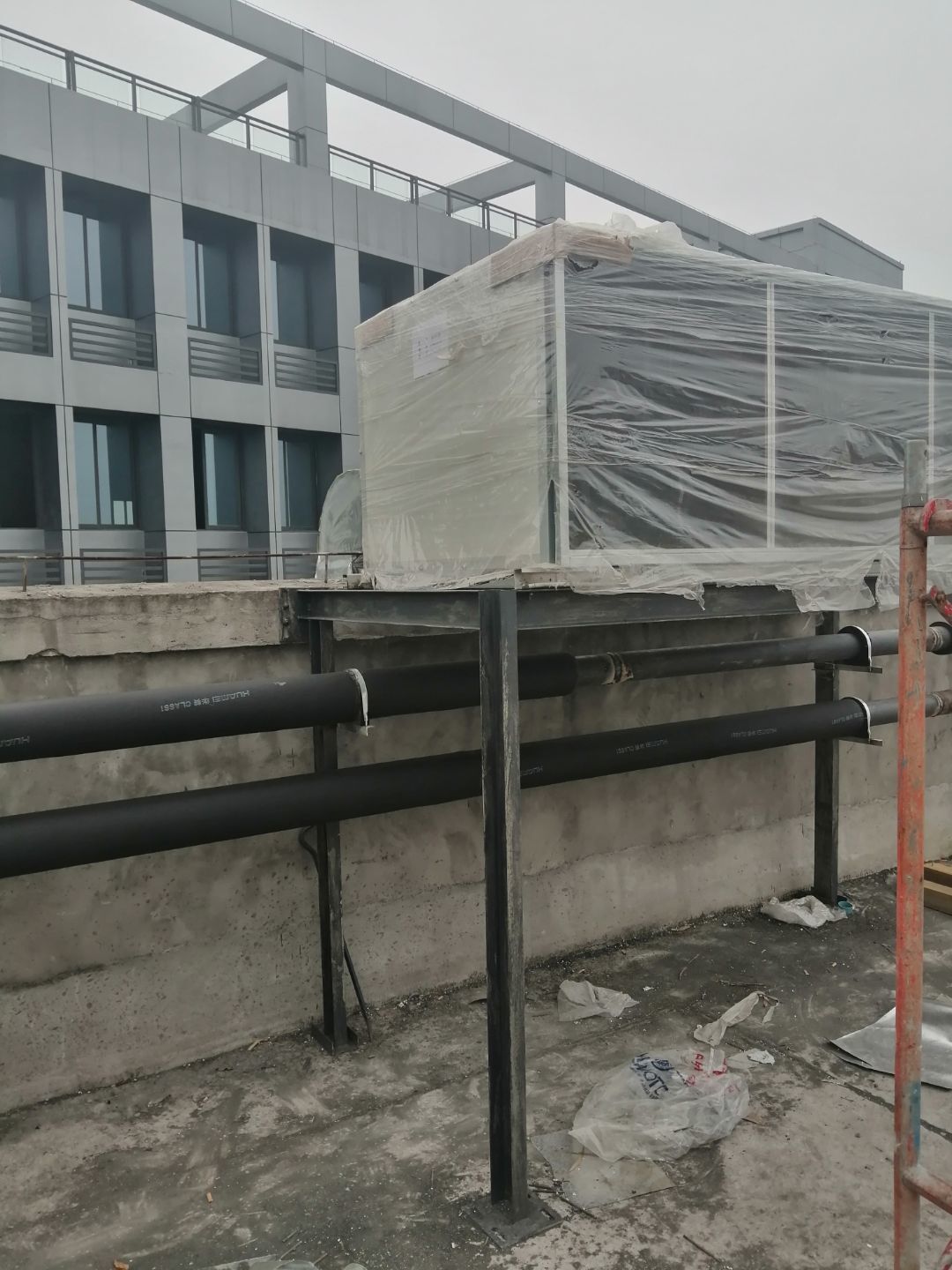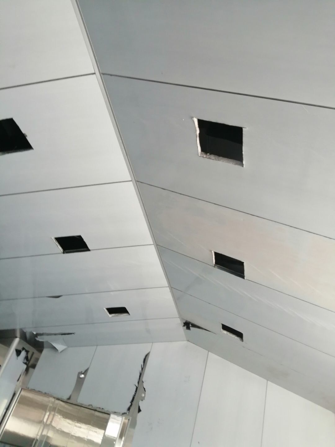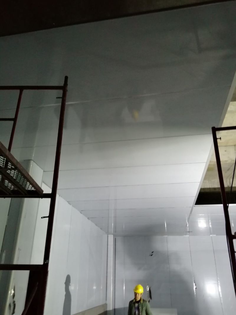 1.風管組裝完成,保溫完成百分之五十 2.彩鋼板開始全面吊頂