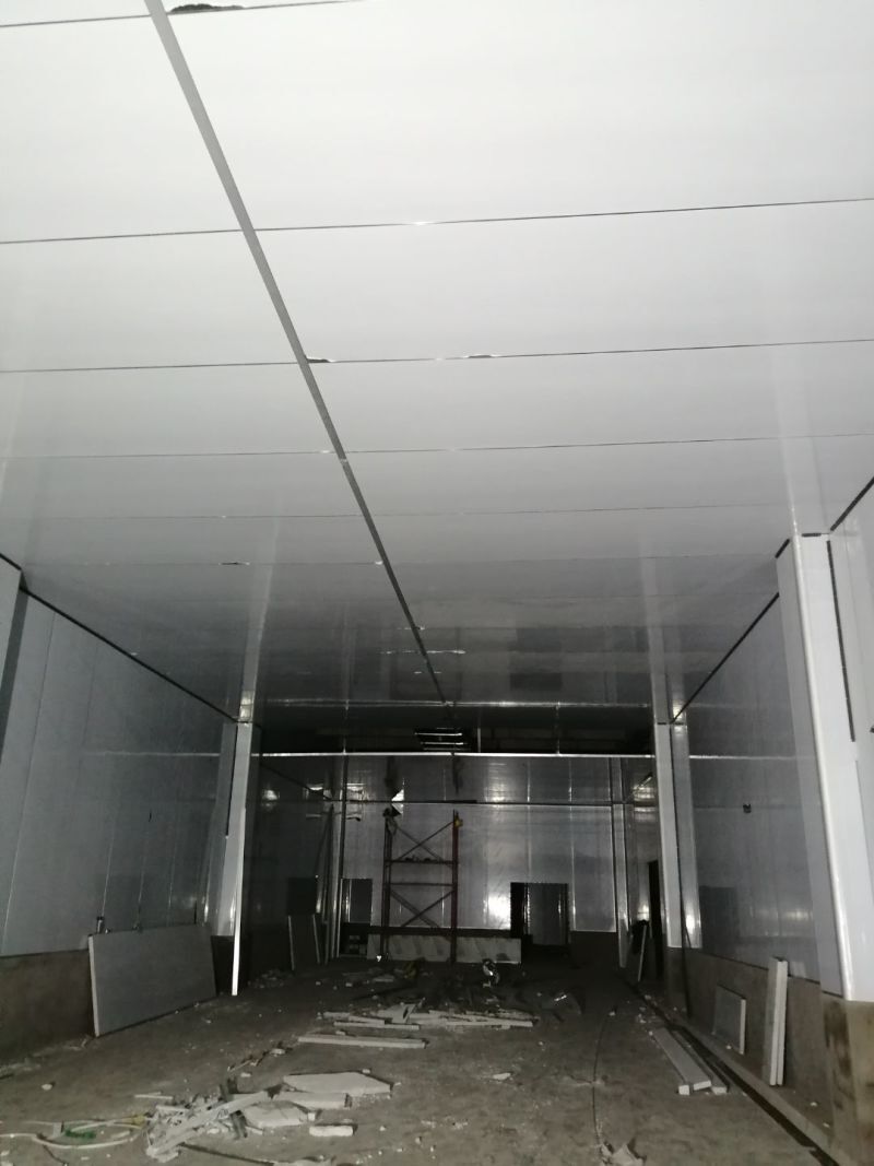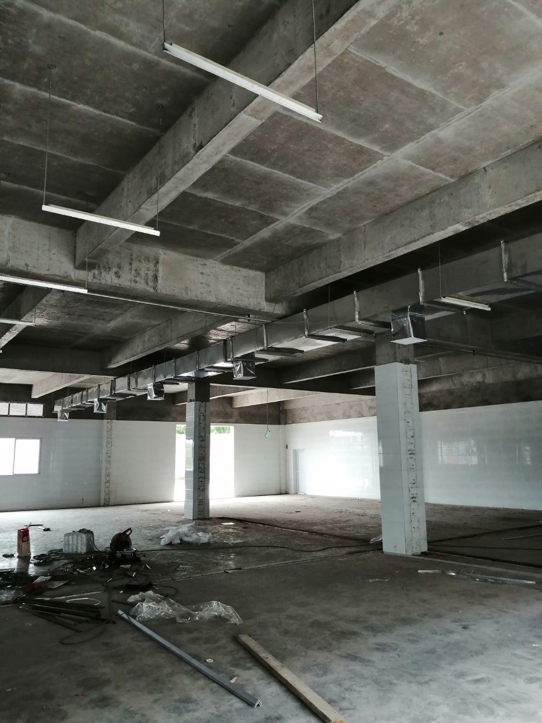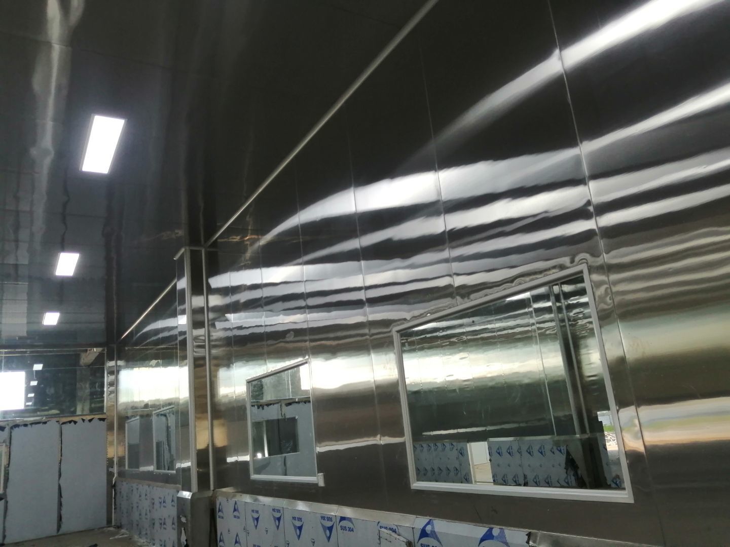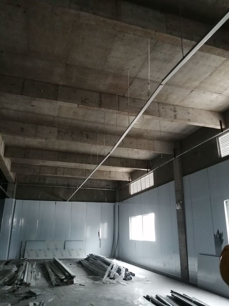 吊筋安裝;現(xiàn)有墻板施工;殺菌間照明電完成布線;廁所布線,給水施工開始