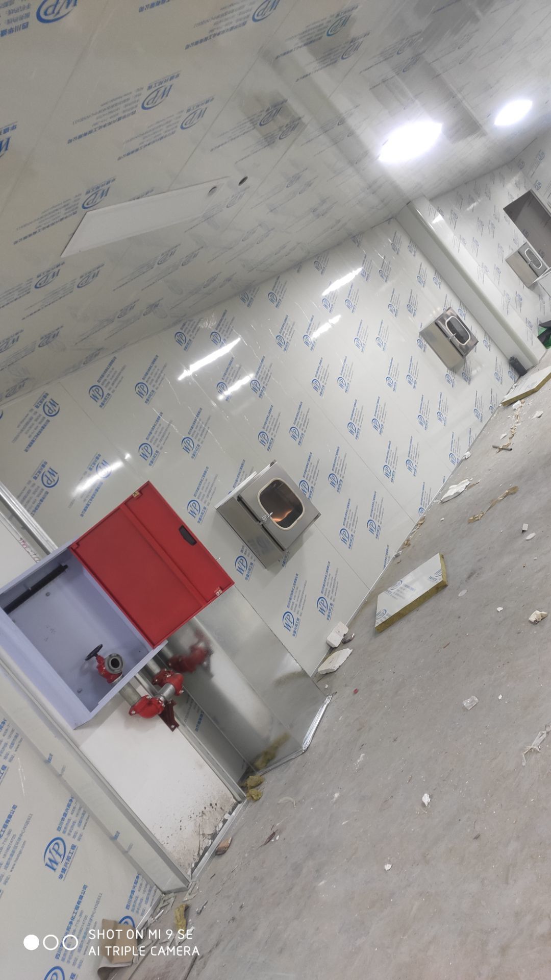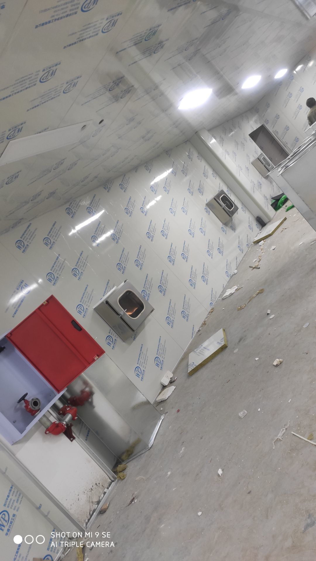 1.圓弧膠水完成30% 2.門安裝完成50% 3.鎖安裝完成50% 4.風管待安裝風口接入管道