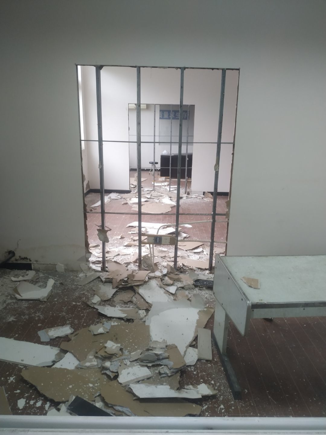 暗埋排水管和給水管地面恢復完成;門洞開洞完成;靠外墻內側墻面鏟除完成,刷界面劑完成。