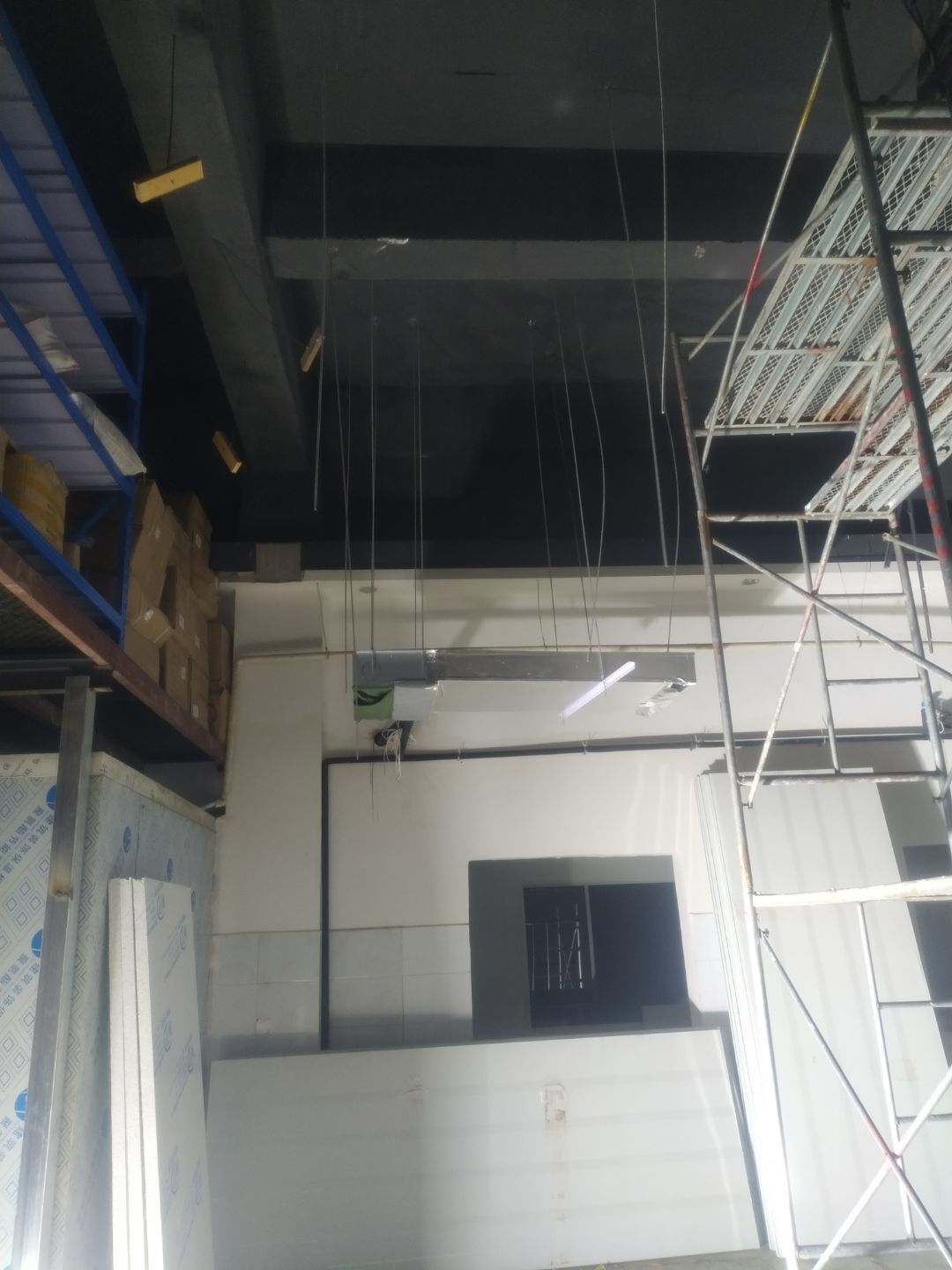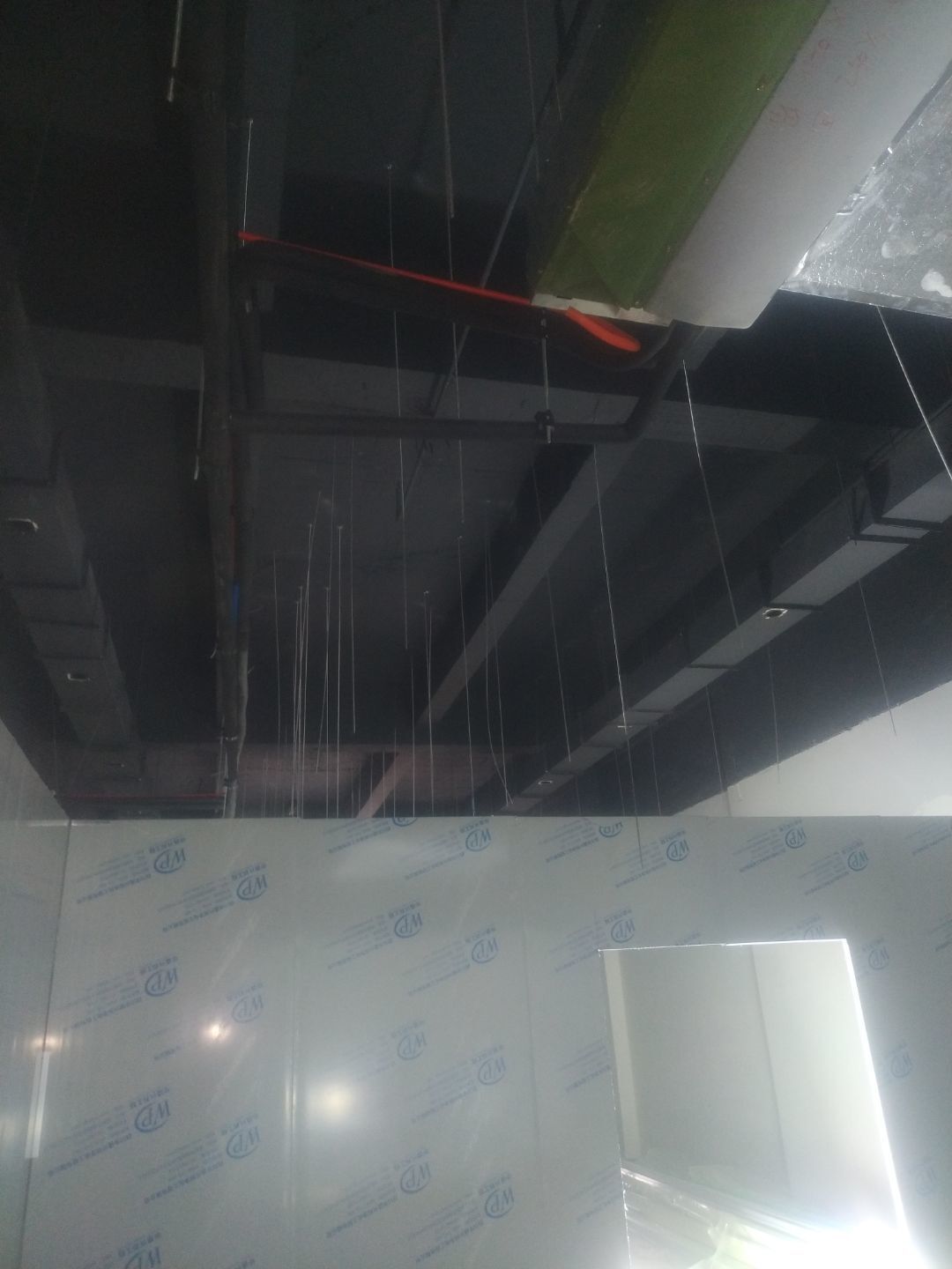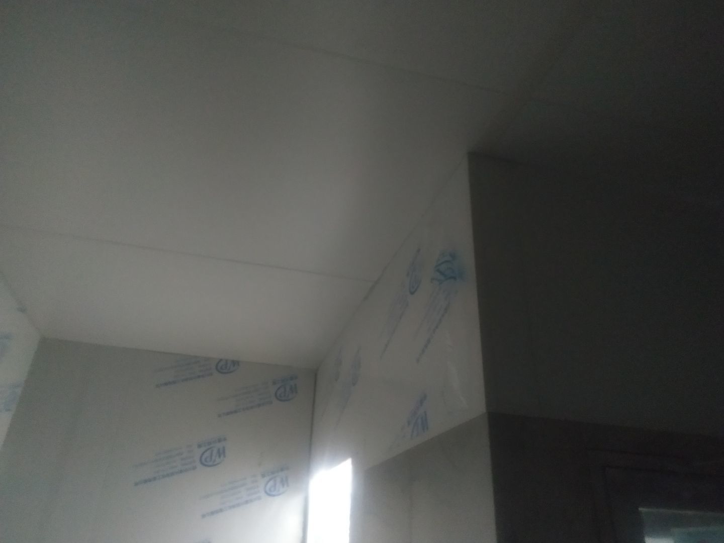 圓弧安裝完成,打膠完成,風(fēng)口開(kāi)洞完成,開(kāi)關(guān)插座開(kāi)孔完成80%,燈具安裝完成,現(xiàn)場(chǎng)衛(wèi)生清理完成,建渣處理完成。