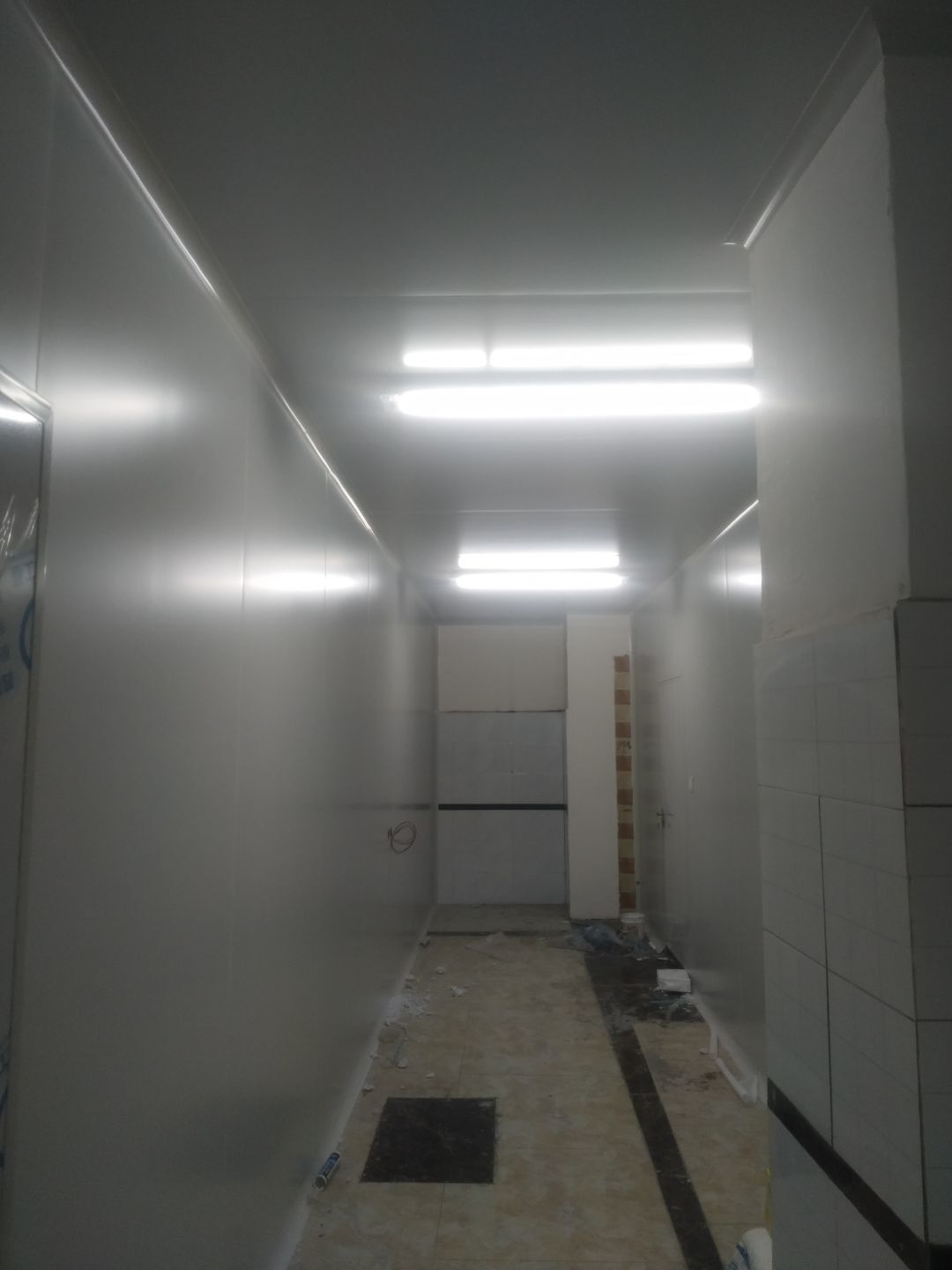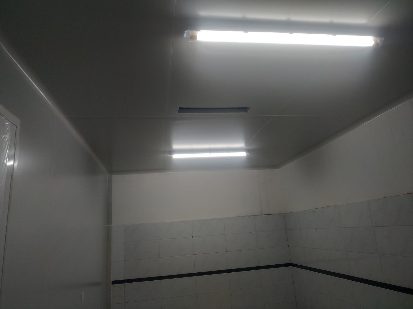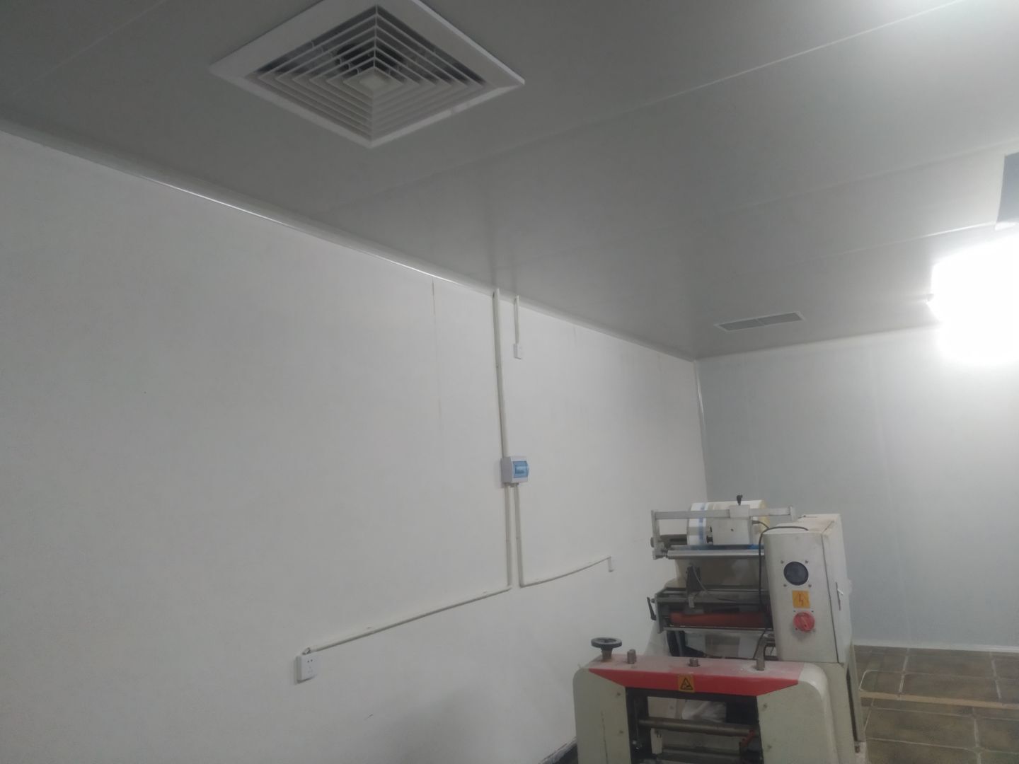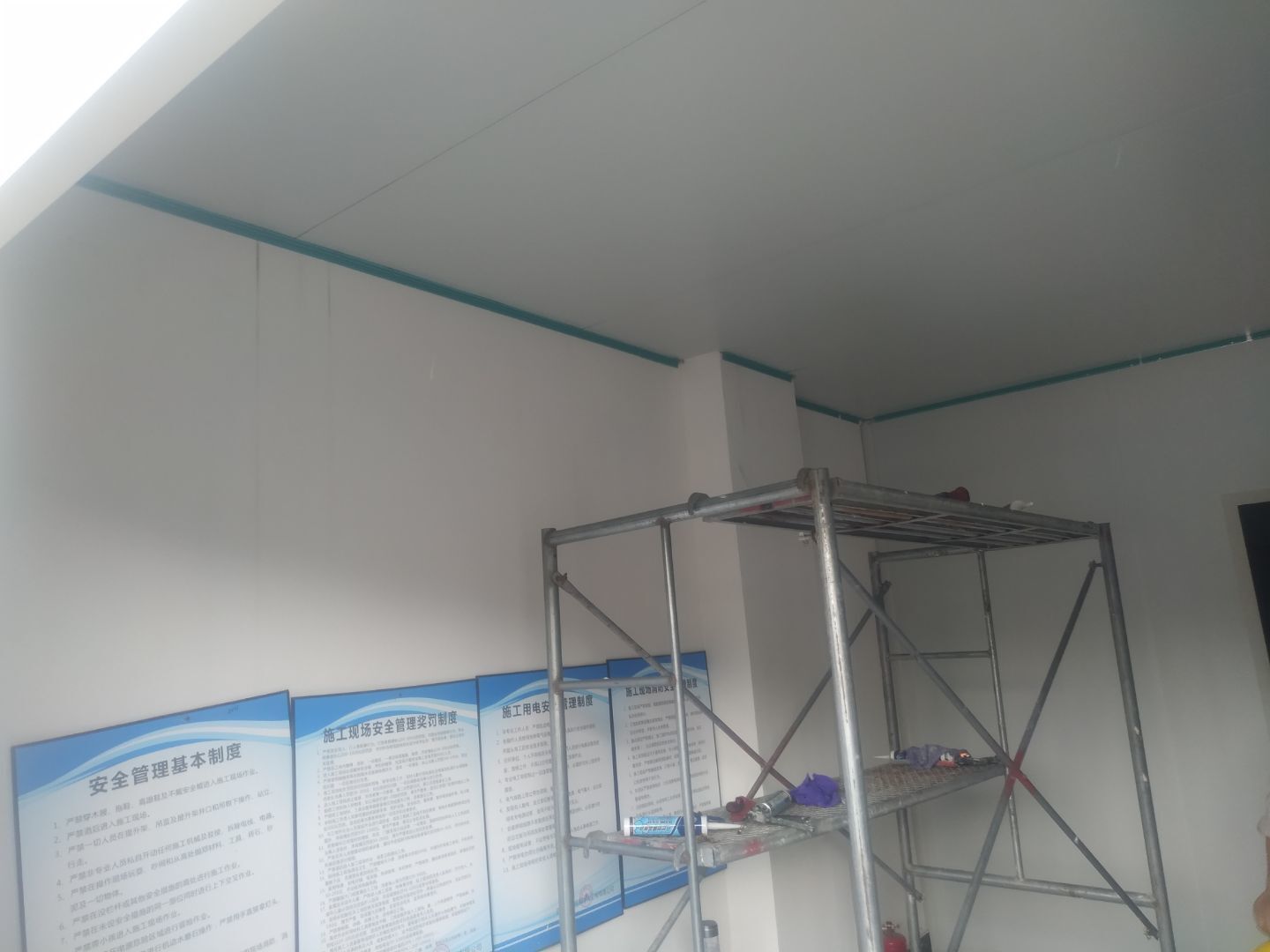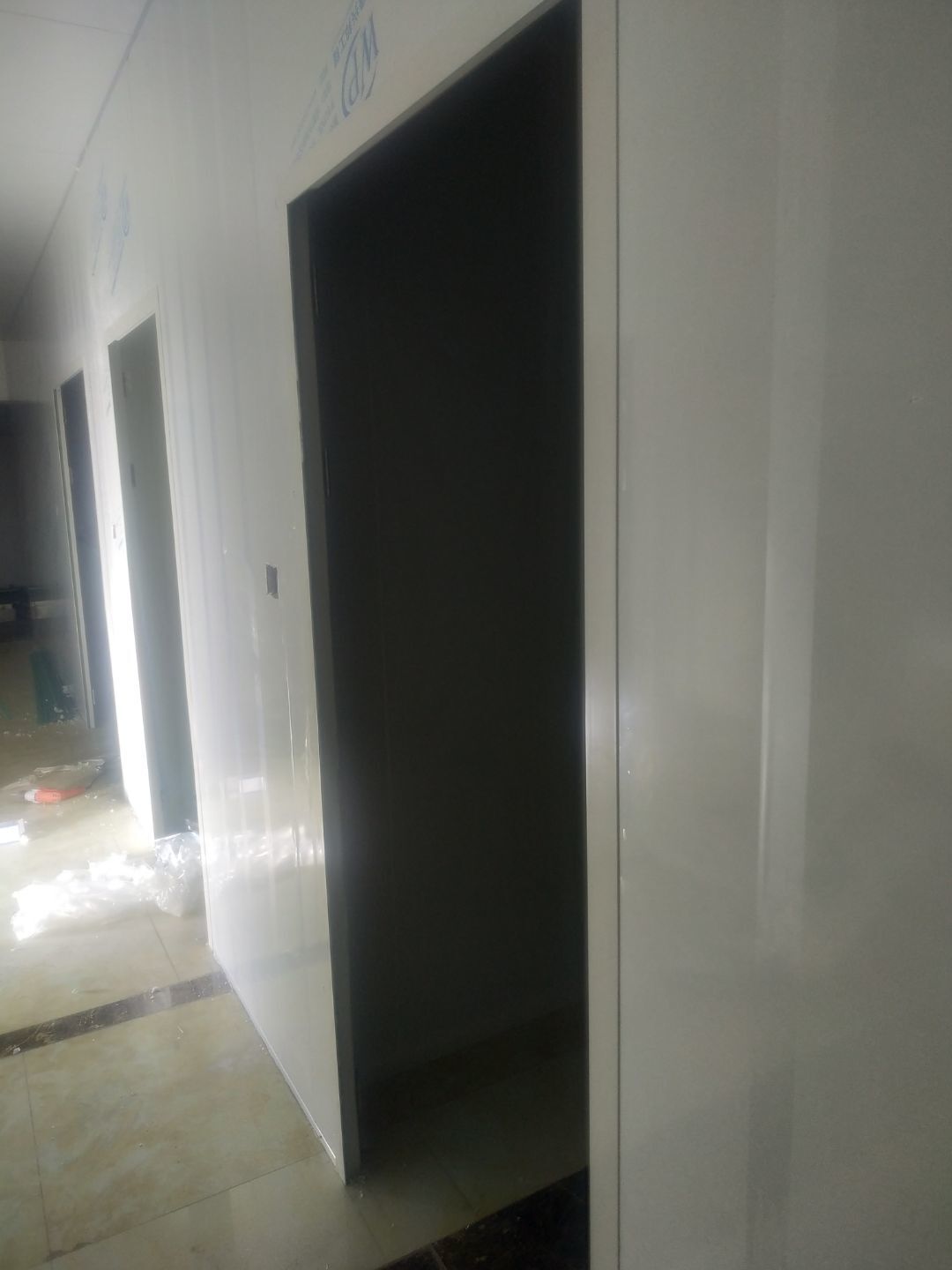 門(mén)安裝完成,門(mén)鎖安裝完成,換氣扇、進(jìn)風(fēng)口、空調(diào)風(fēng)口開(kāi)洞完成,照明電試電完成。