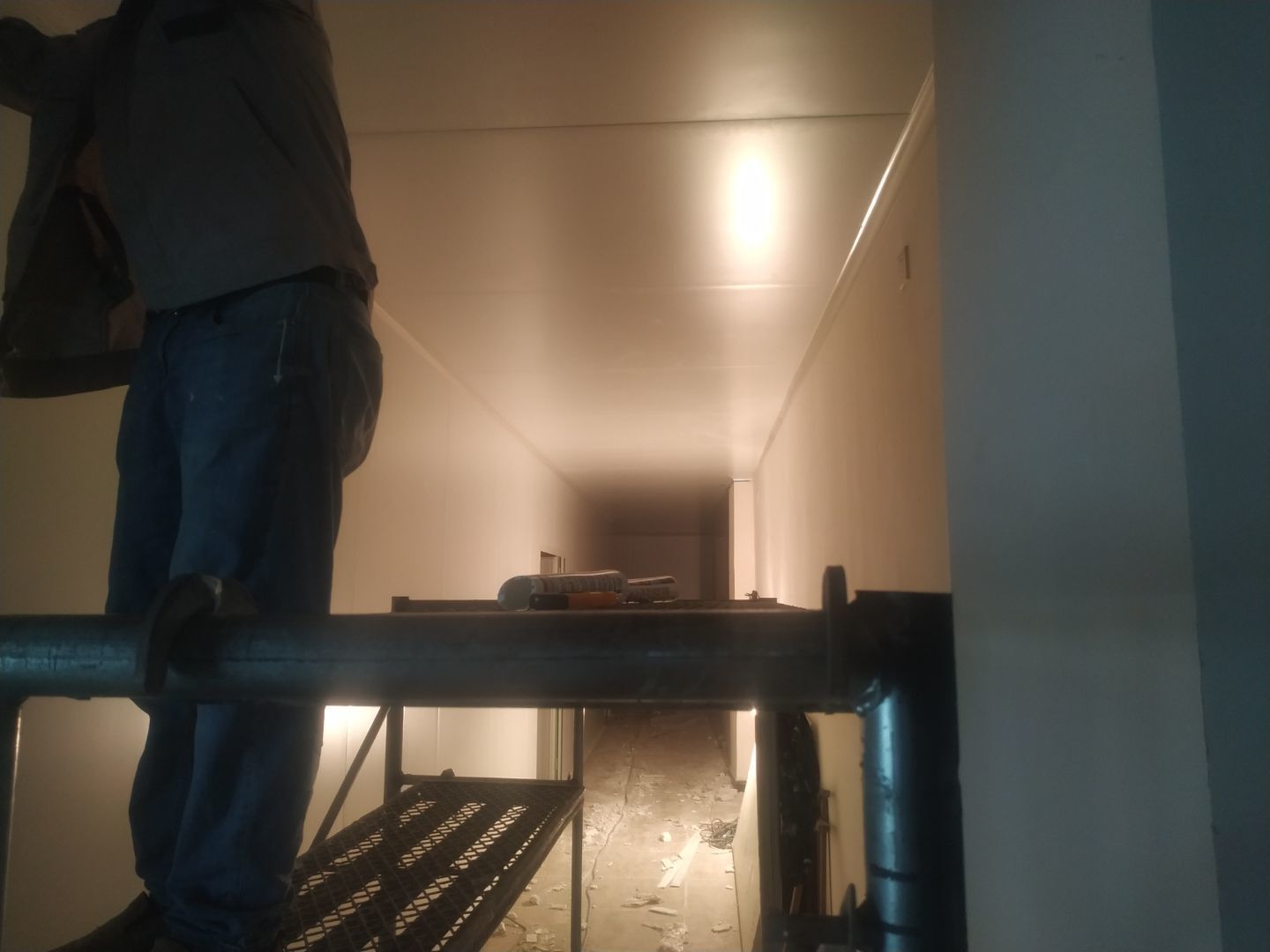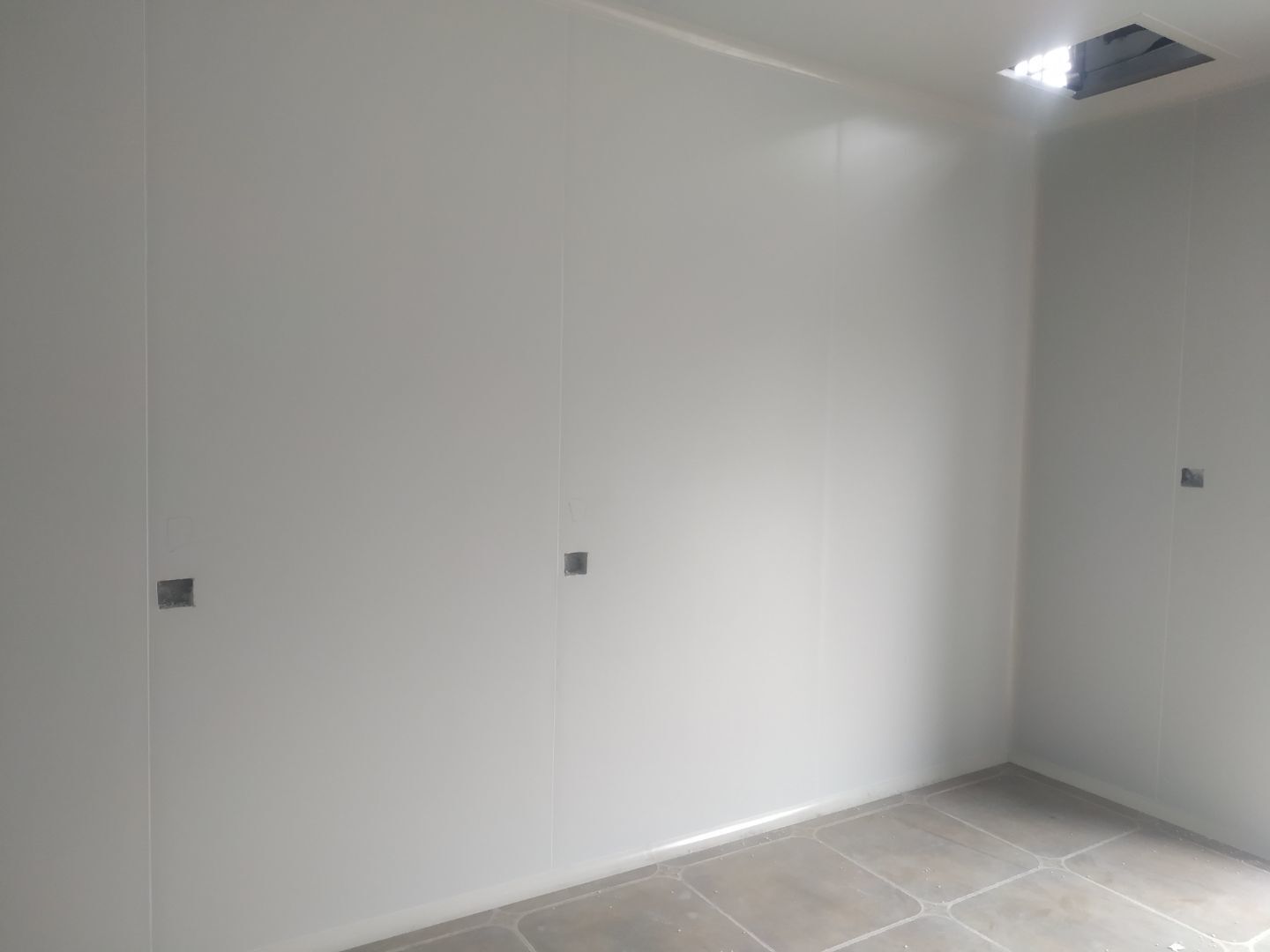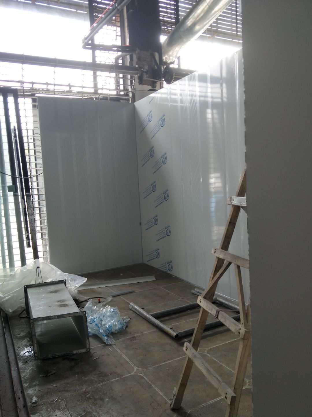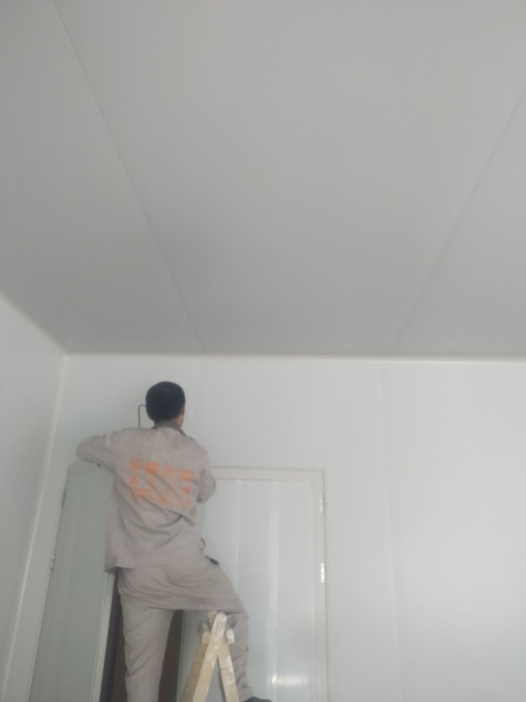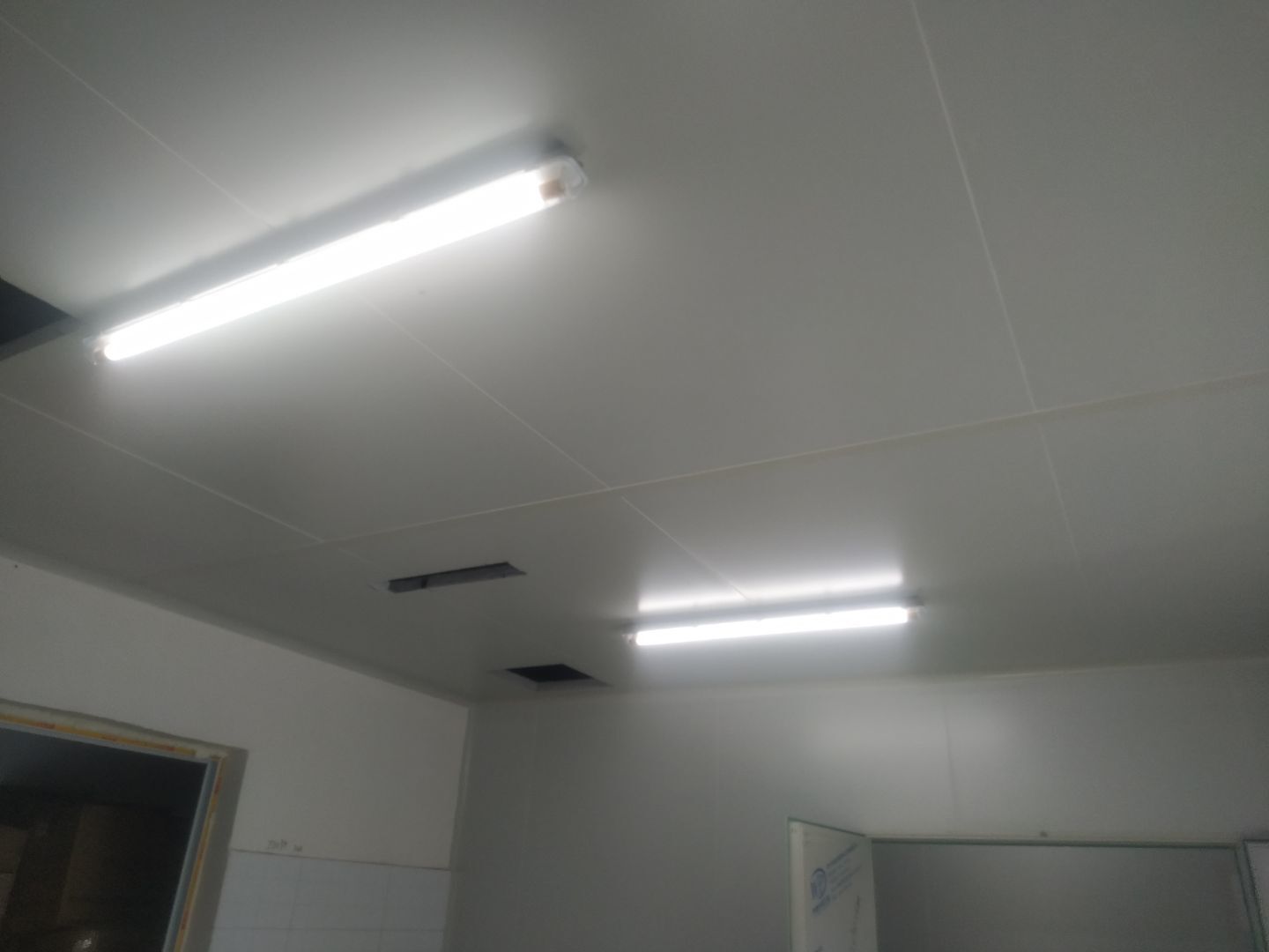 門(mén)安裝完成,門(mén)鎖安裝完成,換氣扇、進(jìn)風(fēng)口、空調(diào)風(fēng)口開(kāi)洞完成,照明電試電完成。