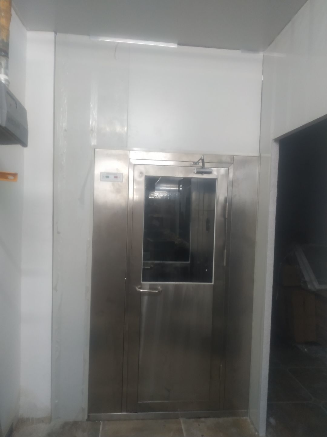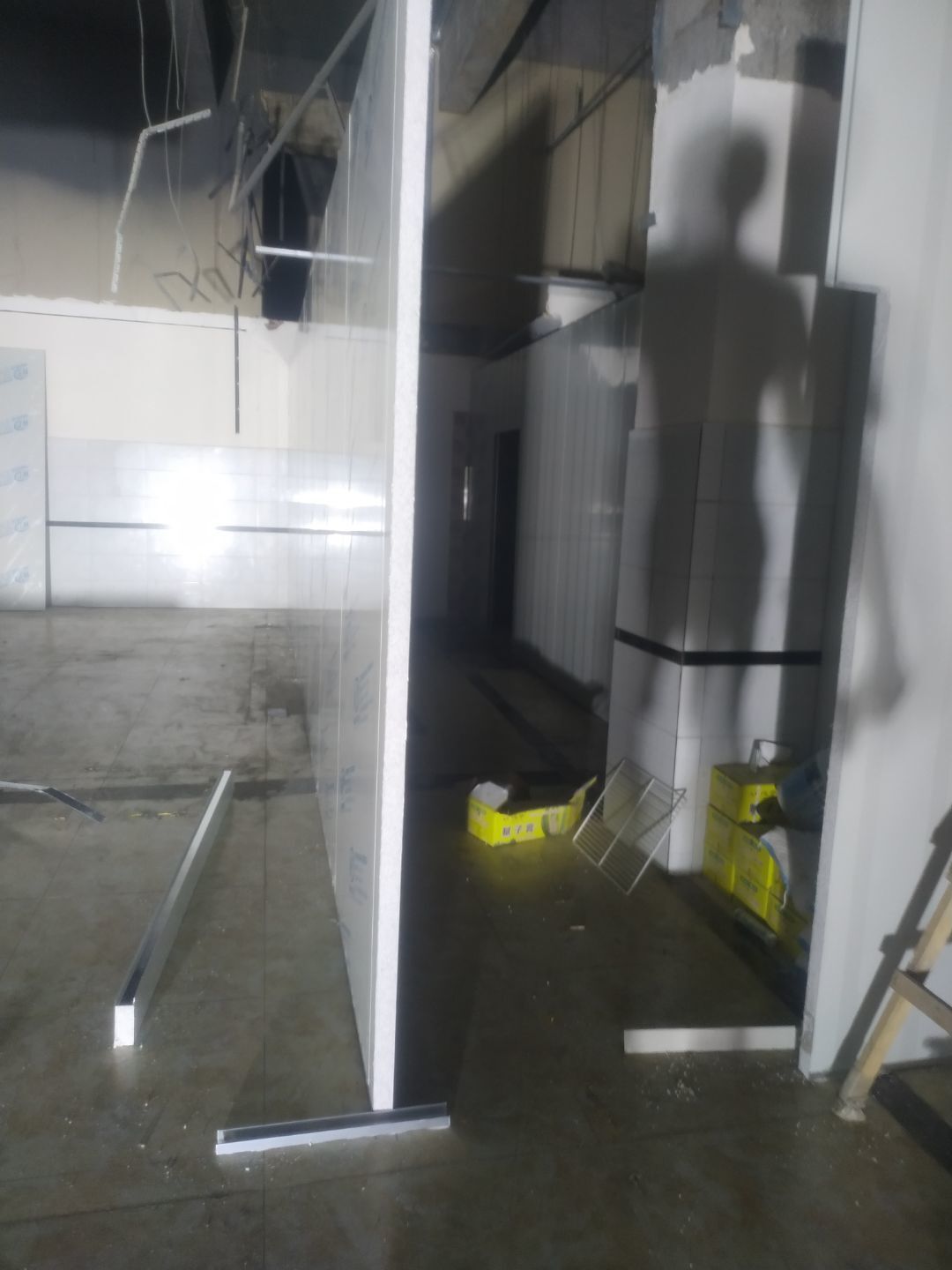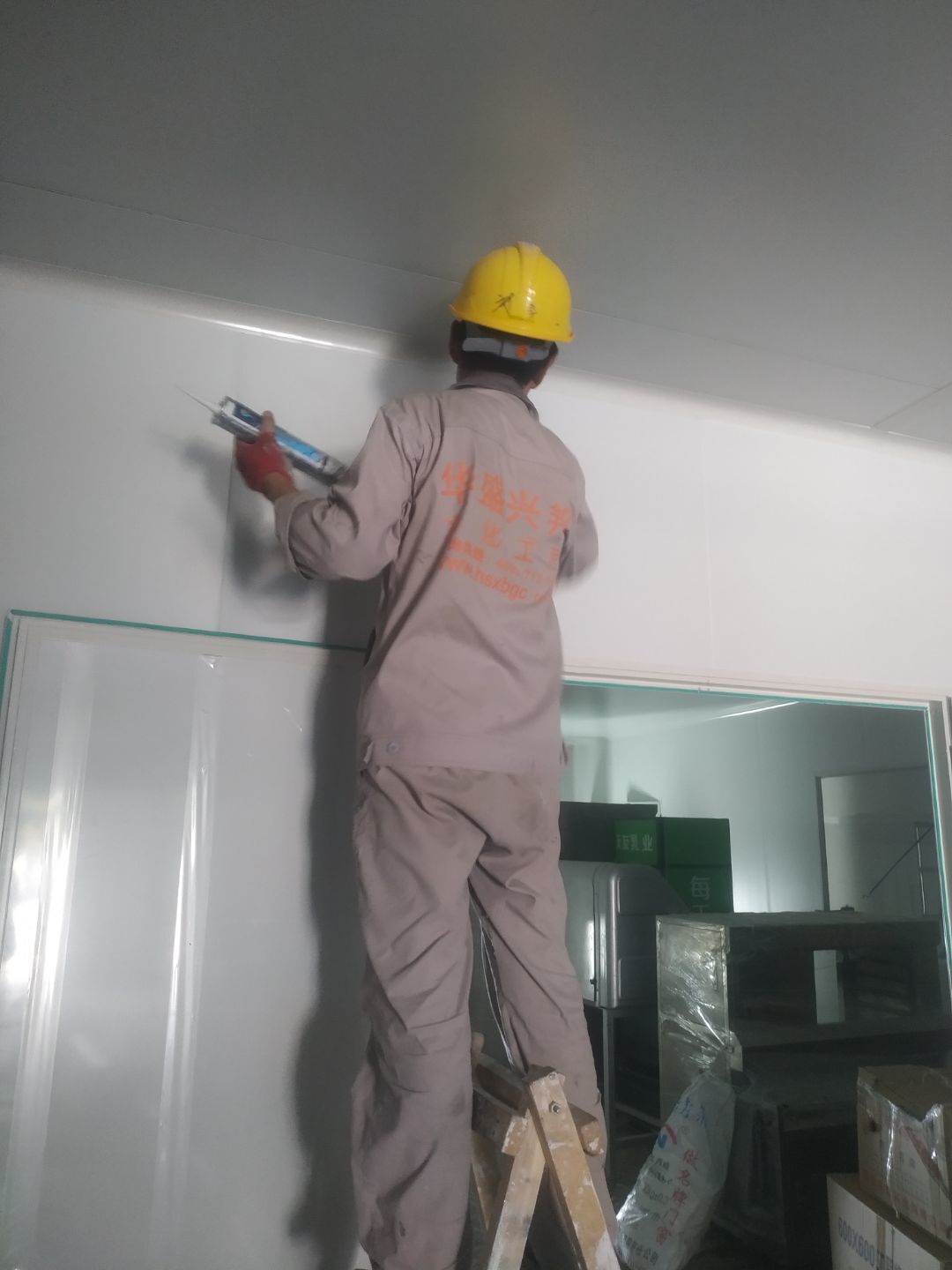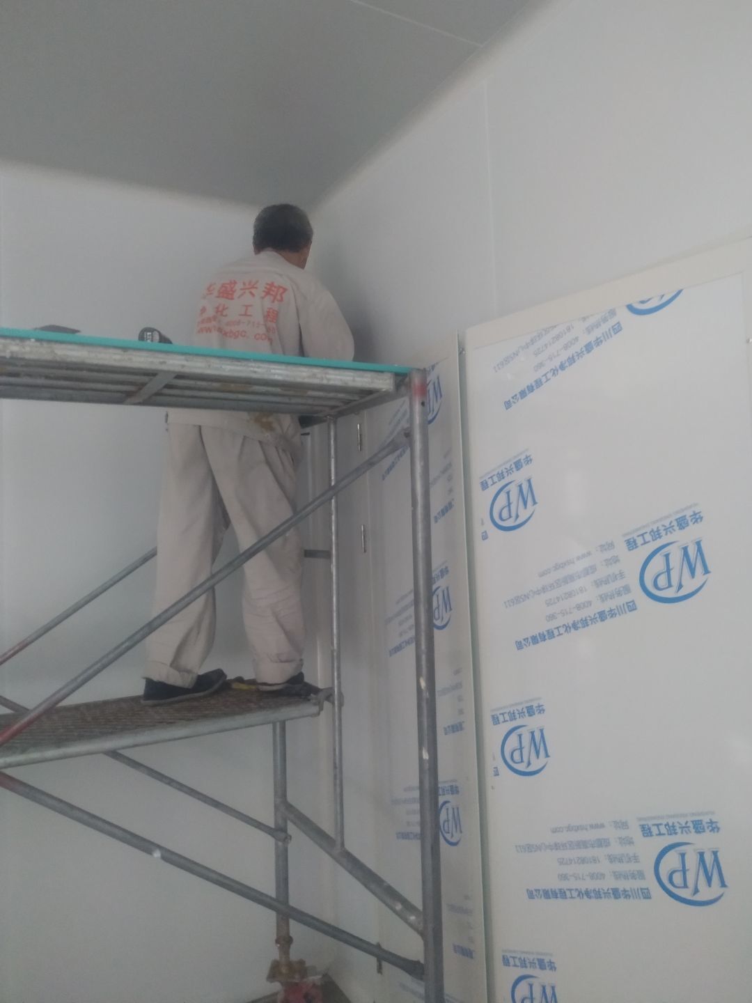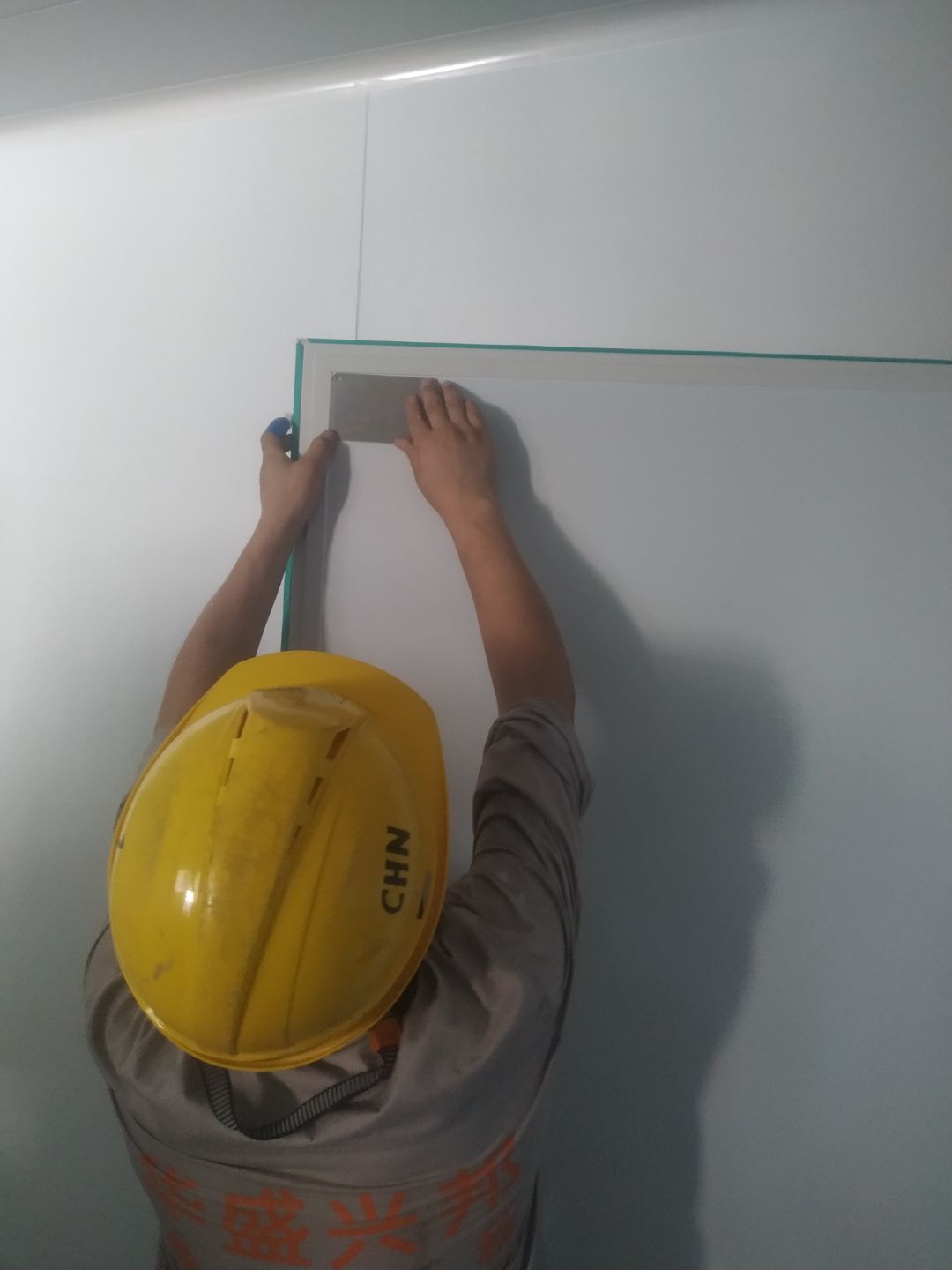 圓弧安裝完成90%,打膠完成85%,門(mén)鎖安裝完成75%,觀察窗開(kāi)洞和玻璃安裝完成。