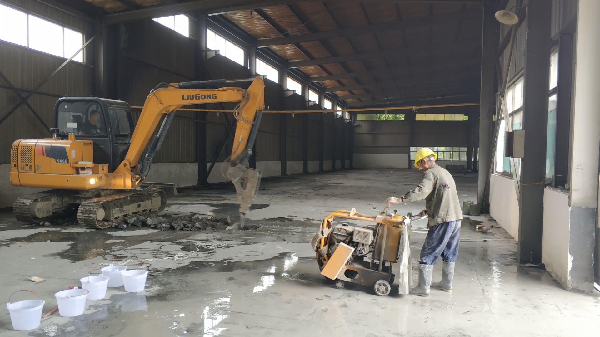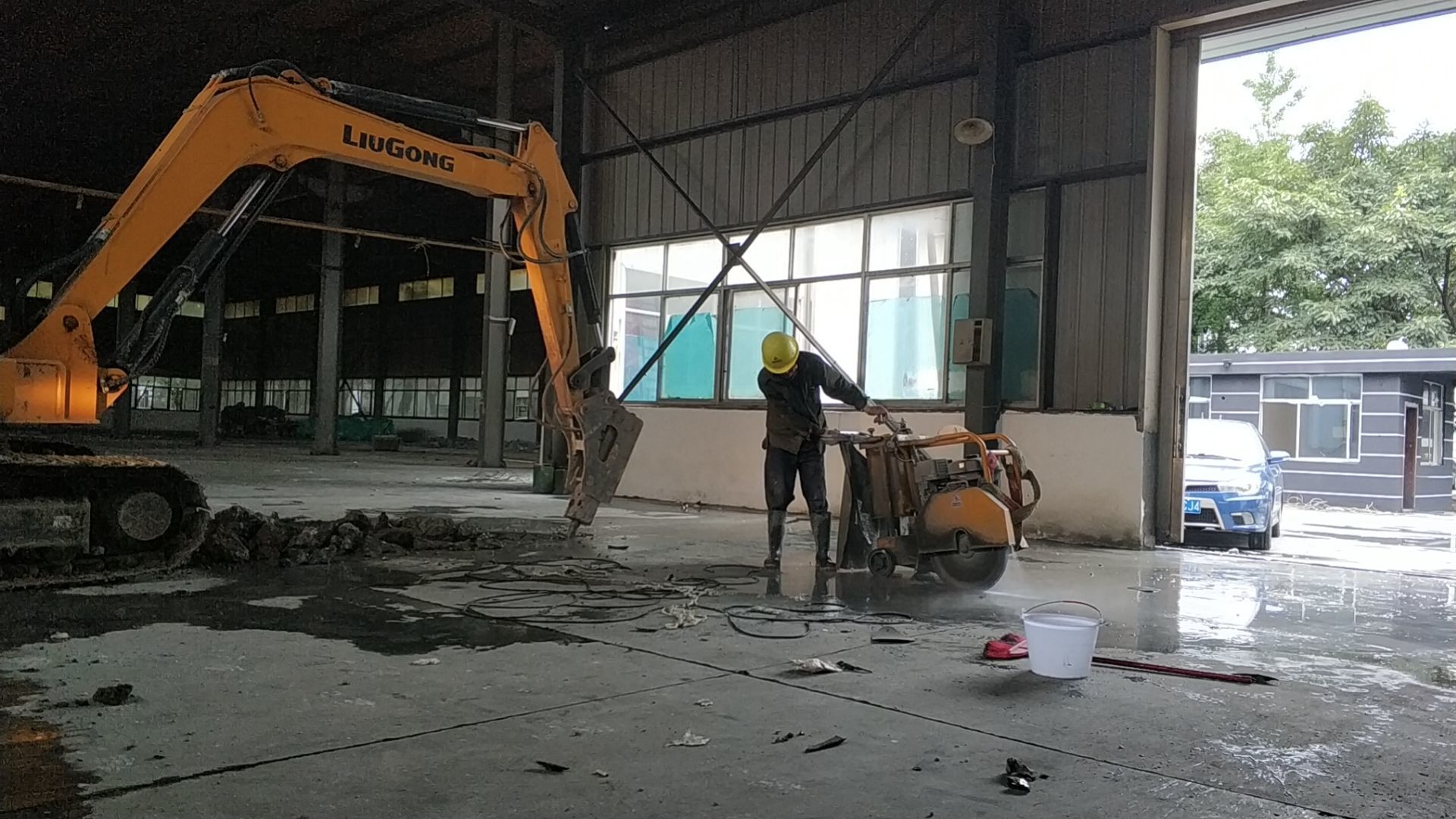 混凝土層破處開(kāi)挖,水溝開(kāi)挖切線施工,排水溝混凝土層破除