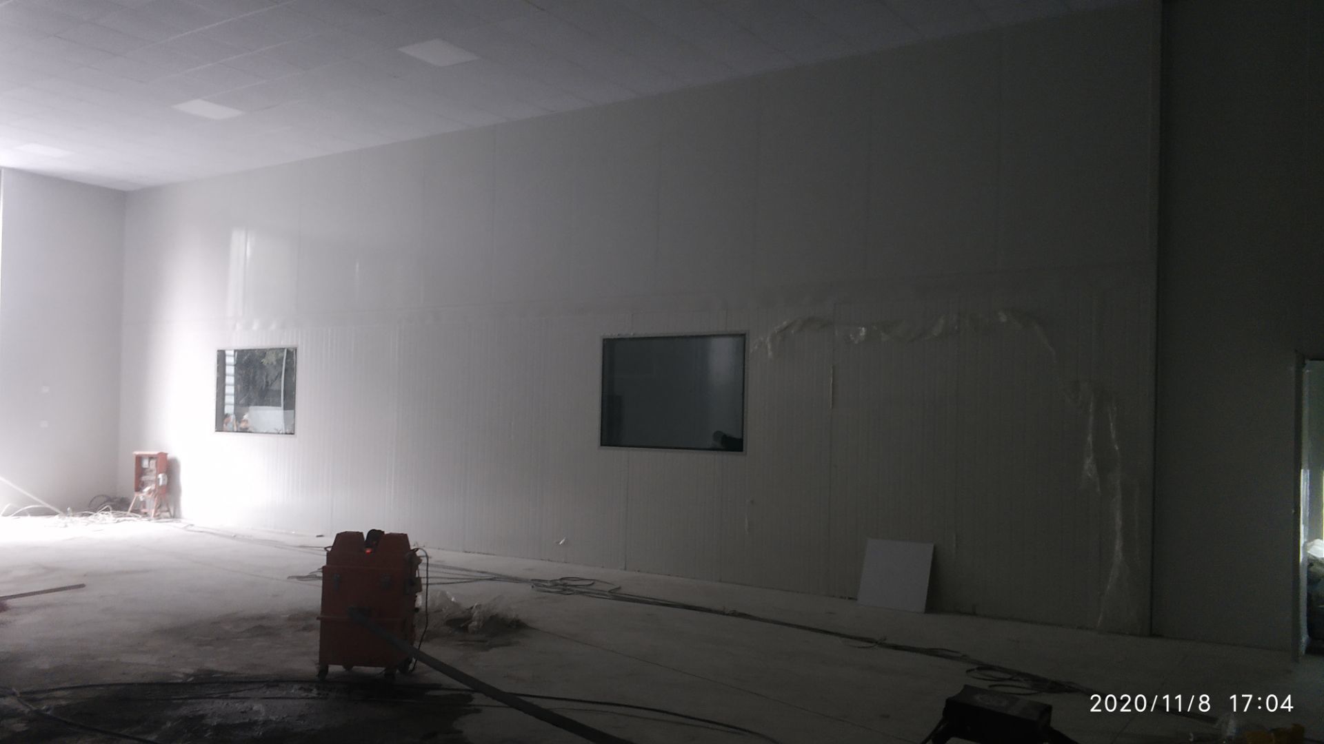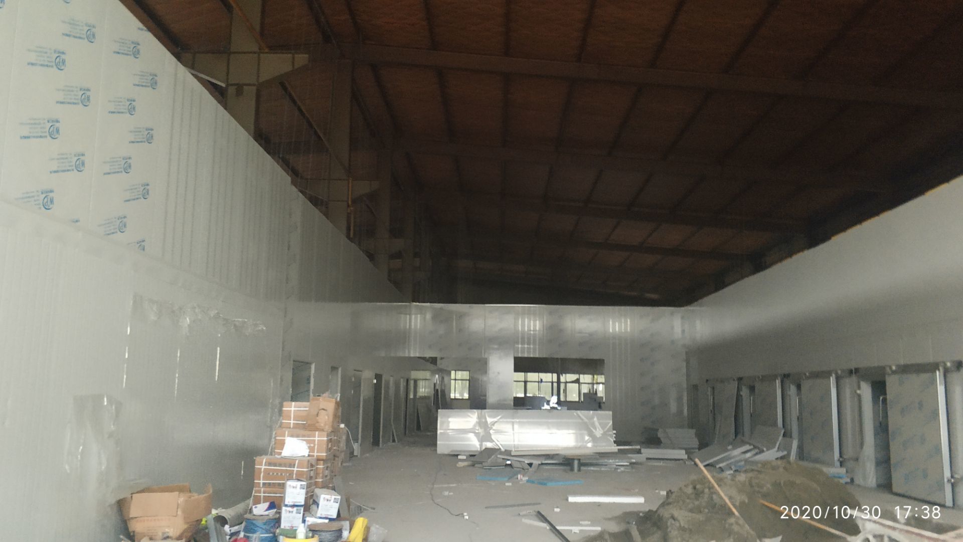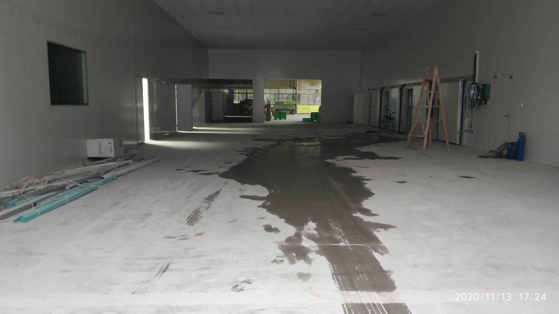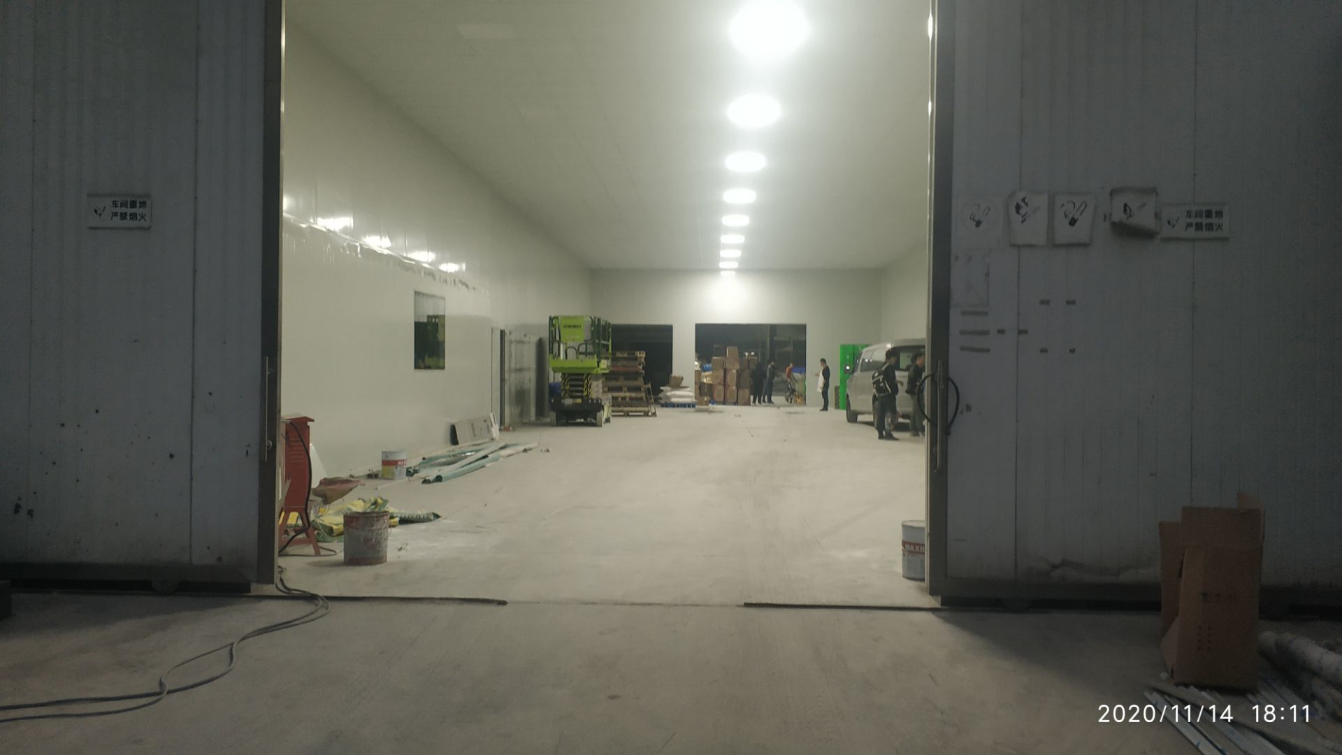 1.地面打磨完成分揀區(qū)域和后勤庫(kù)房。2.彩鋼組收邊收口,安裝門(mén)完成百分之八十。3.照明插座布線安裝完成百分之八十五。 4.凍庫(kù)內(nèi)機(jī)組安裝完成。 5.卷簾門(mén)安裝完成。