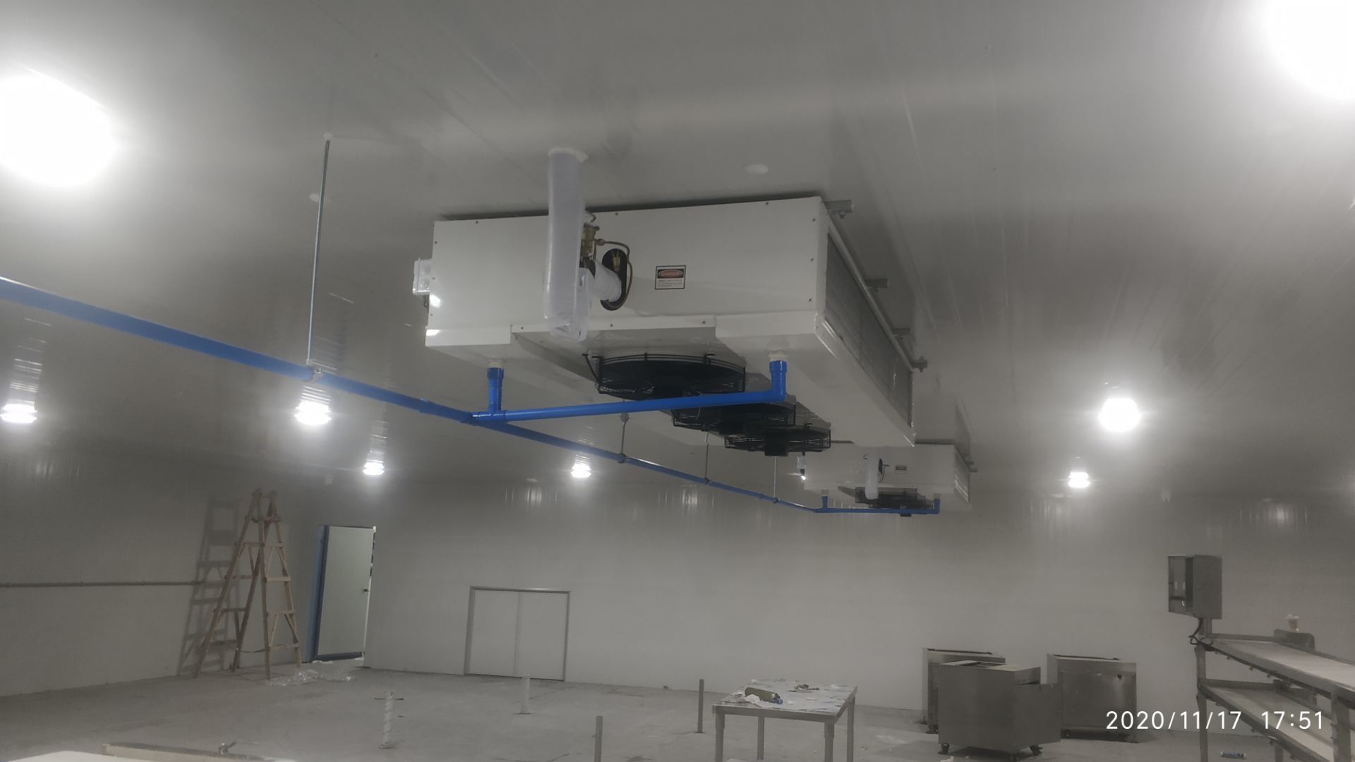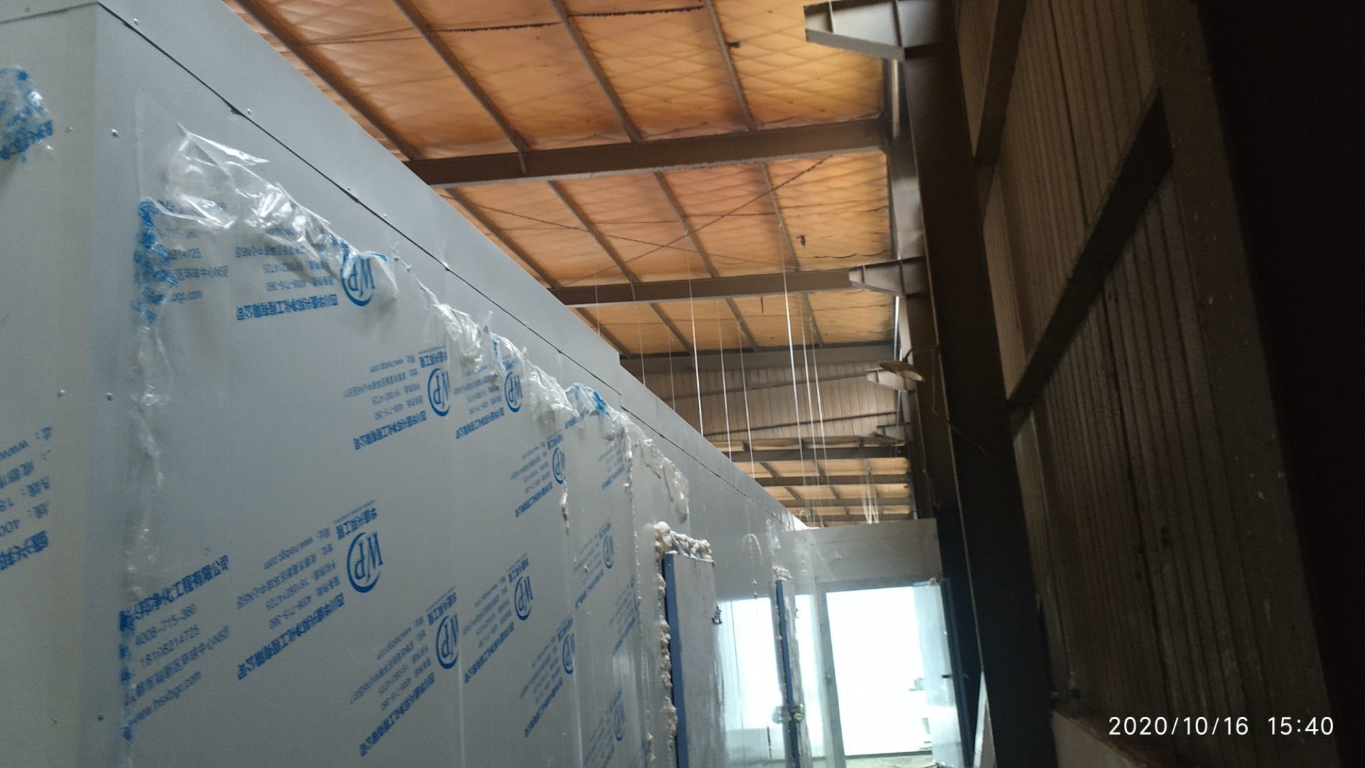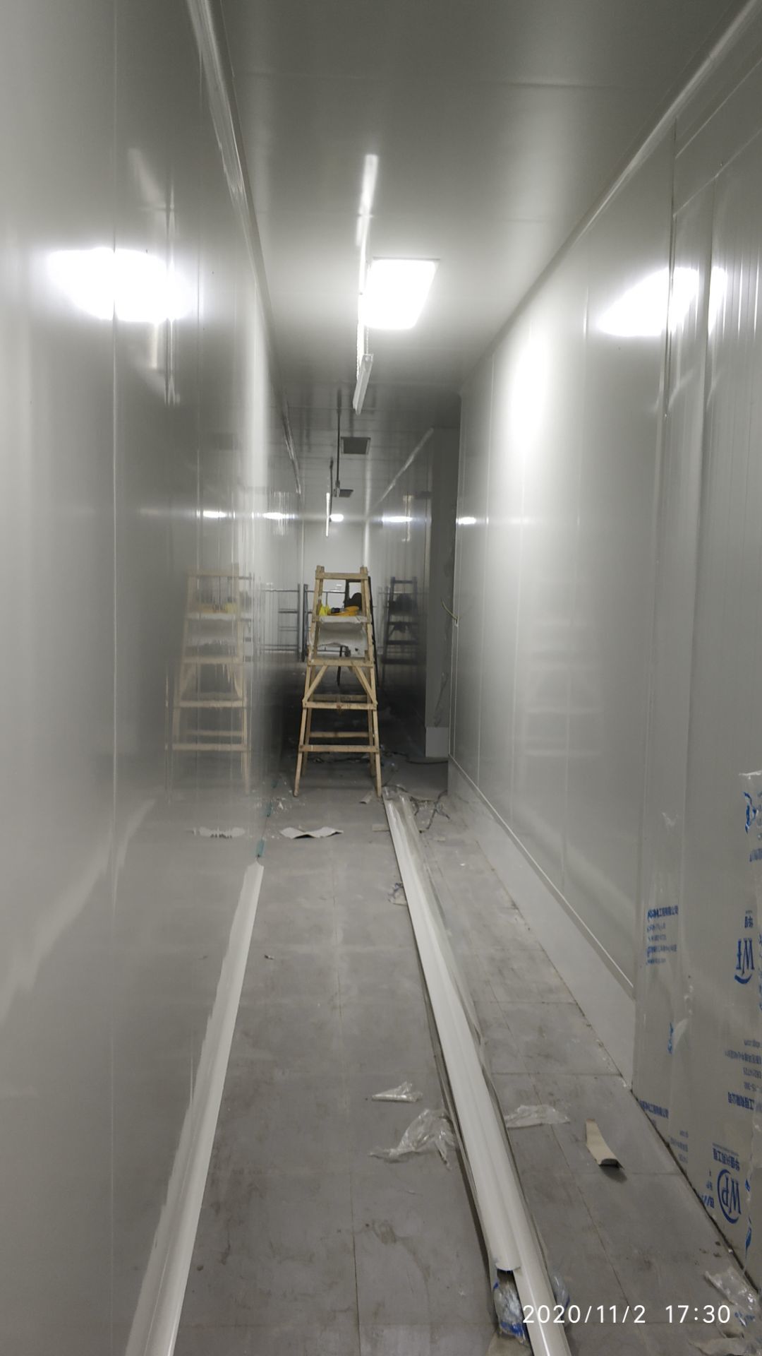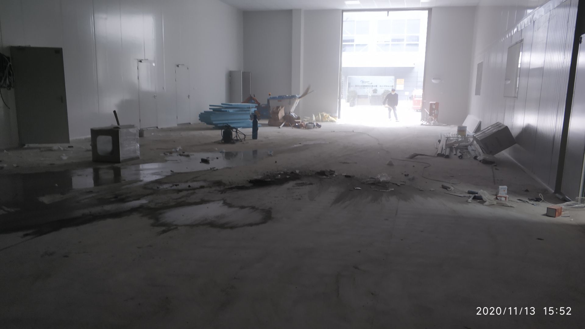 1.地面打磨完成分揀區(qū)域和后勤庫(kù)房。2.彩鋼組收邊收口,安裝門(mén)完成百分之八十。3.照明插座布線安裝完成百分之八十五。 4.凍庫(kù)內(nèi)機(jī)組安裝完成。 5.卷簾門(mén)安裝完成。