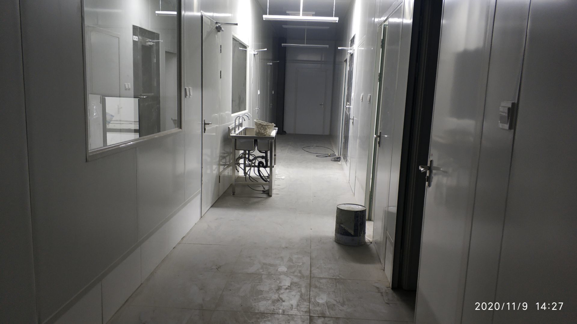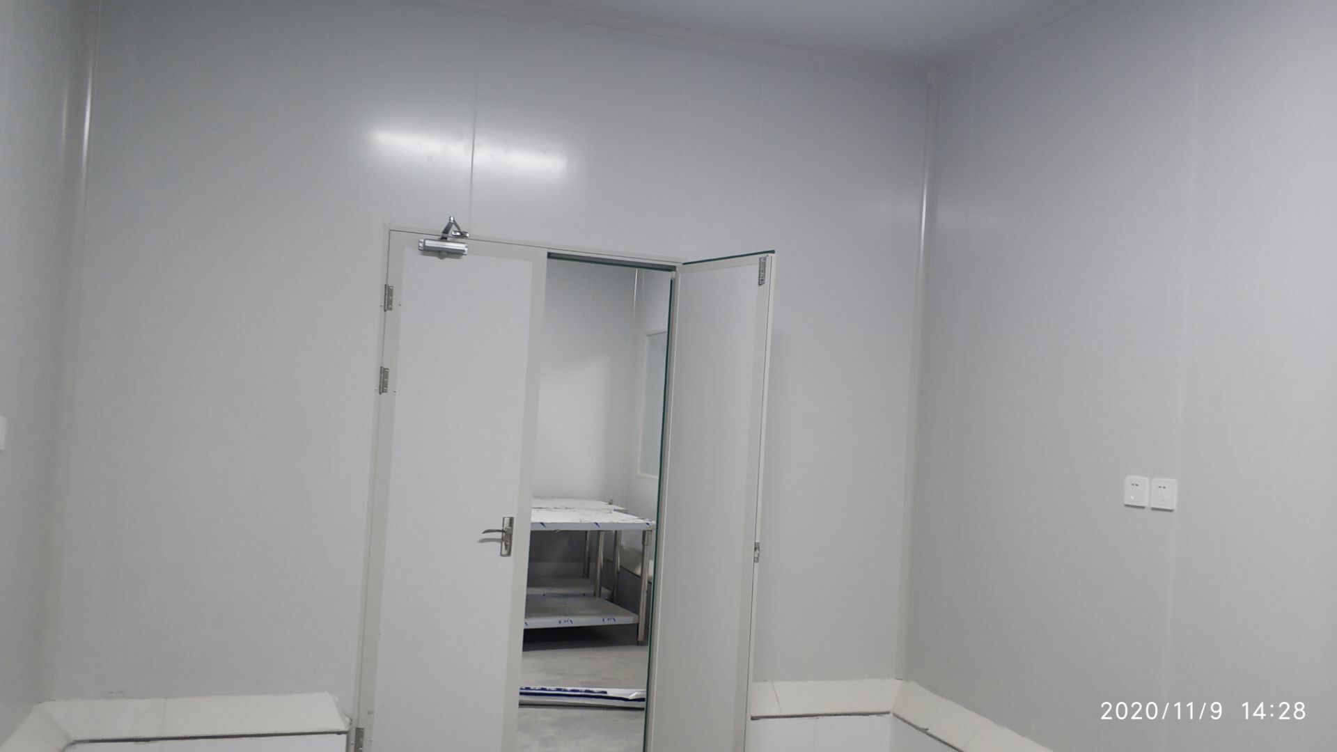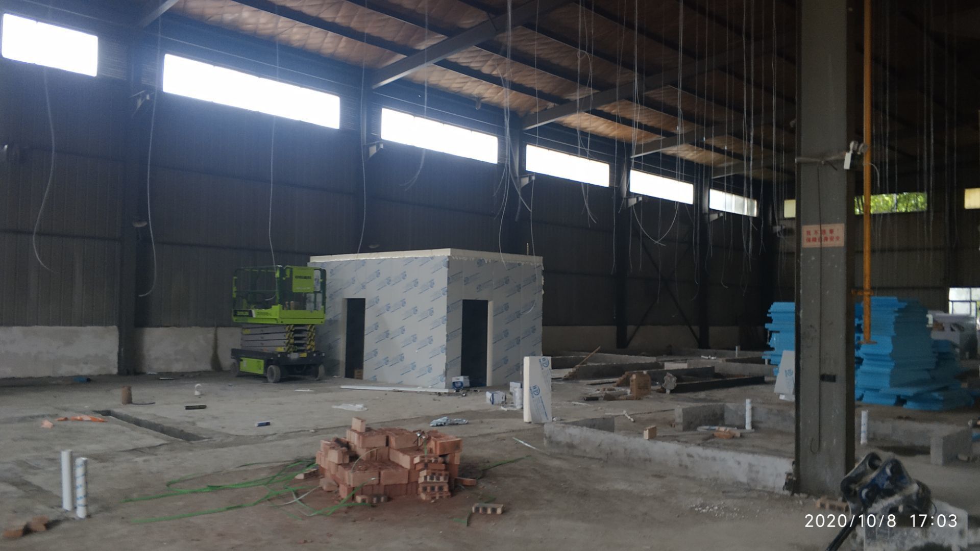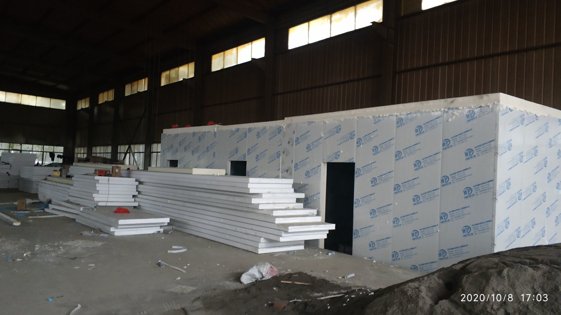 1.地面打磨完成分揀區(qū)域和后勤庫(kù)房。2.彩鋼組收邊收口,安裝門(mén)完成百分之八十。3.照明插座布線安裝完成百分之八十五。 4.凍庫(kù)內(nèi)機(jī)組安裝完成。 5.卷簾門(mén)安裝完成。