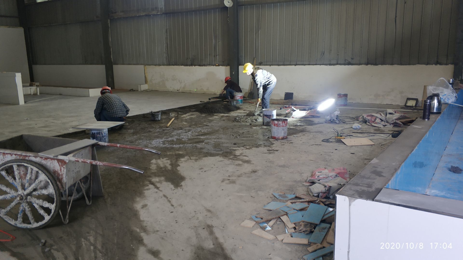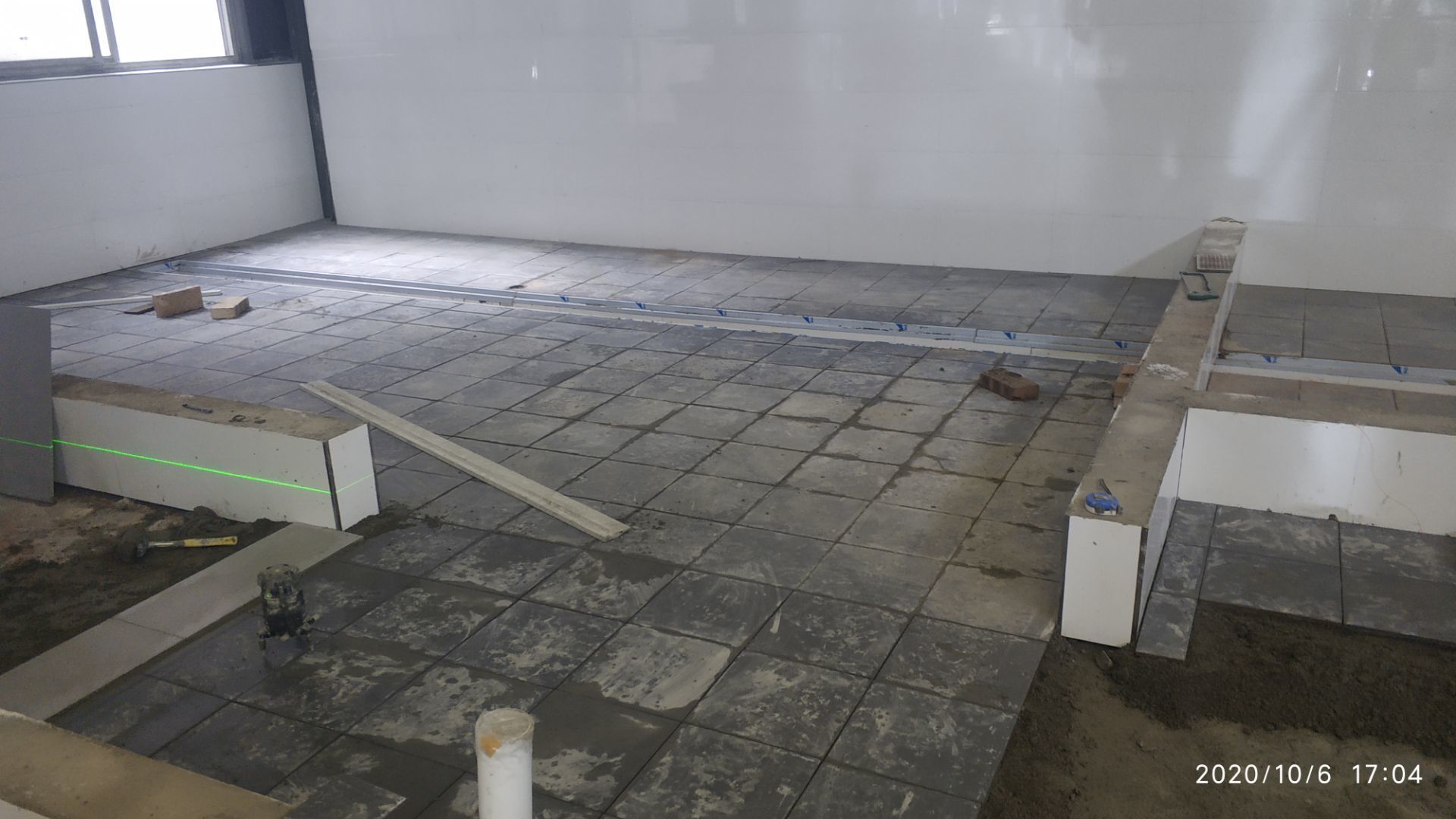 1.凍庫(kù)收邊收口完成百分之七十;2、凍庫(kù)門(mén)安裝完成百分之六十五; 3、生產(chǎn)車間地面鋪裝完成百分之七十; 4、生產(chǎn)車間排水溝貼磚完成。
