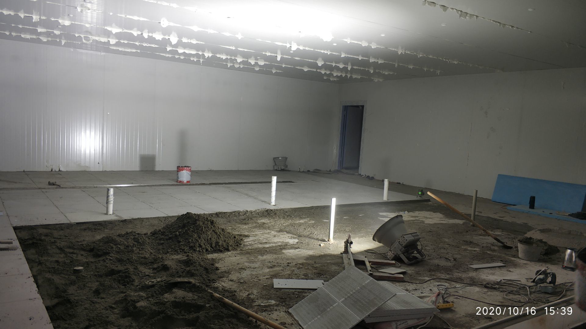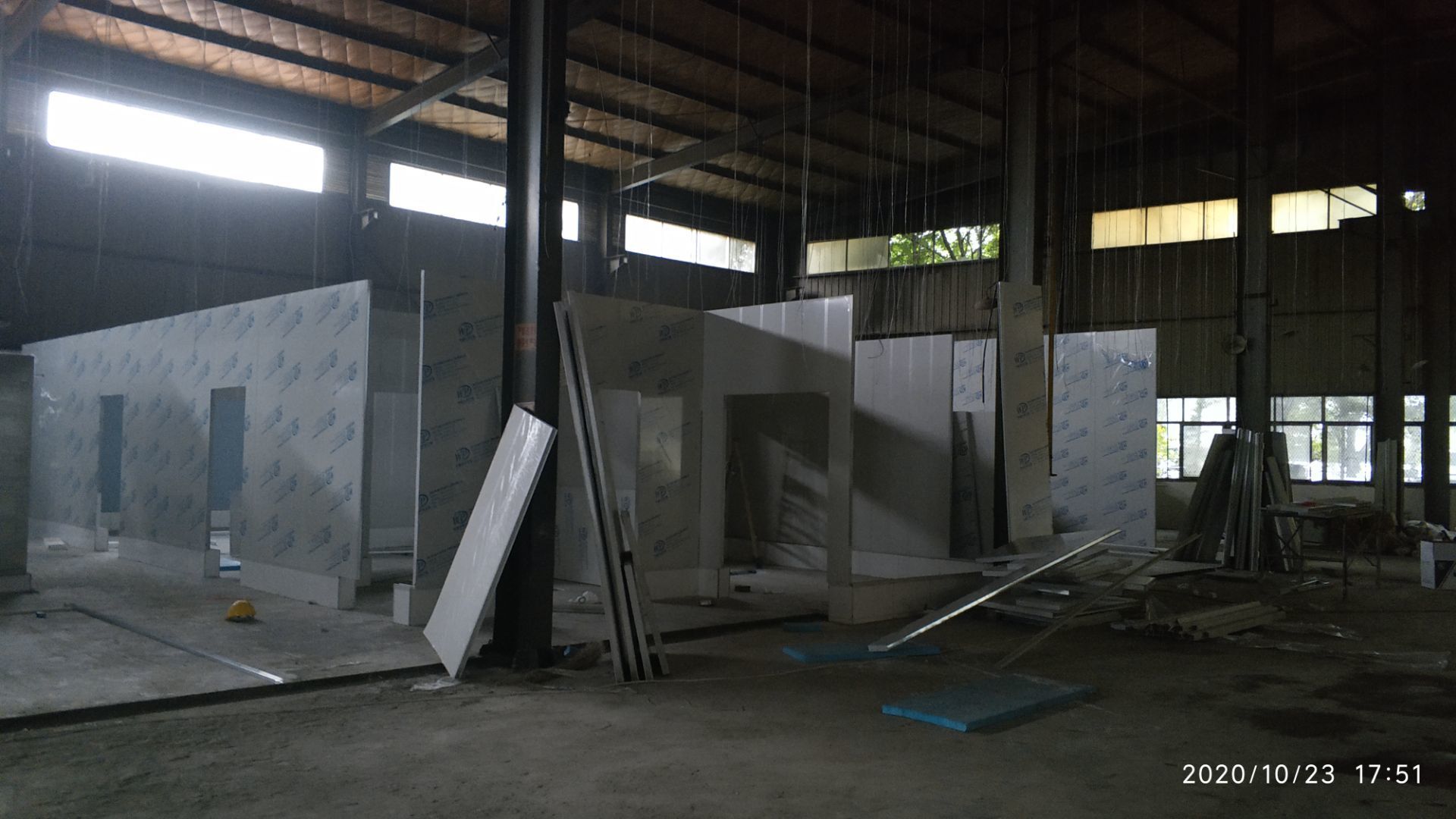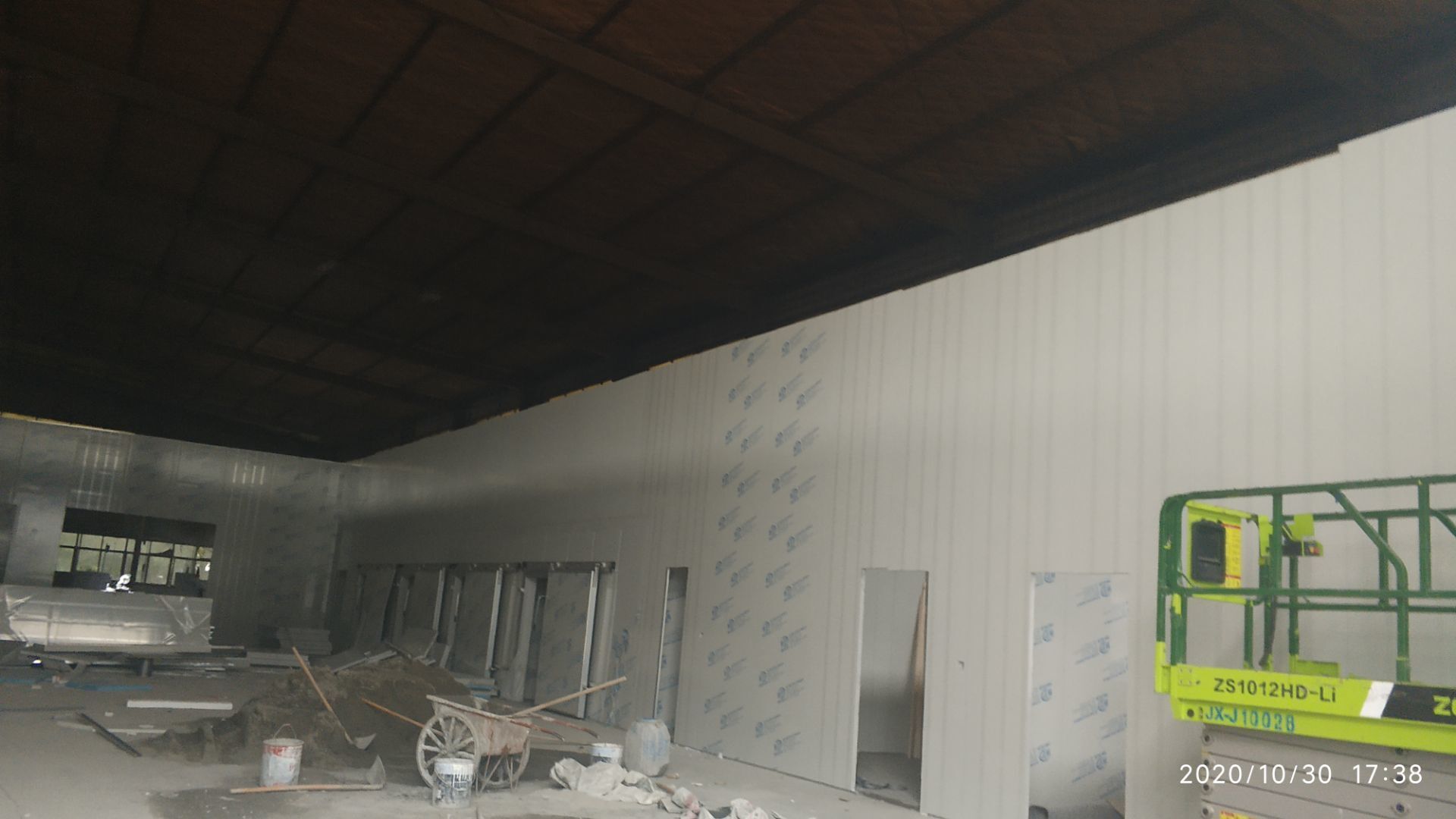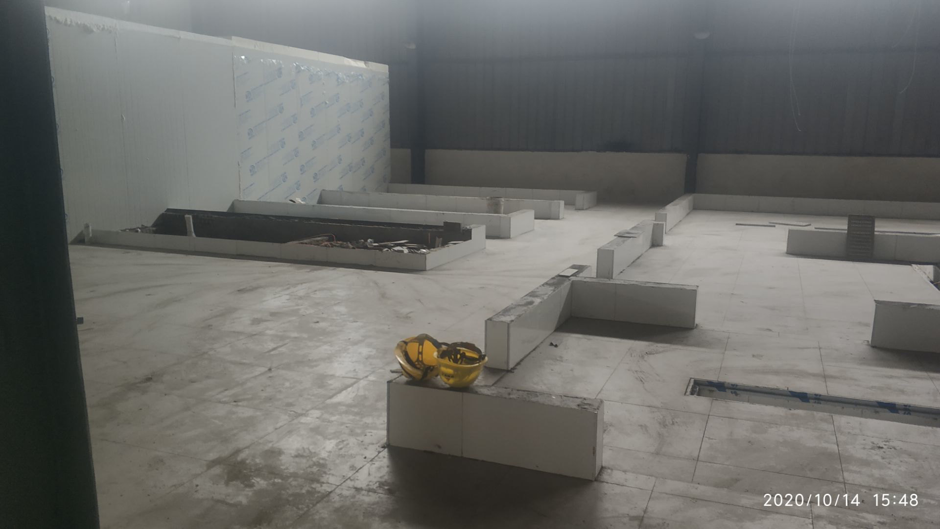 1.多功能區(qū)域地面鋪裝施工完成百分之五十五。 2.所有凍庫(kù)墻板安裝完成百分之五十。