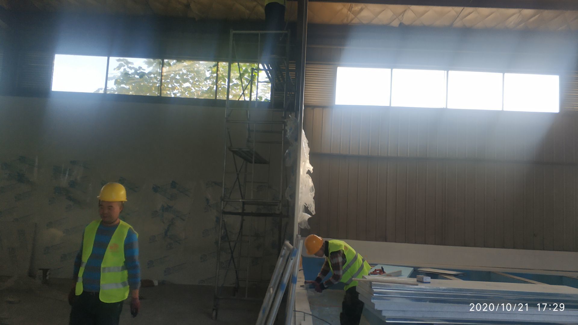 1、加工區(qū)域墻板安裝完成百分之七十,加固。 2、新增周轉(zhuǎn)清洗間墻面貼磚完成。 3、廠區(qū)前新增貼磚面乳膠漆清除完成百分之七十。