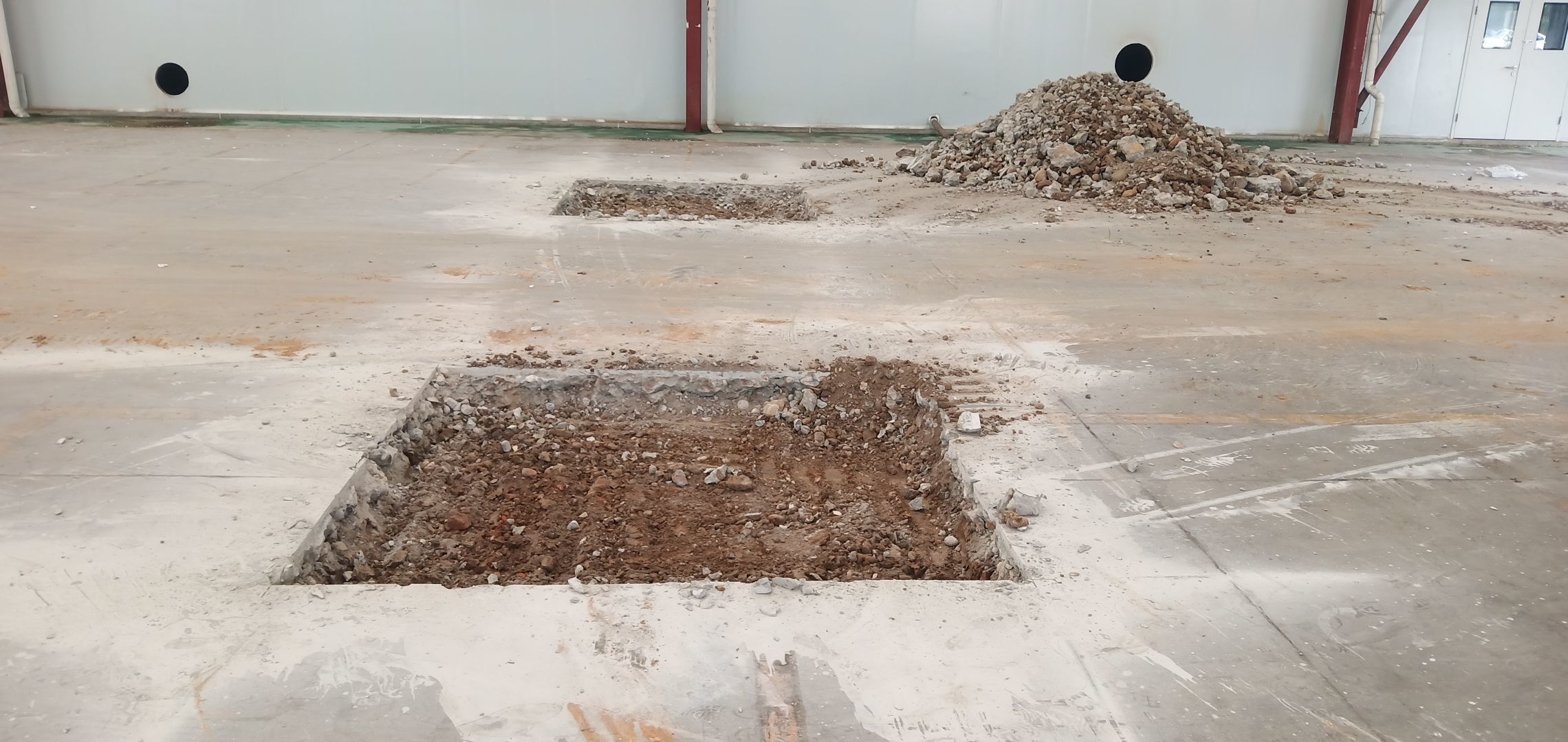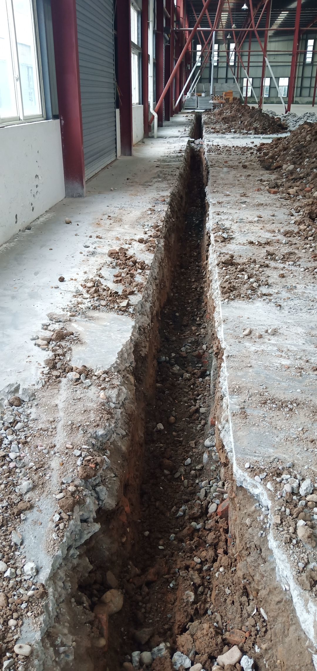 切縫施工完成,挖排水管溝施工完成,剛結構基礎施工完成