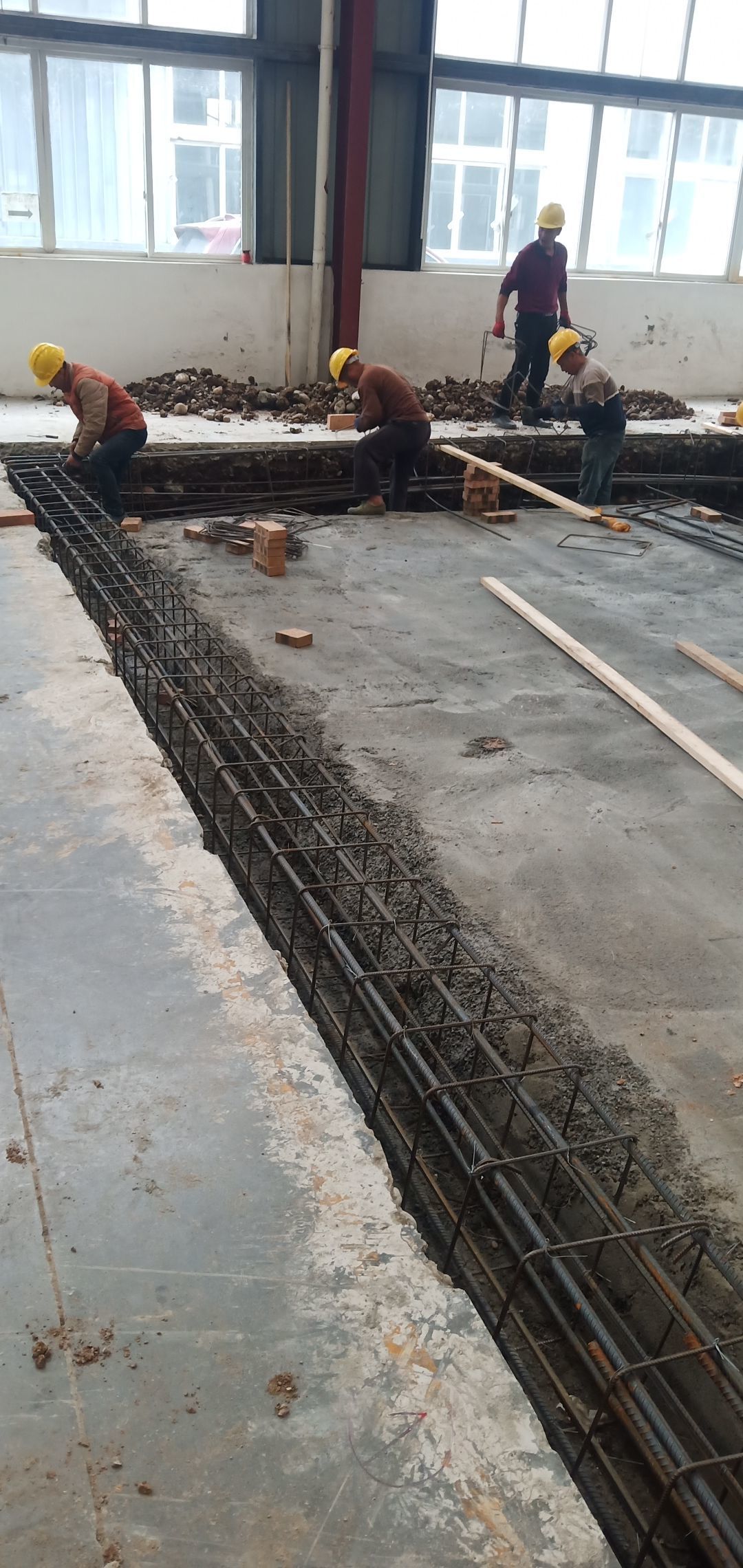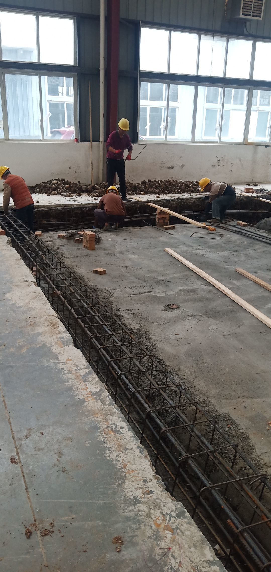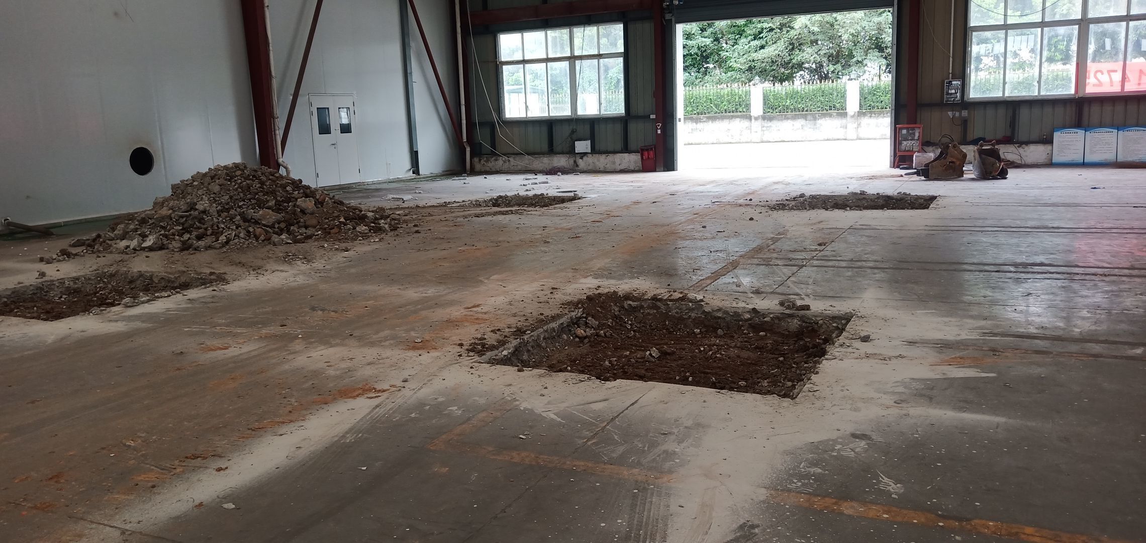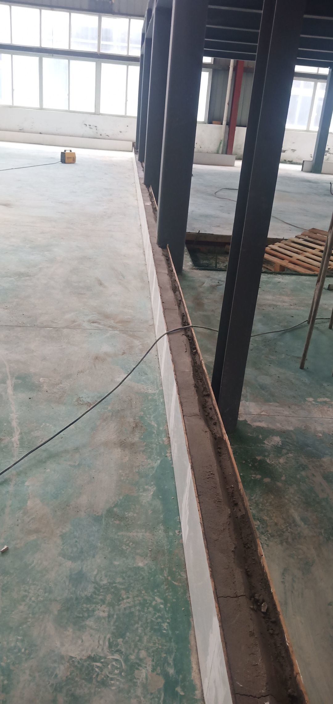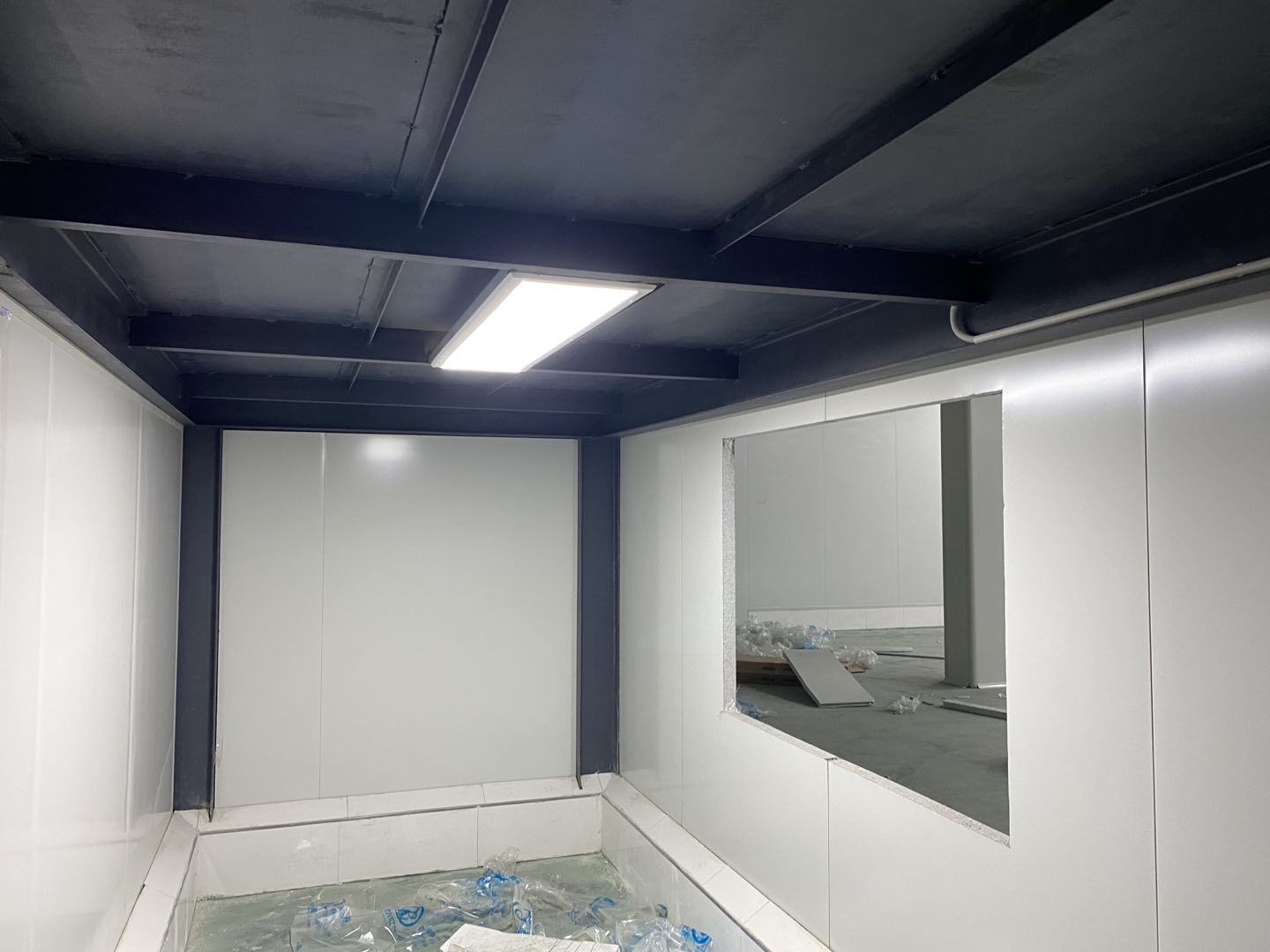 地面找平打點,辦公區槽鋼焊接,角鋼除銹刷防銹漆