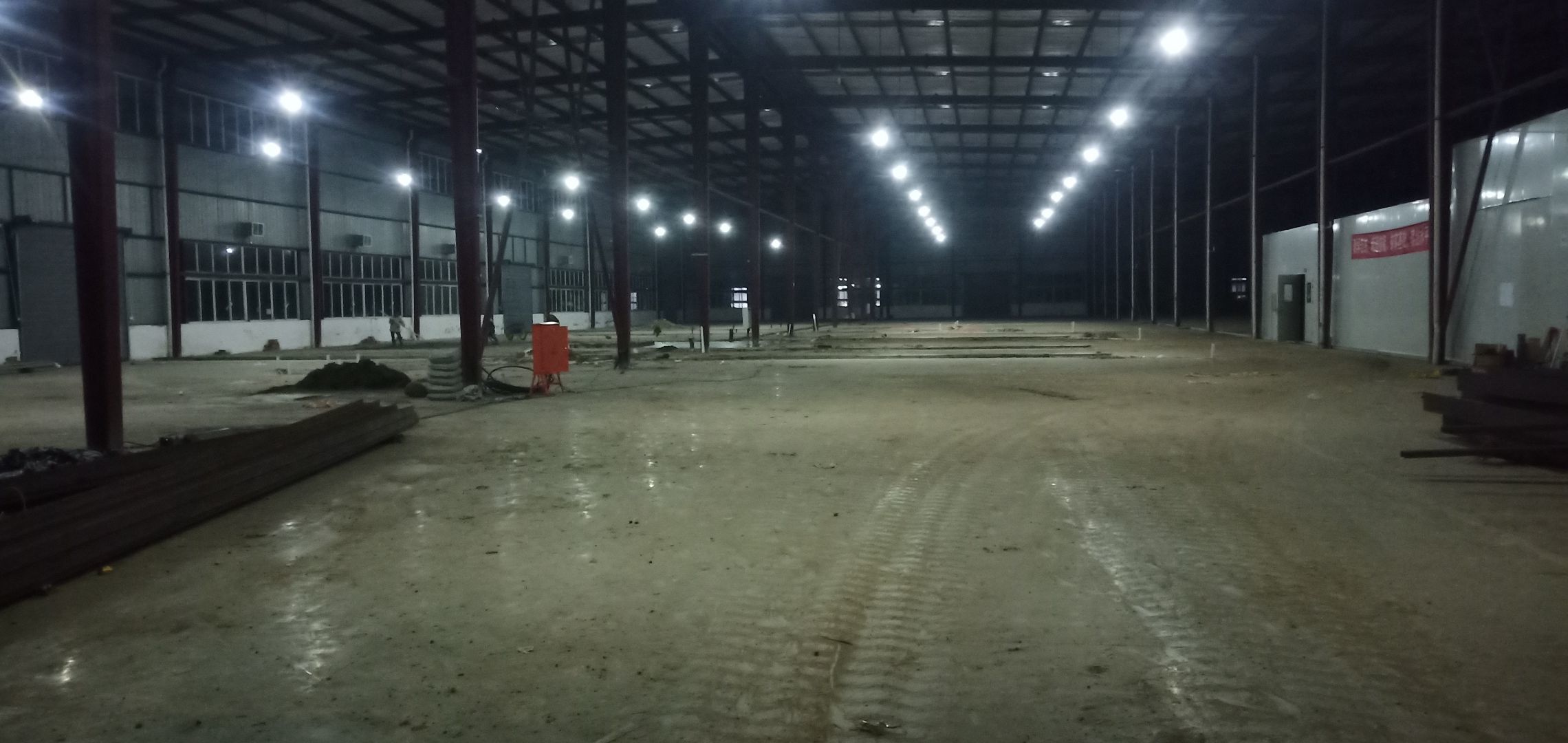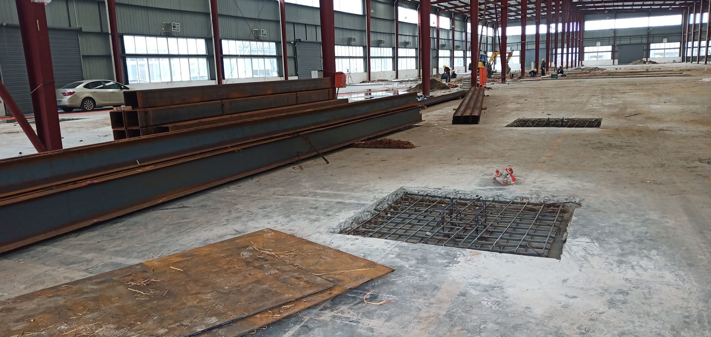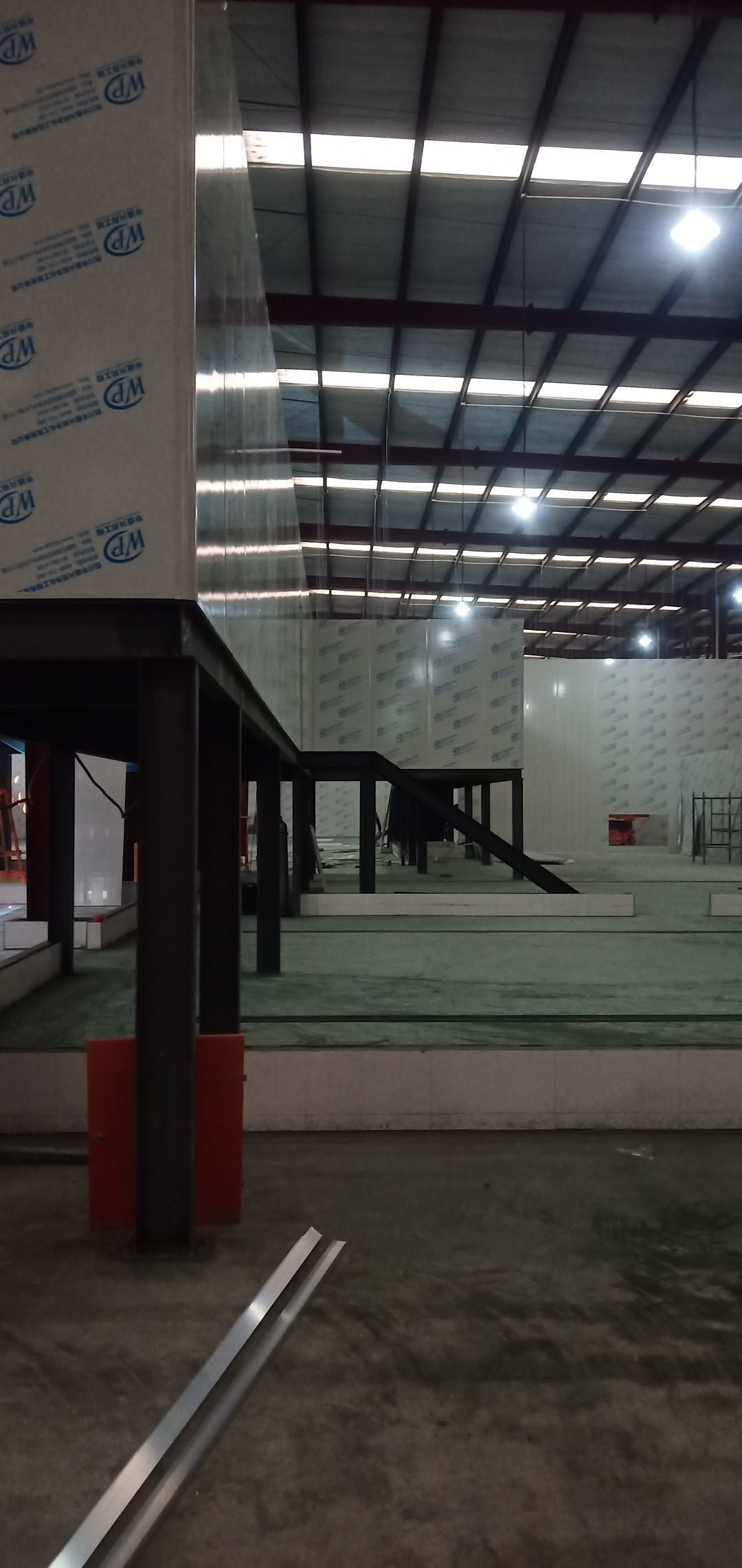 彩鋼墻板完成40%,鋼絲繩完成100%,固化地坪完成60%,鋼結構刷第二次面漆