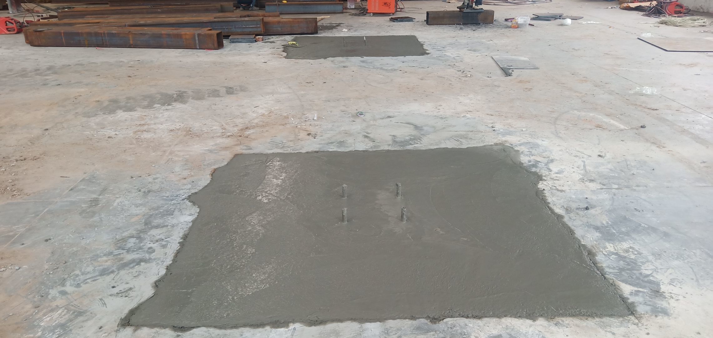 鋼結構材料進場,開始制作,平臺基礎混泥土澆筑