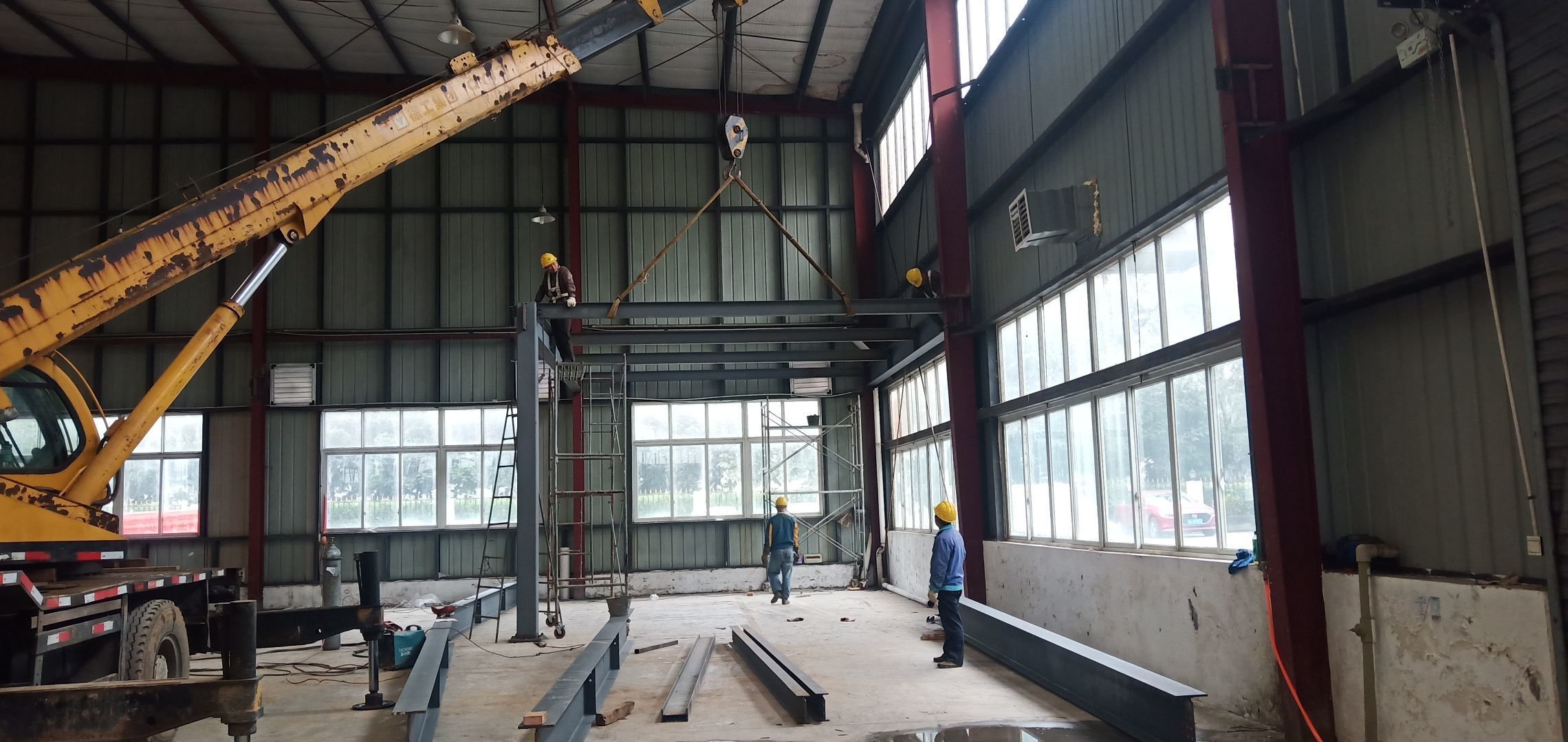 車間辦公區鋼梁、鋼柱吊裝