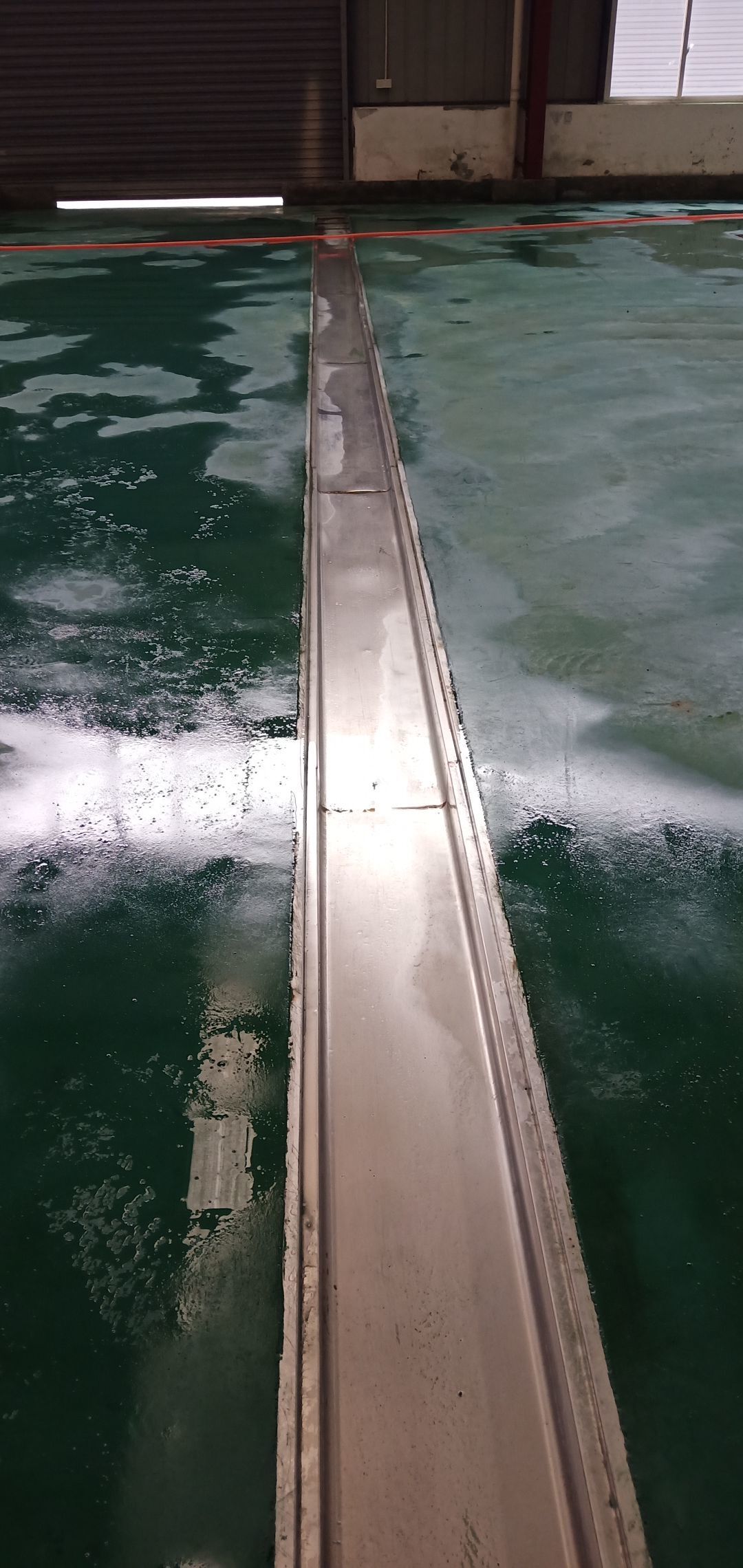 地坪收縮縫切割完成,不銹鋼排水溝清洗完成,地面養護