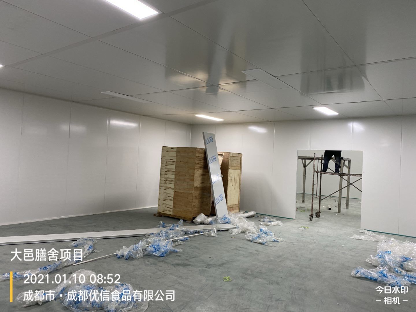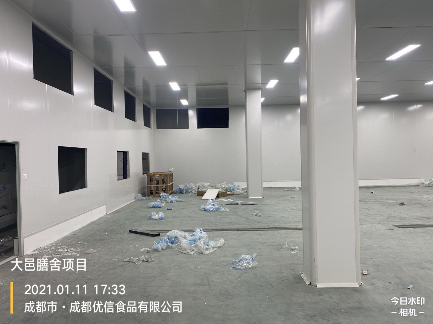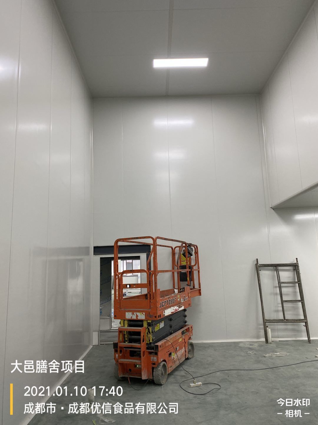 大邑膳舍食品項目:擋水墻貼磚完成90%,花紋鋼板、樓梯板到場,樓梯踏步開始焊接,彩鋼墻板立板完成5%。