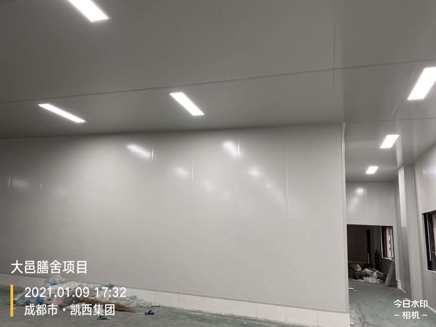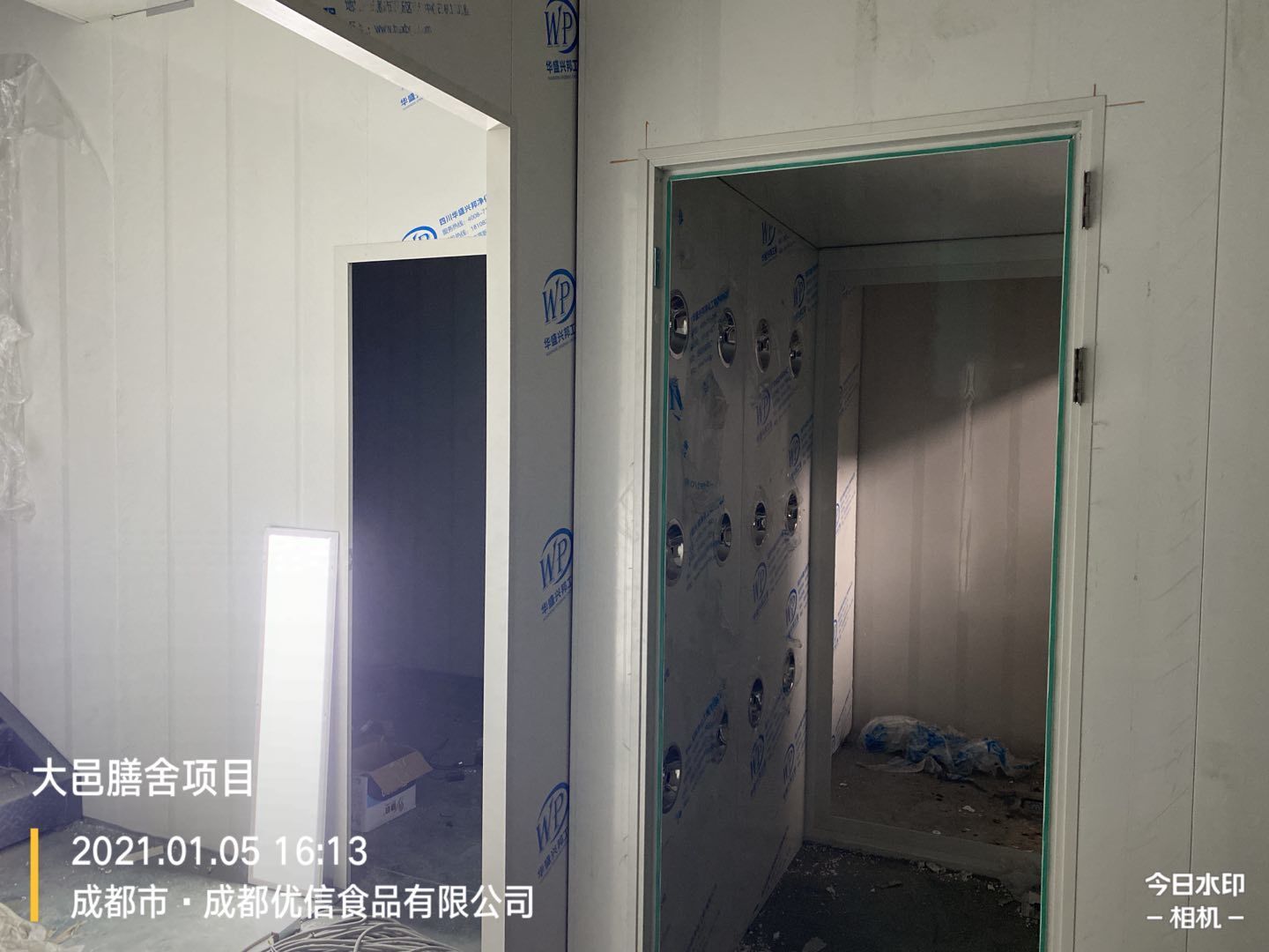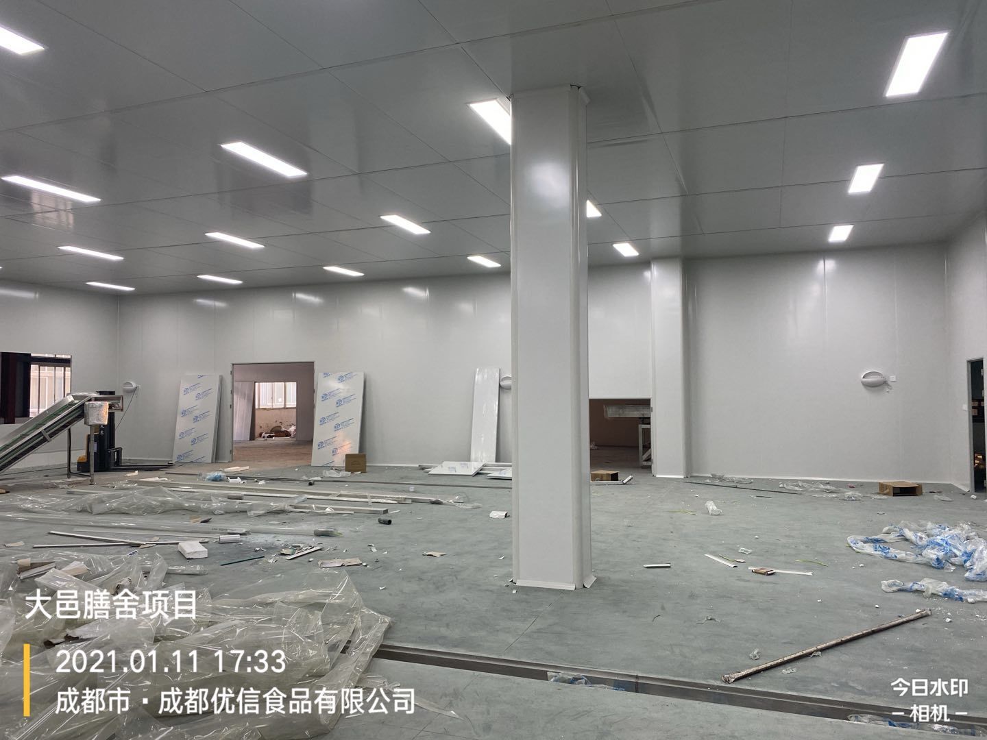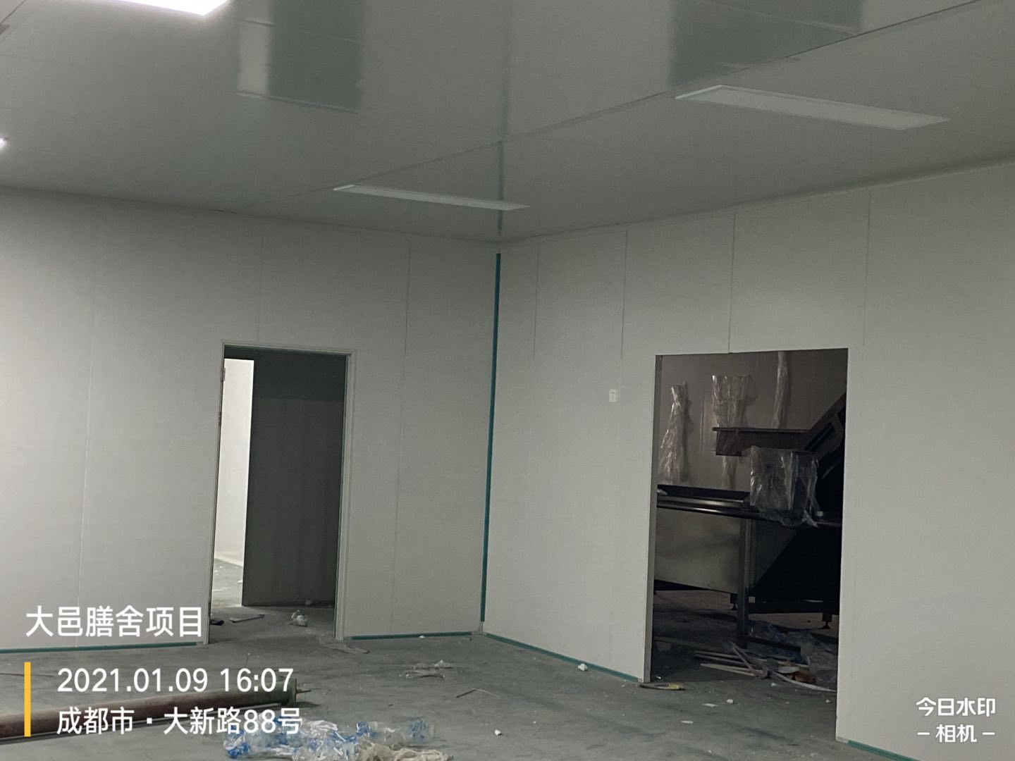 大邑膳舍食品項目:擋水墻貼磚完成90%,花紋鋼板、樓梯板到場,樓梯踏步開始焊接,彩鋼墻板立板完成5%。