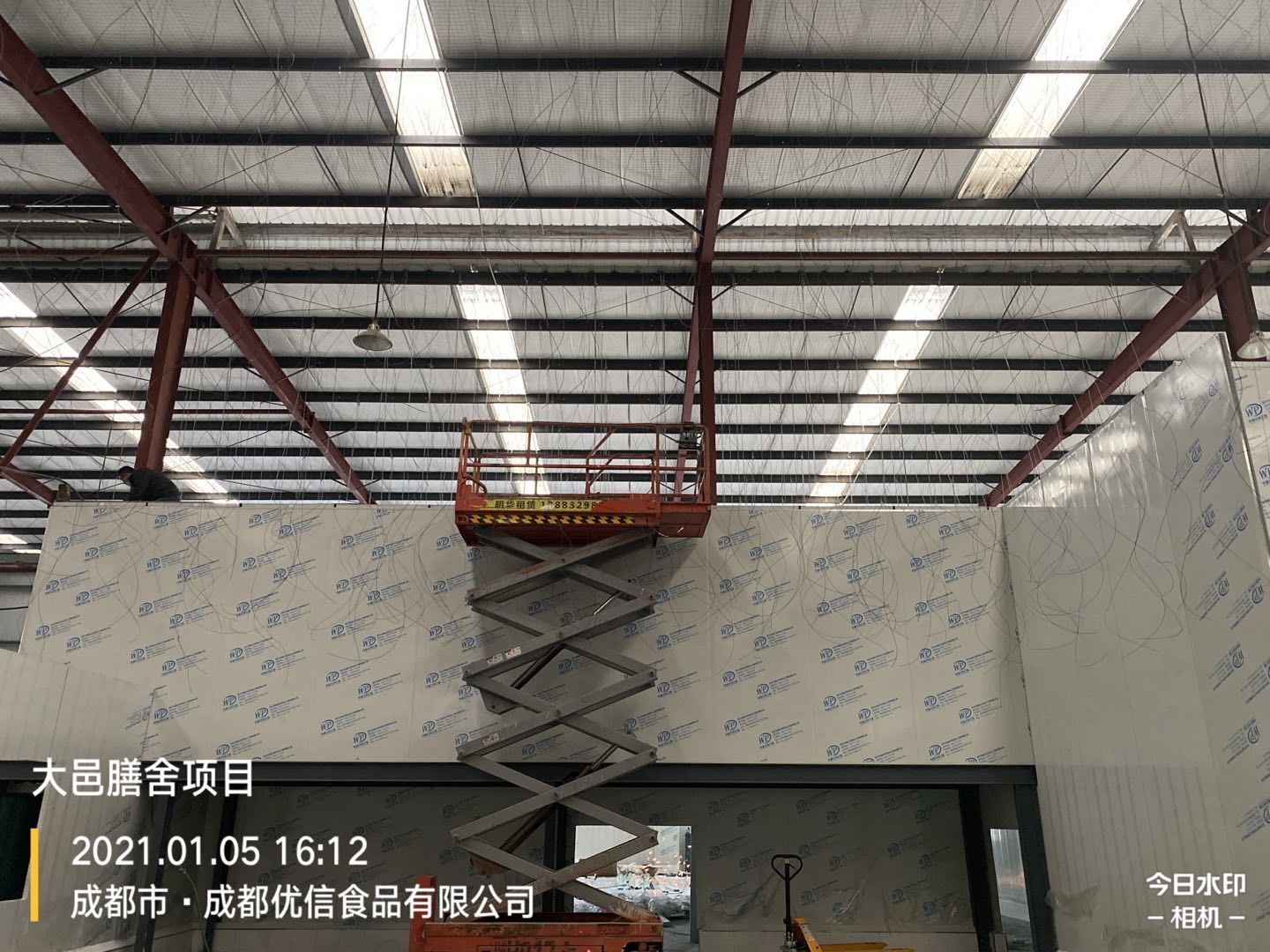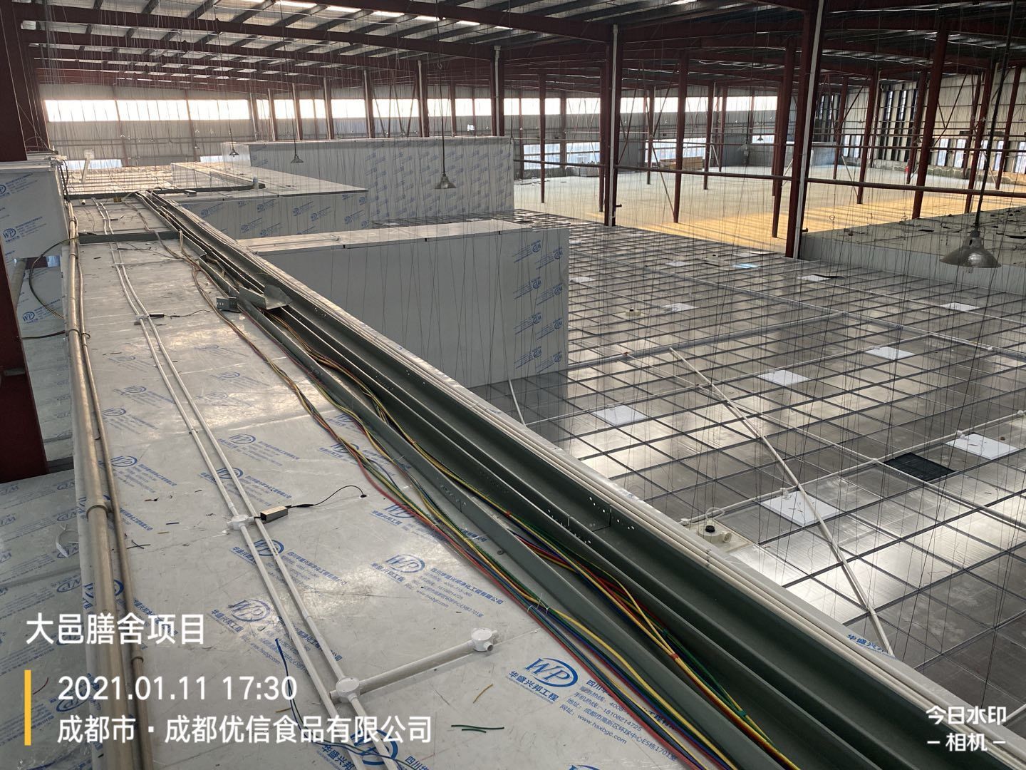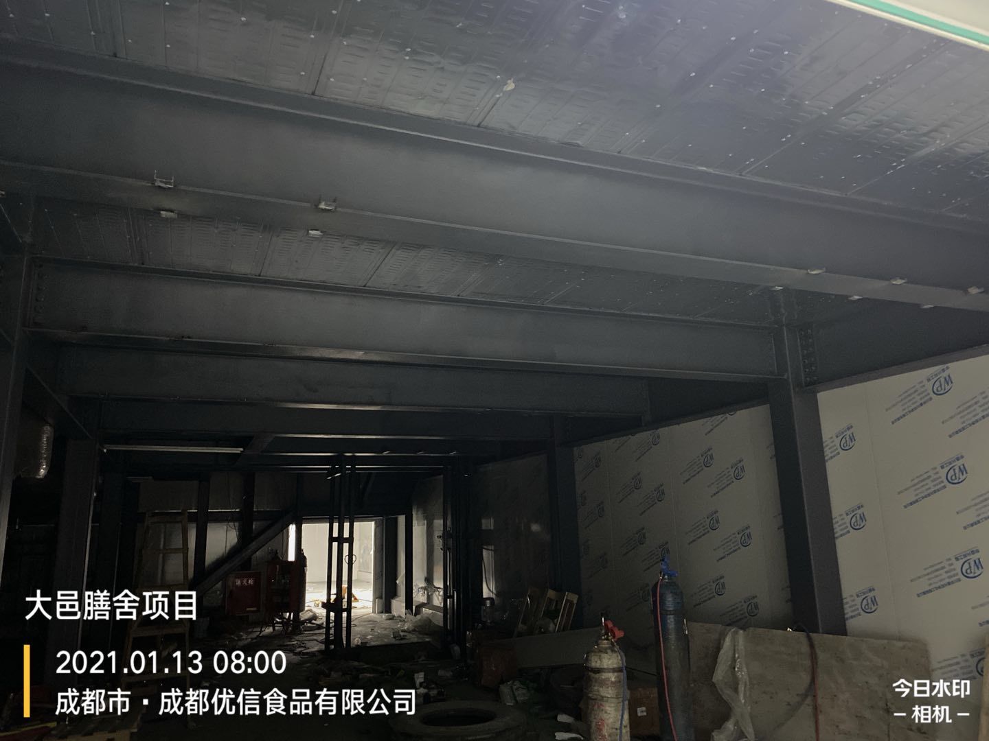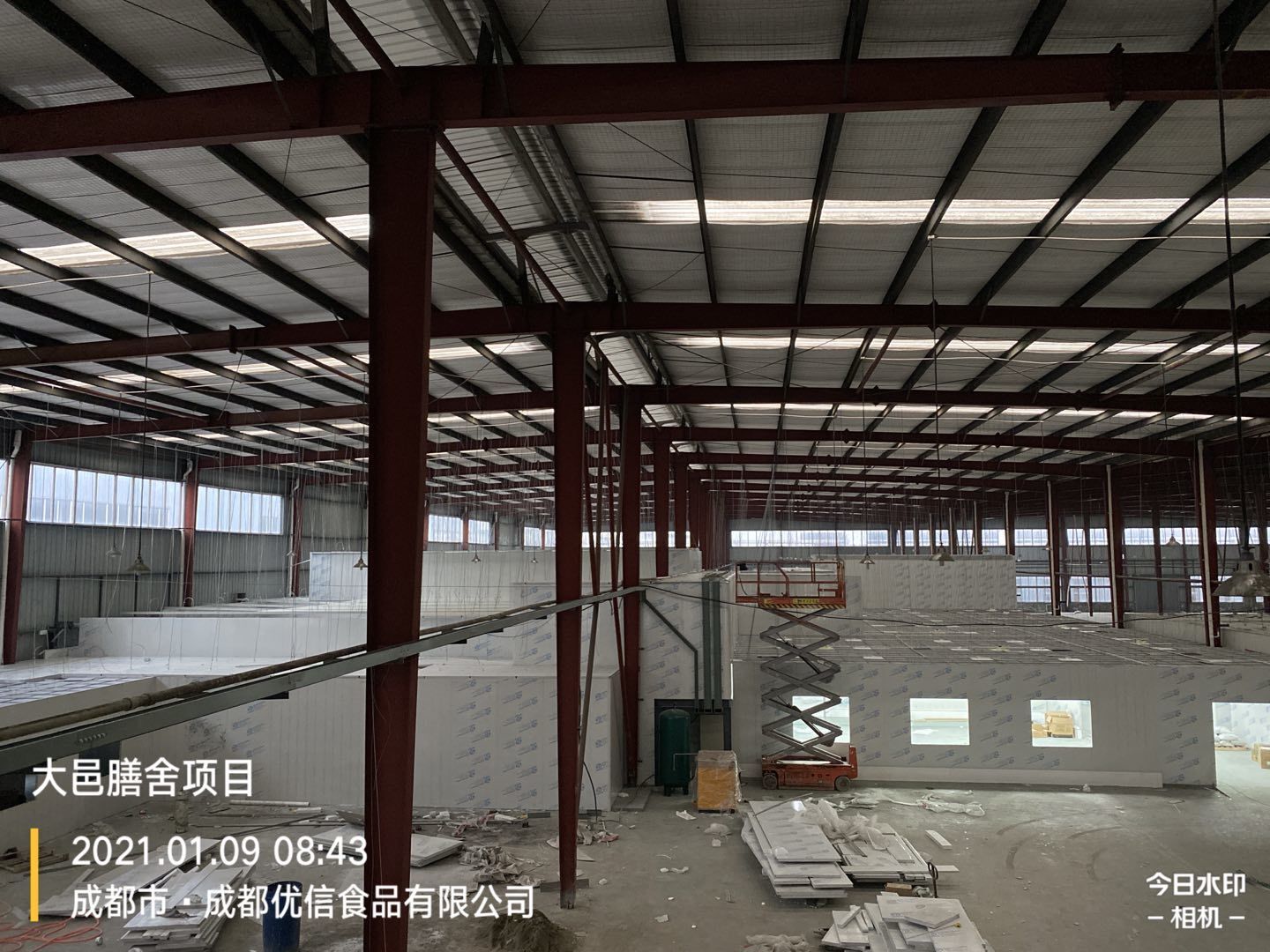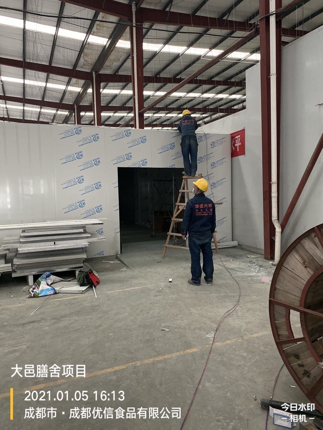 彩鋼墻板完成80%,頂板完成15%,鋼結構完成100%,