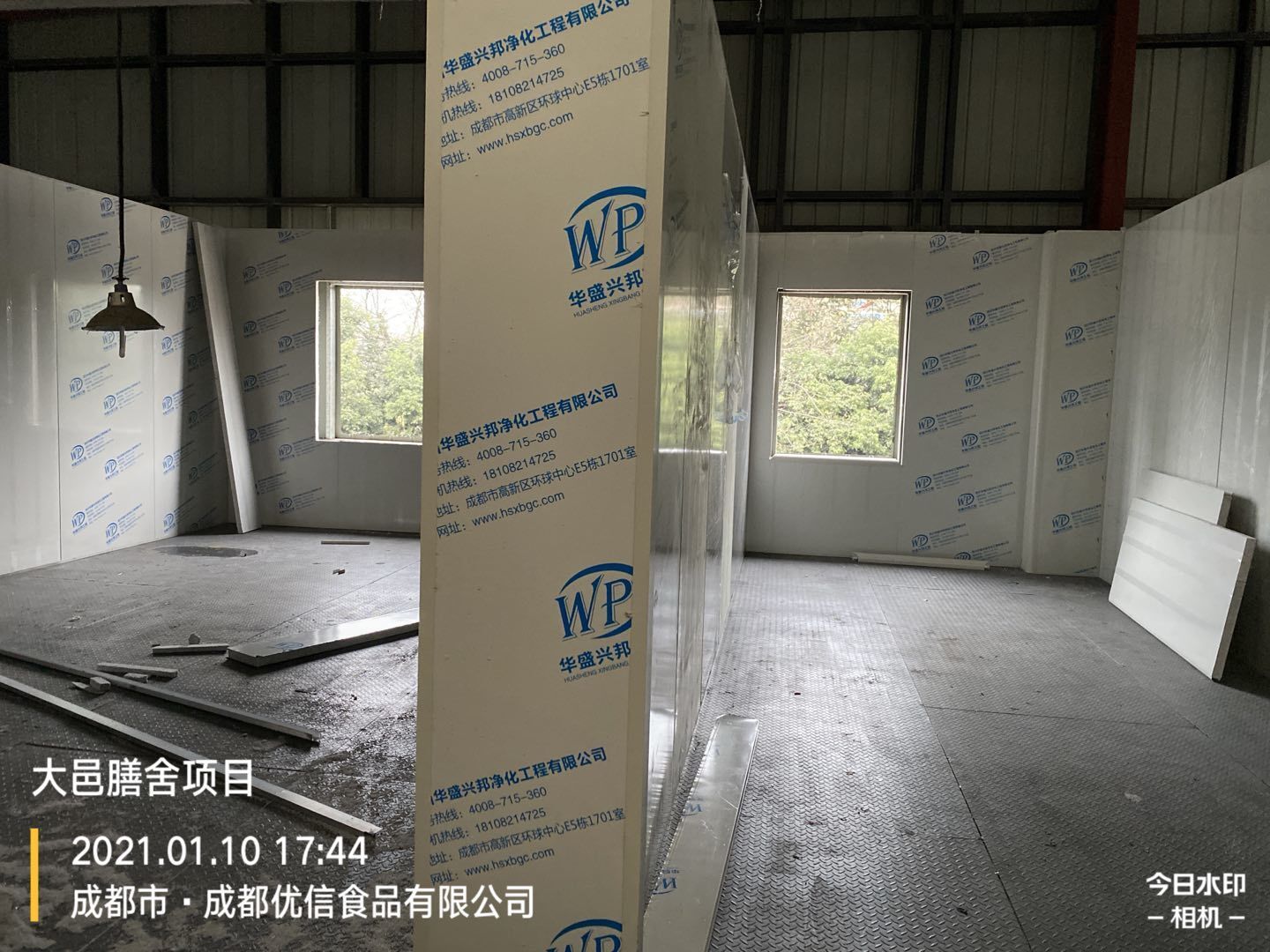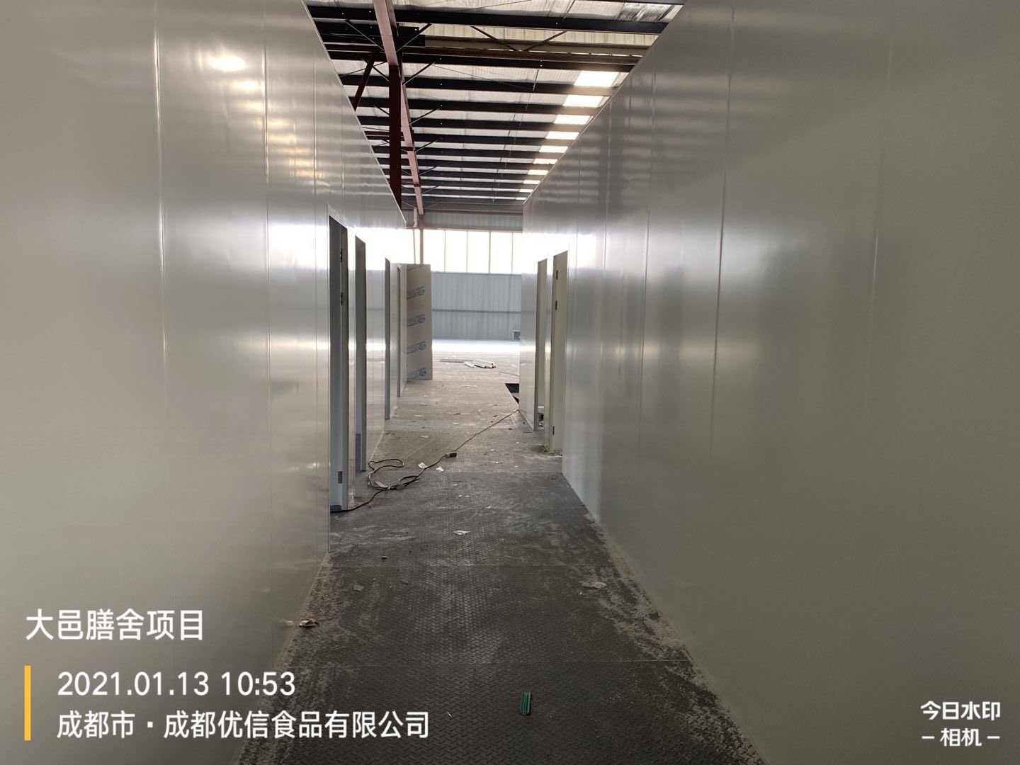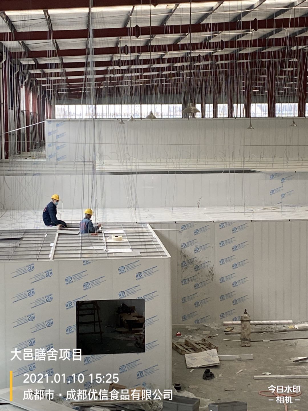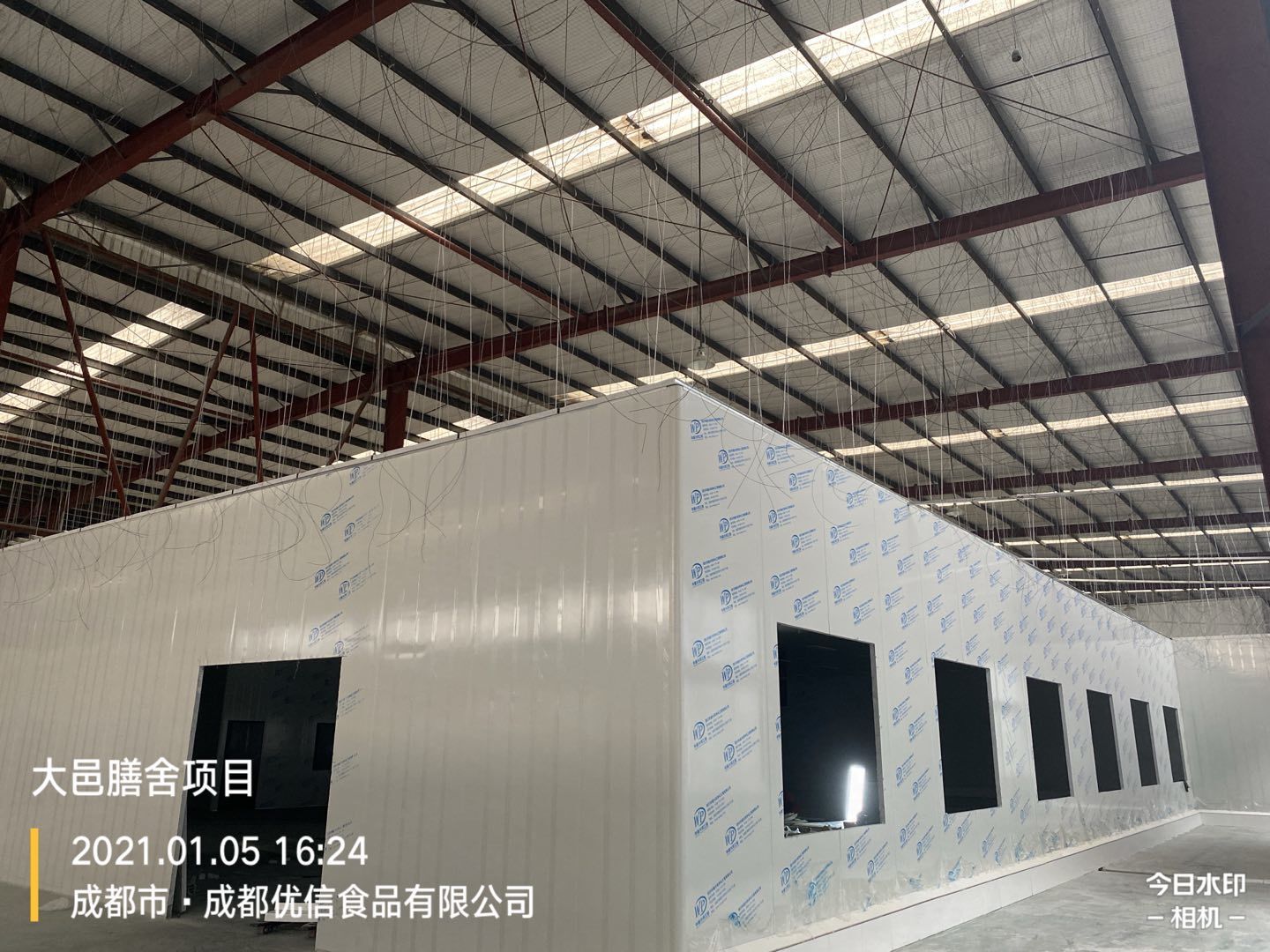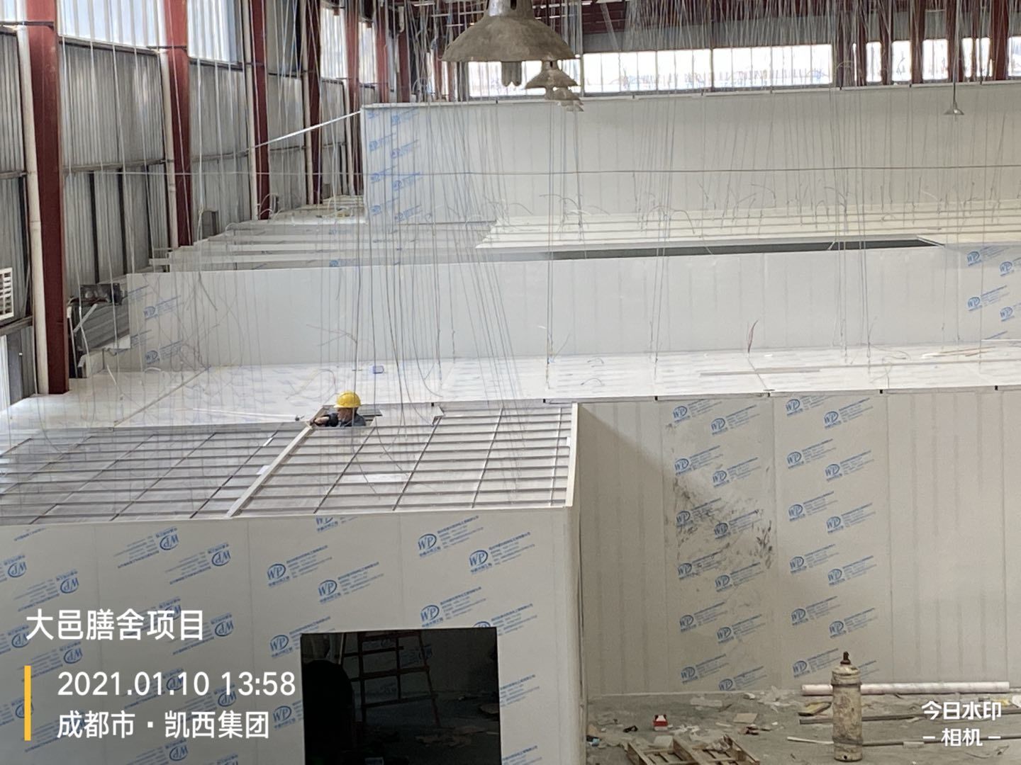 彩鋼墻板完成80%,頂板完成15%,鋼結構完成100%,