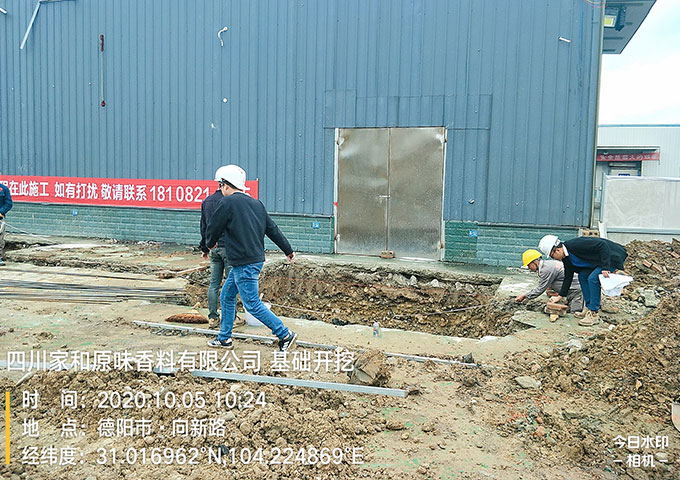 四川家和原味香料有限公司土建廠房施工現場,今日工作,基礎開挖
