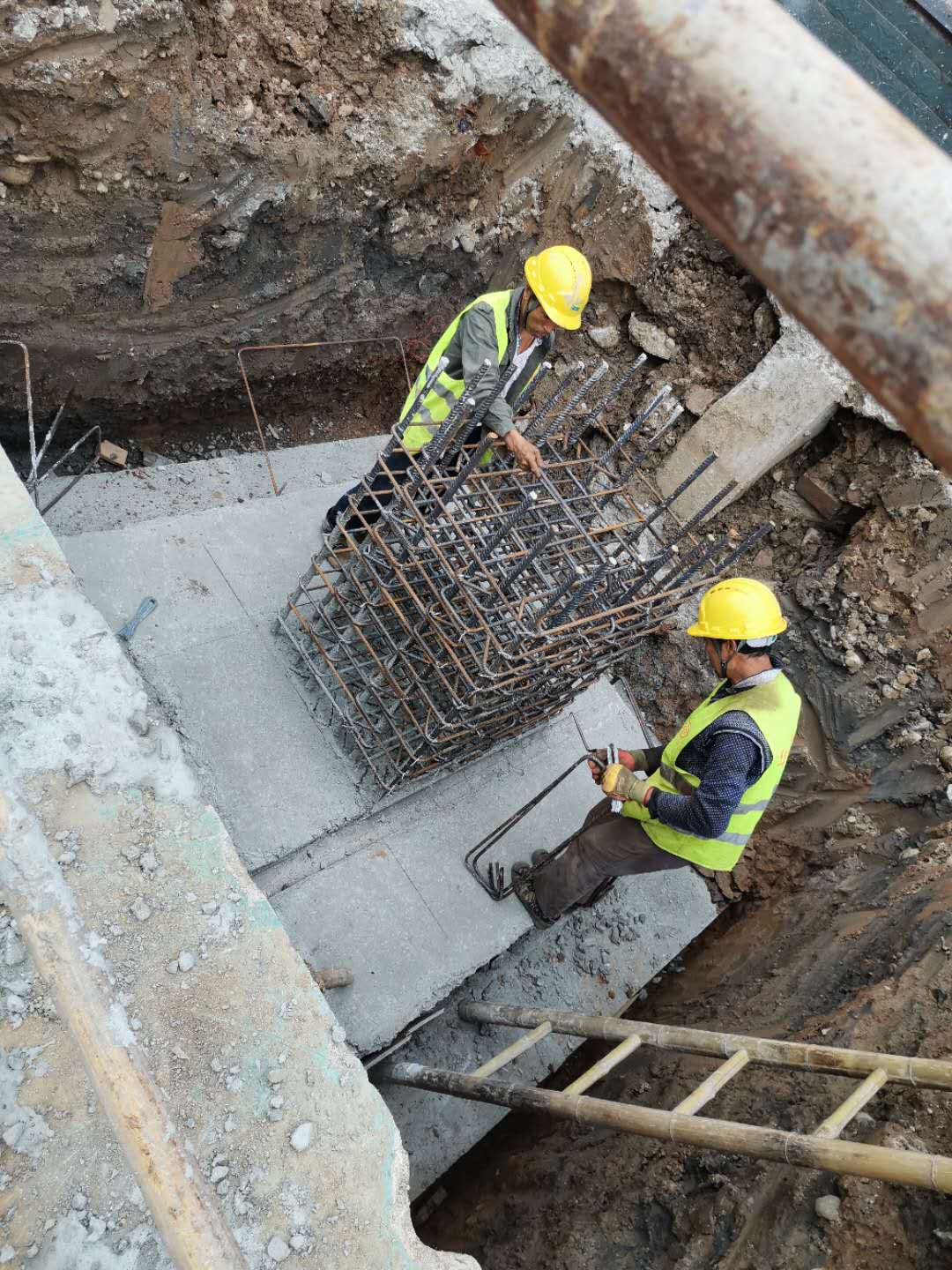 1.短柱鋼筋安裝完成70%. 2.地梁開挖完成60%. 3.承臺拆模完成100%