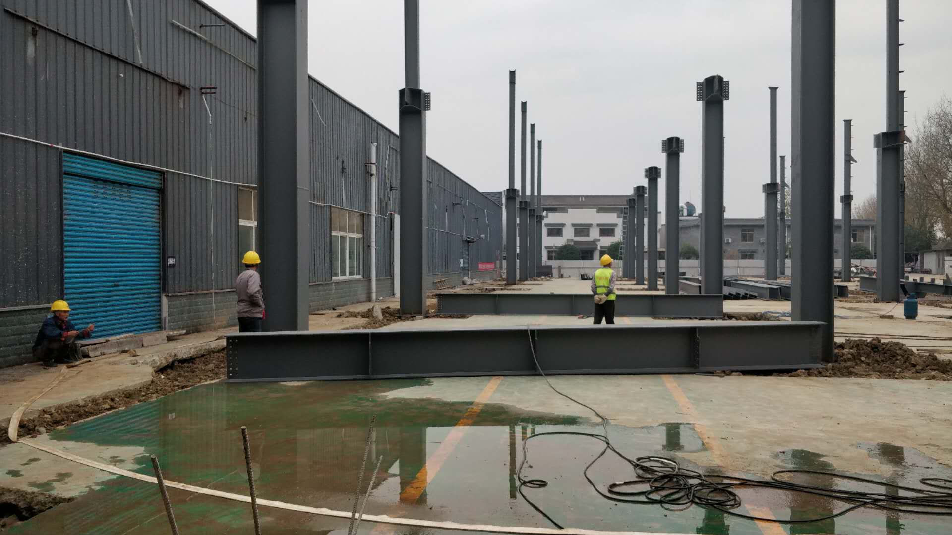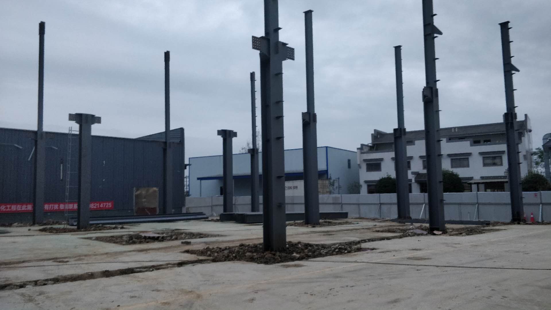 1.鋼構廠驗廠。2.鋼柱安裝完成10%。