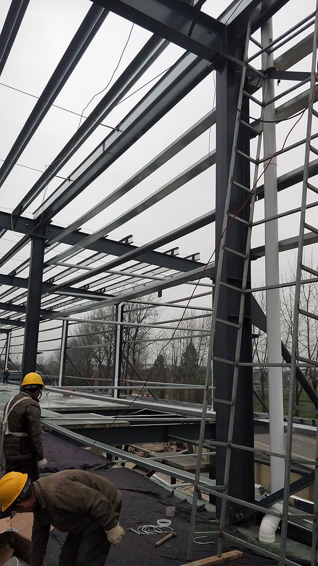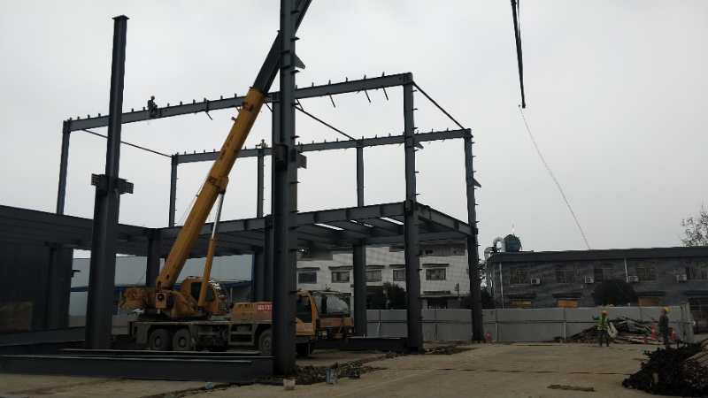 鋼構主體結構安裝完成。接下來整體校正,螺栓終擰,節點焊接,油漆工作。